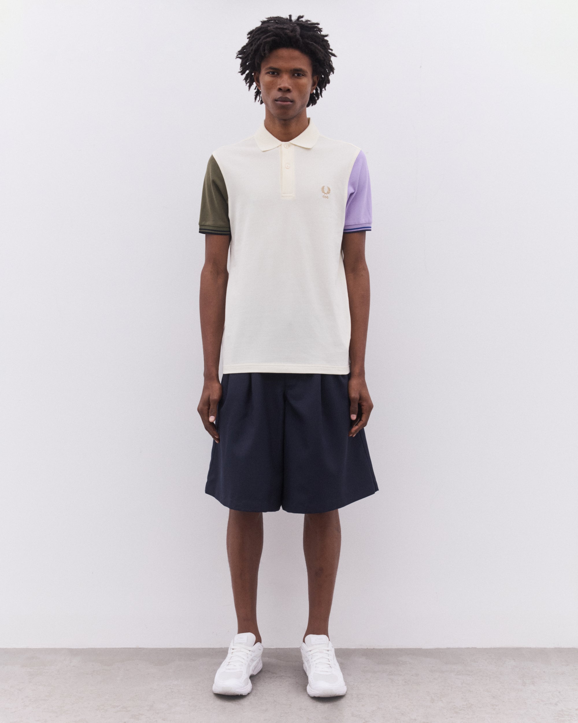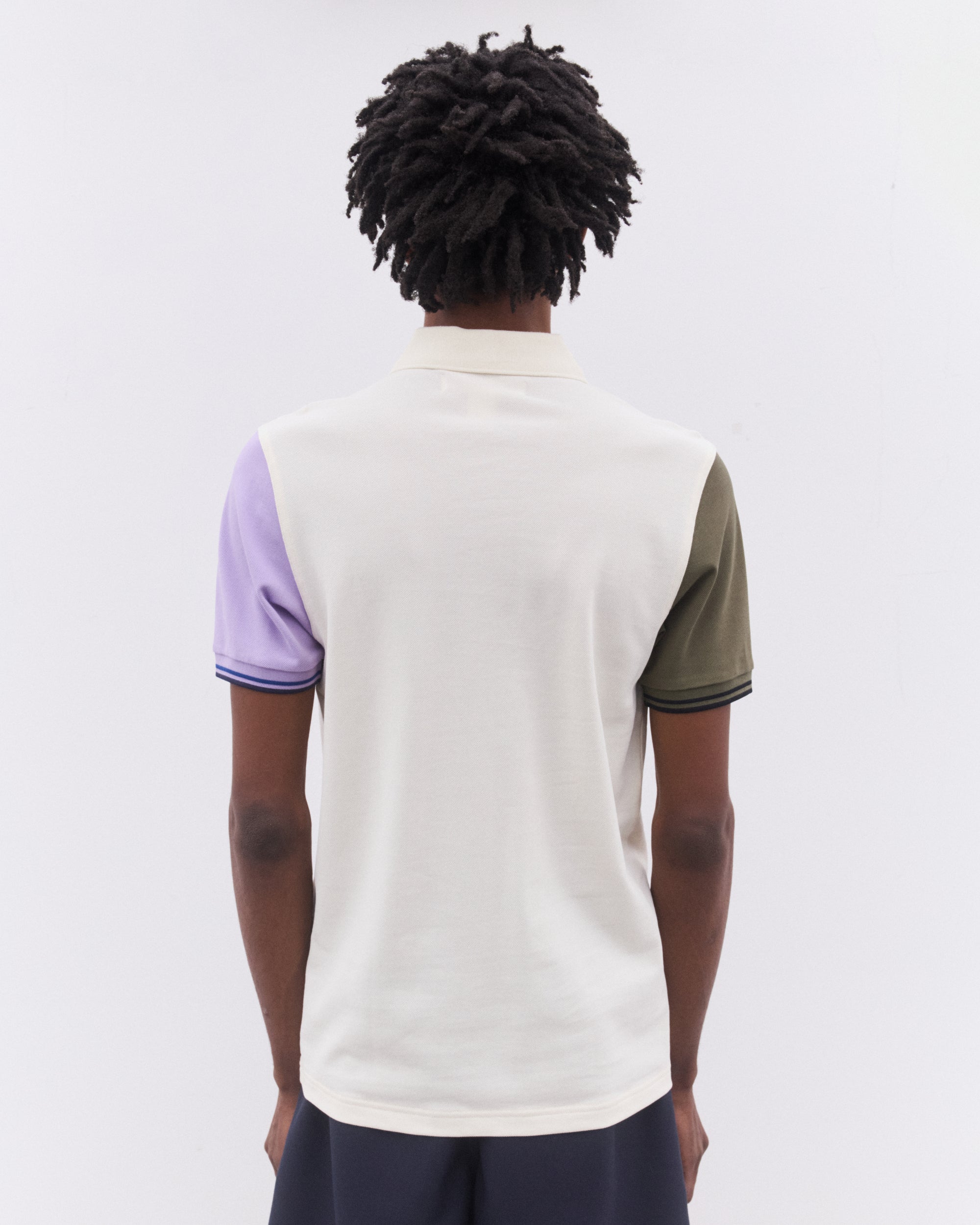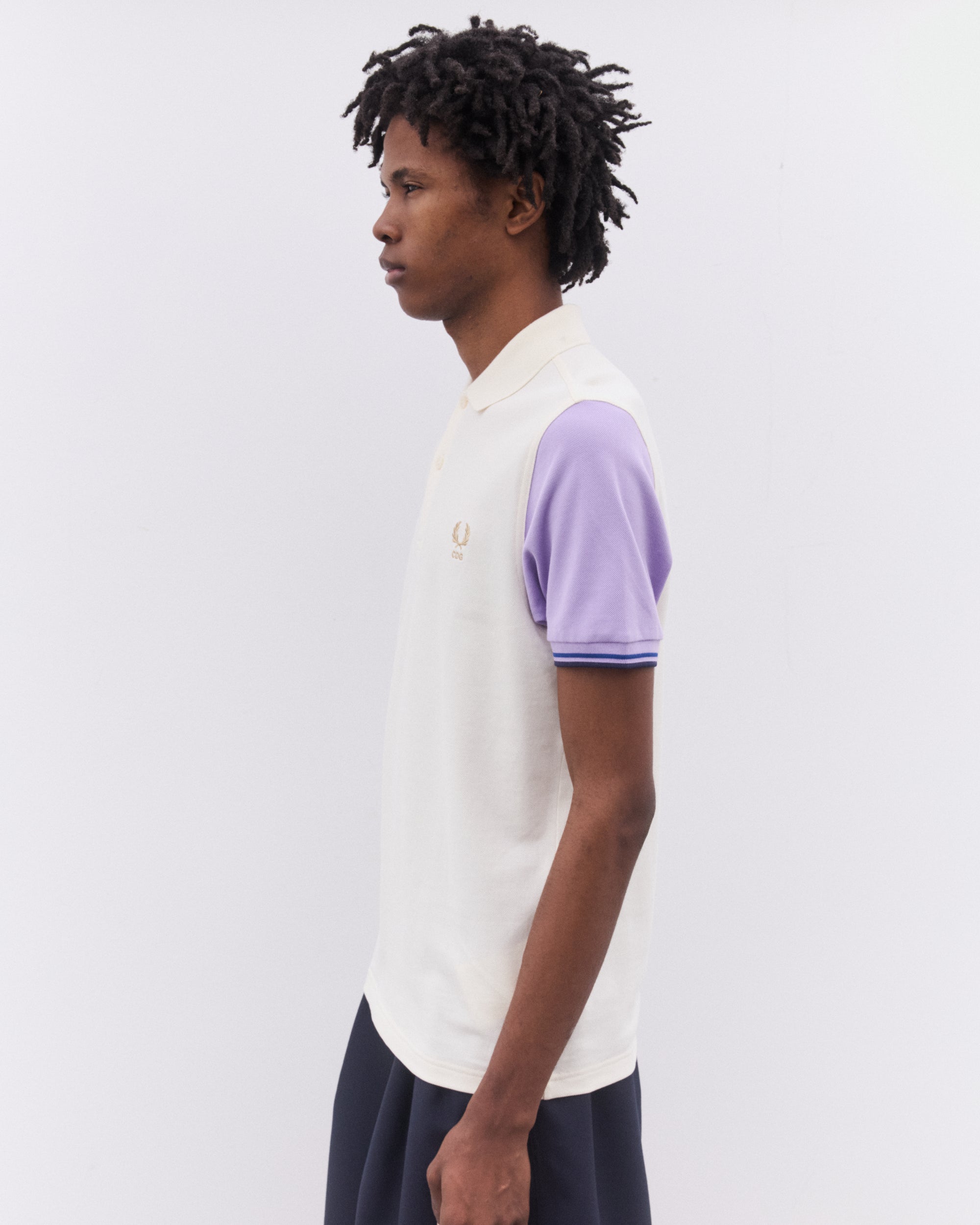 CDG Shirt Men’s Fred Perry Short Sleeve Polo Shirt Ecru/Green/Purple
