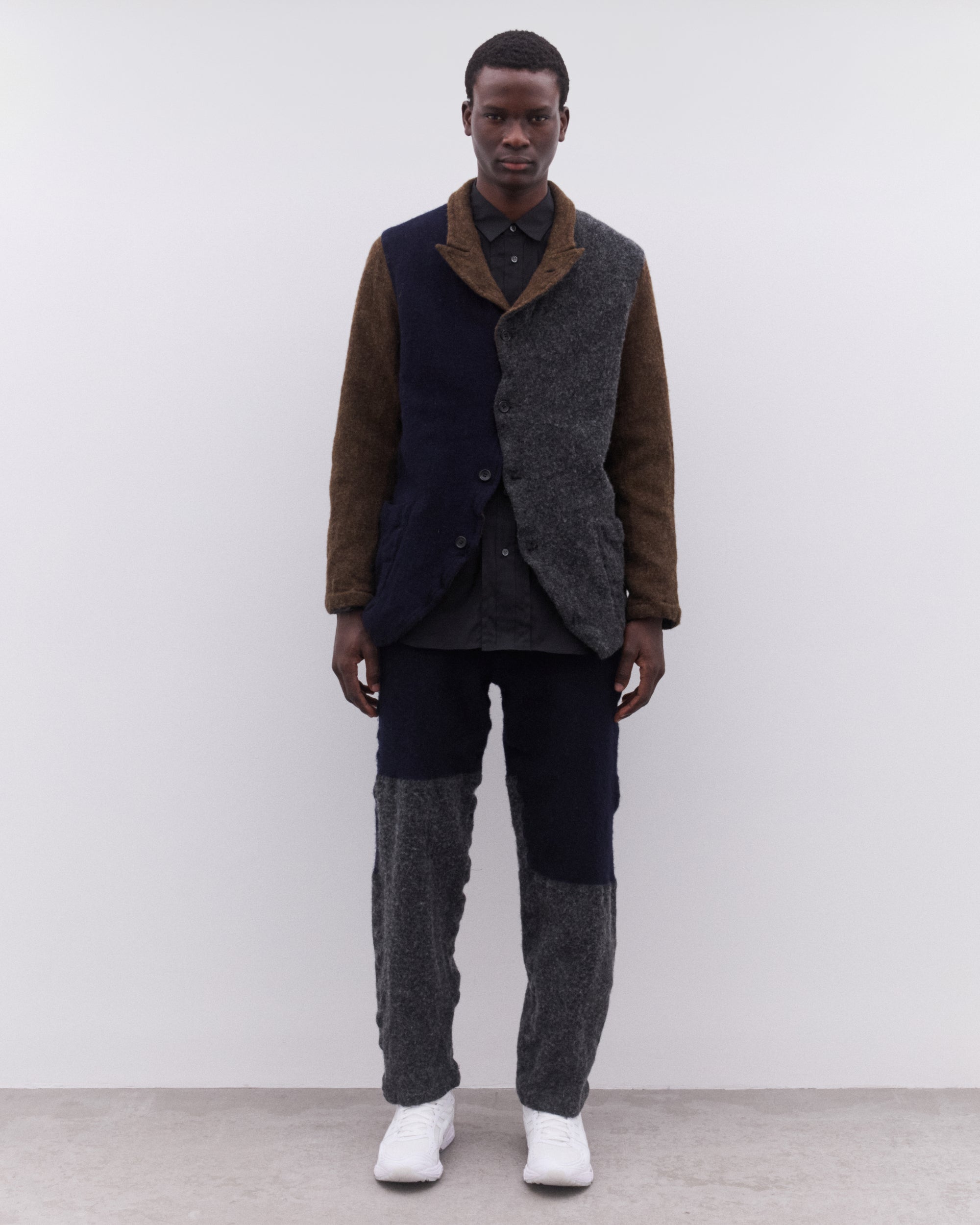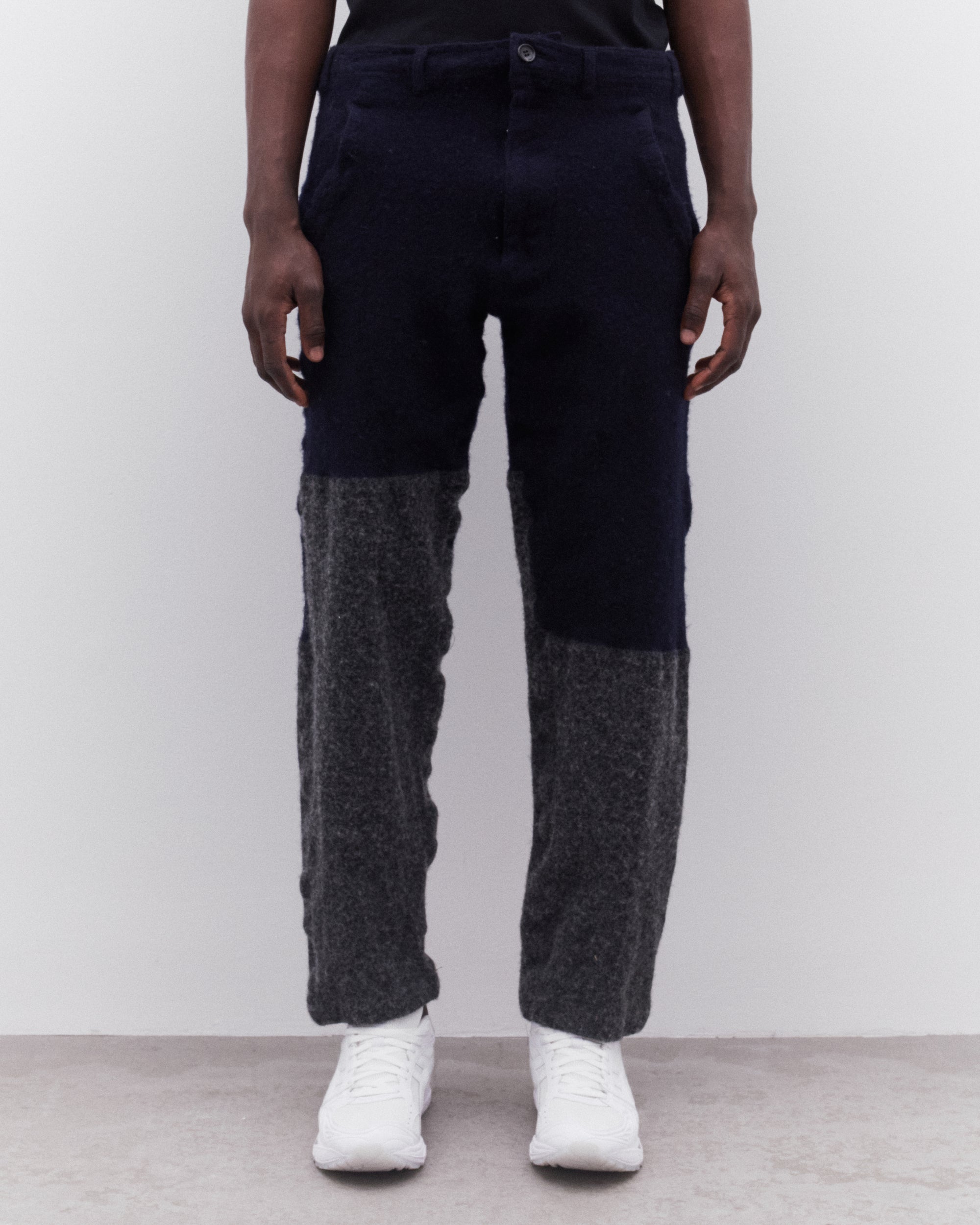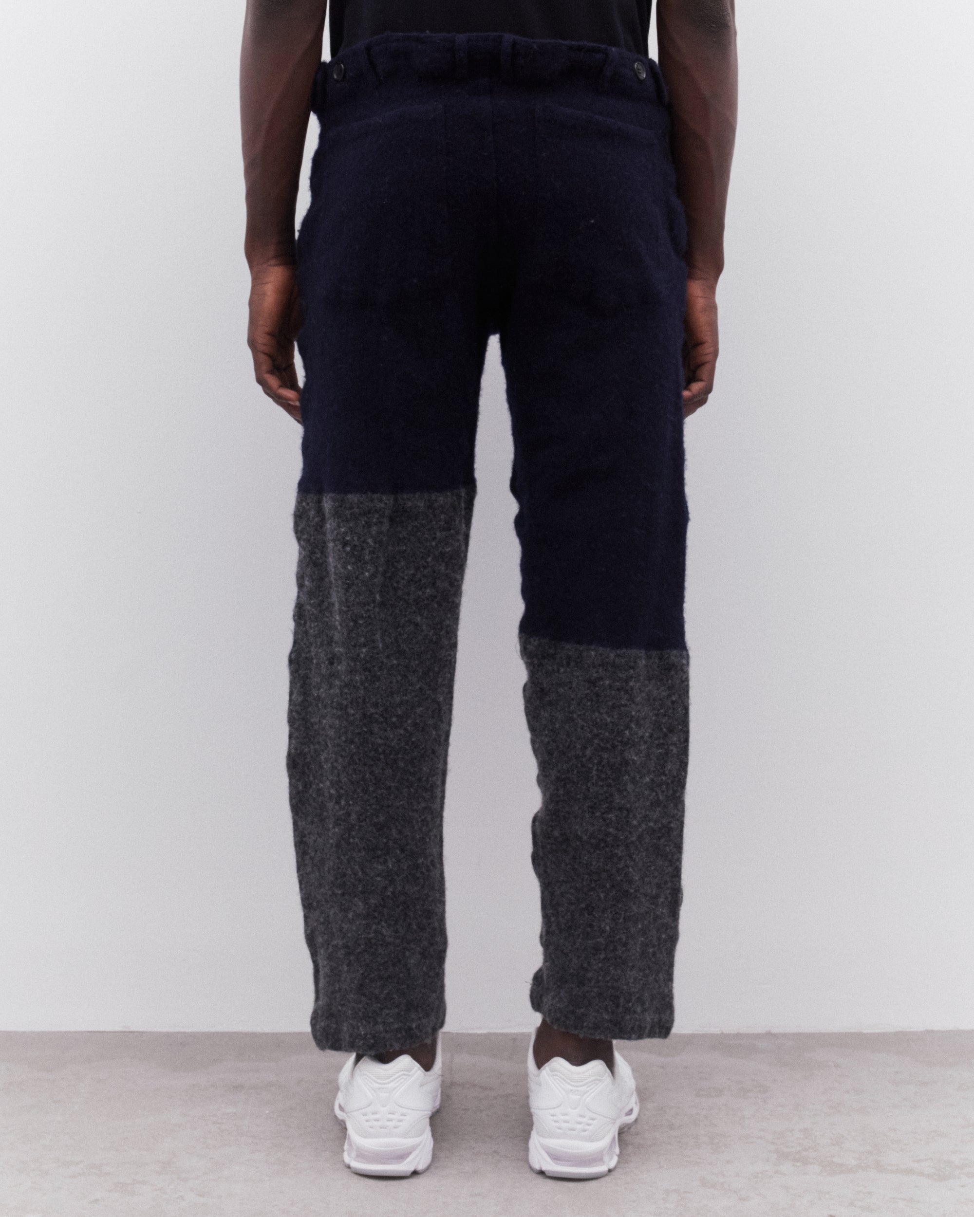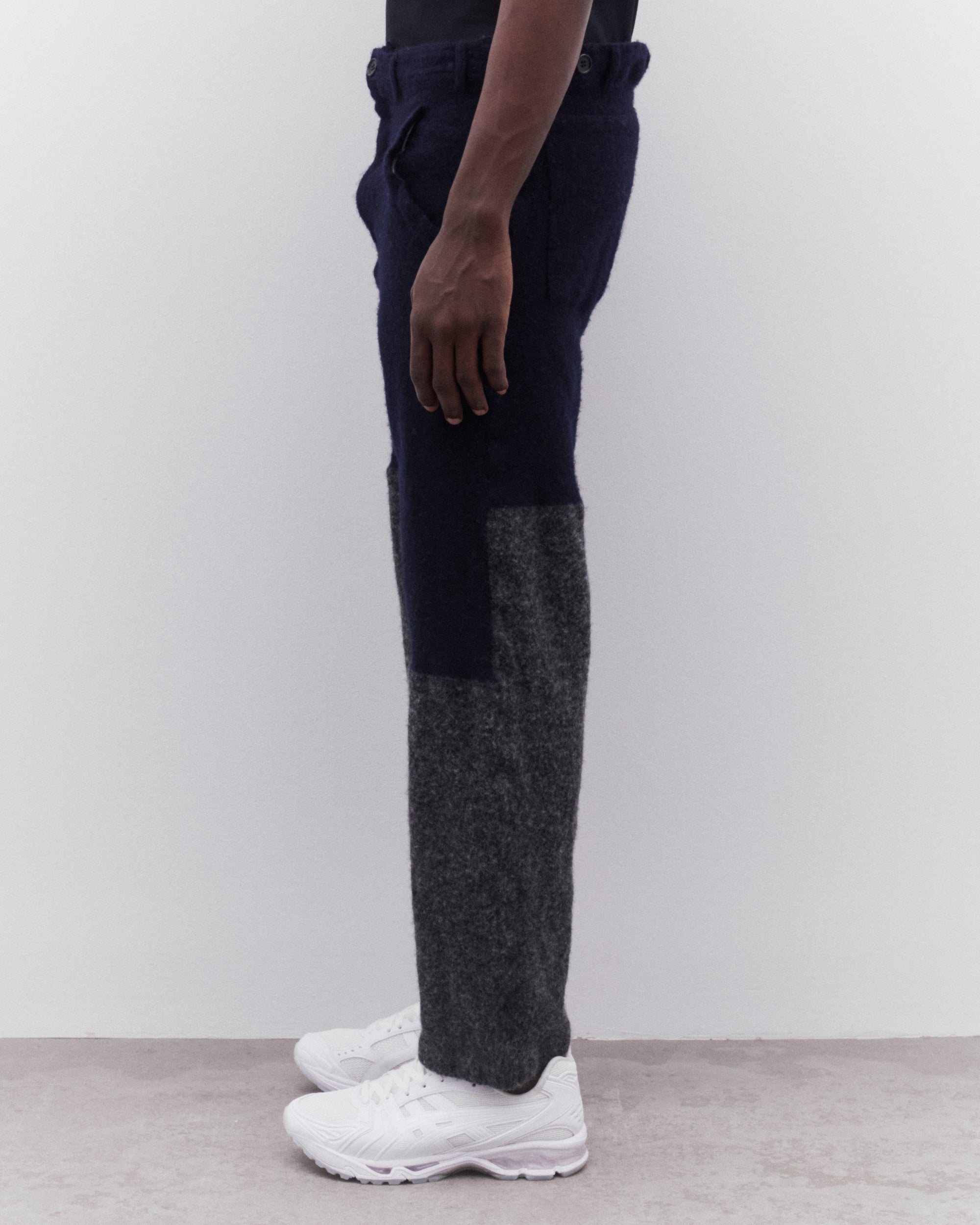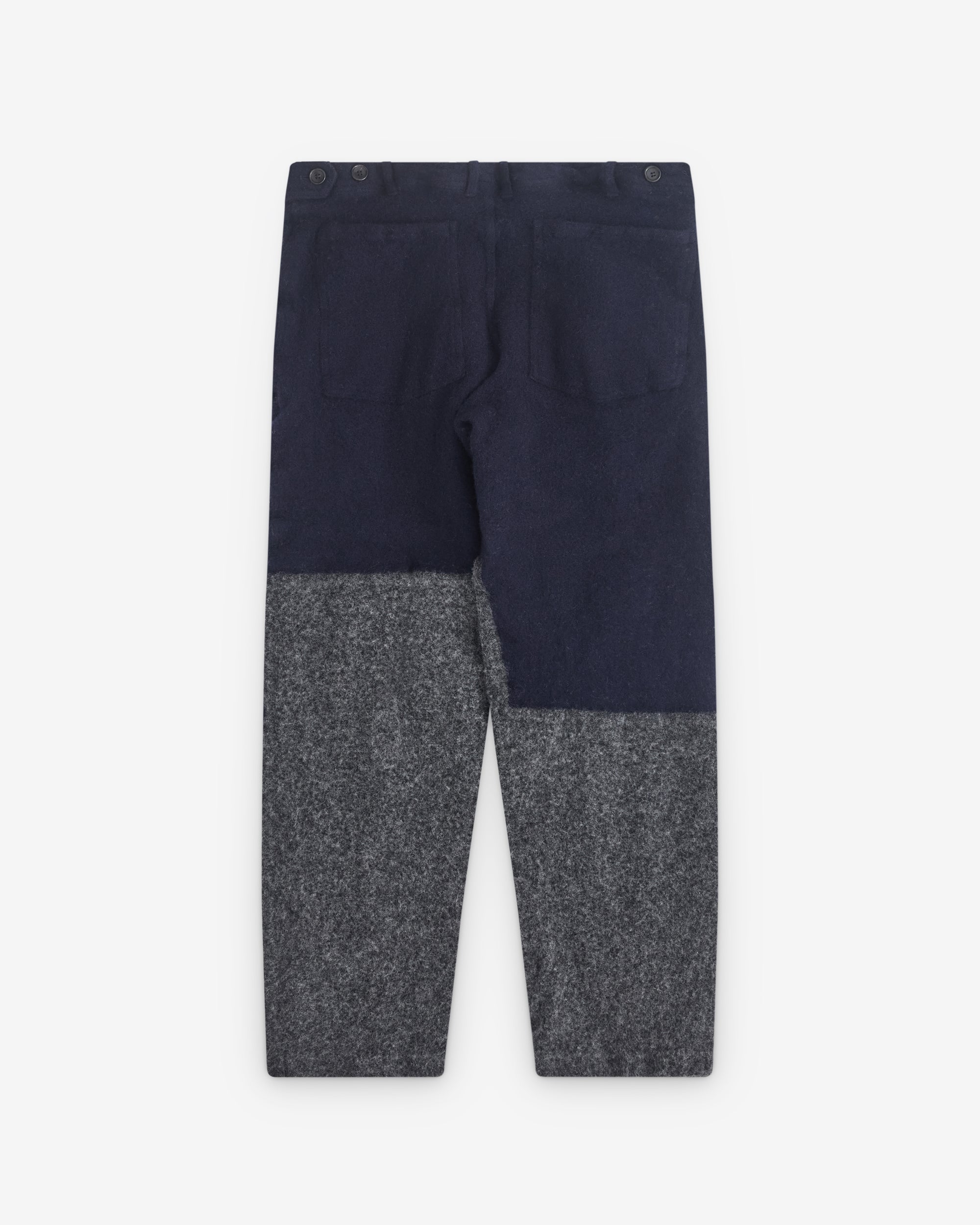 High waistTapered legColour block constructionSide pocketsButton adjusters at waistRear patch pockets90% Wool, 10% NylonMade in France