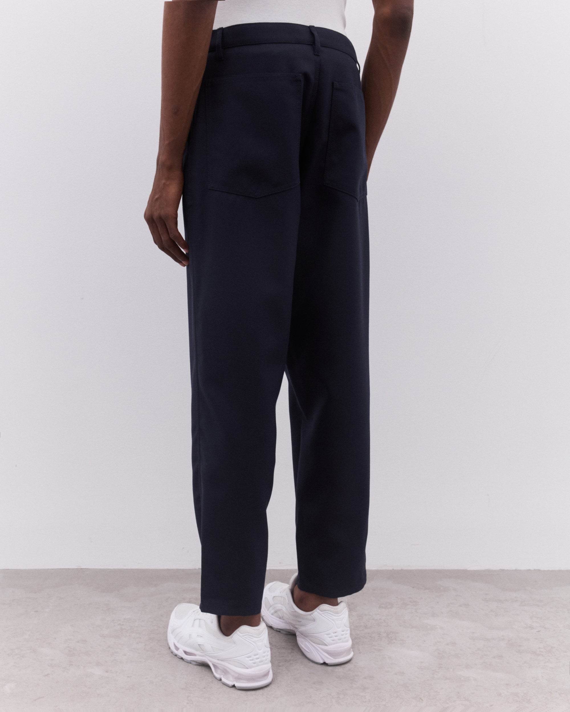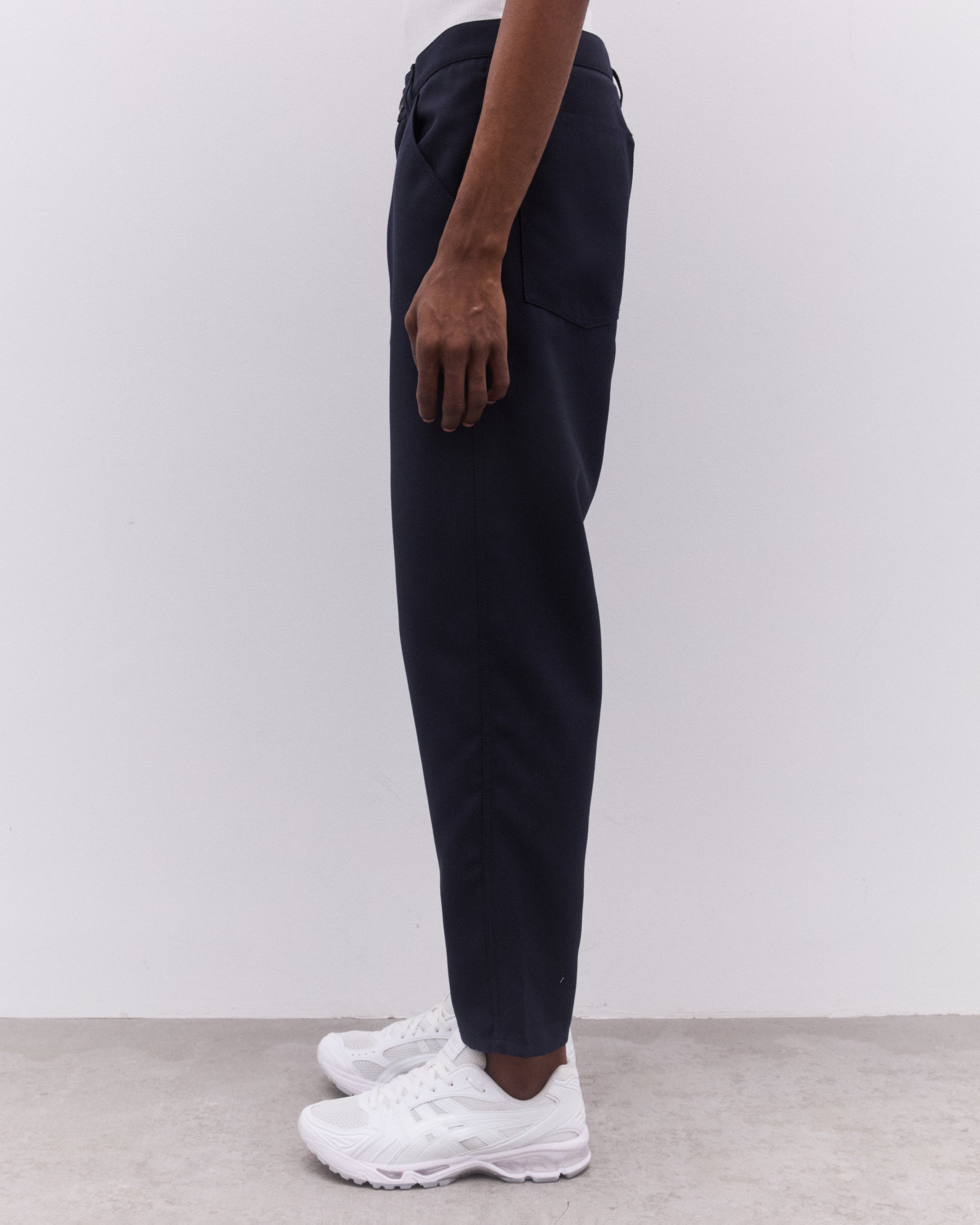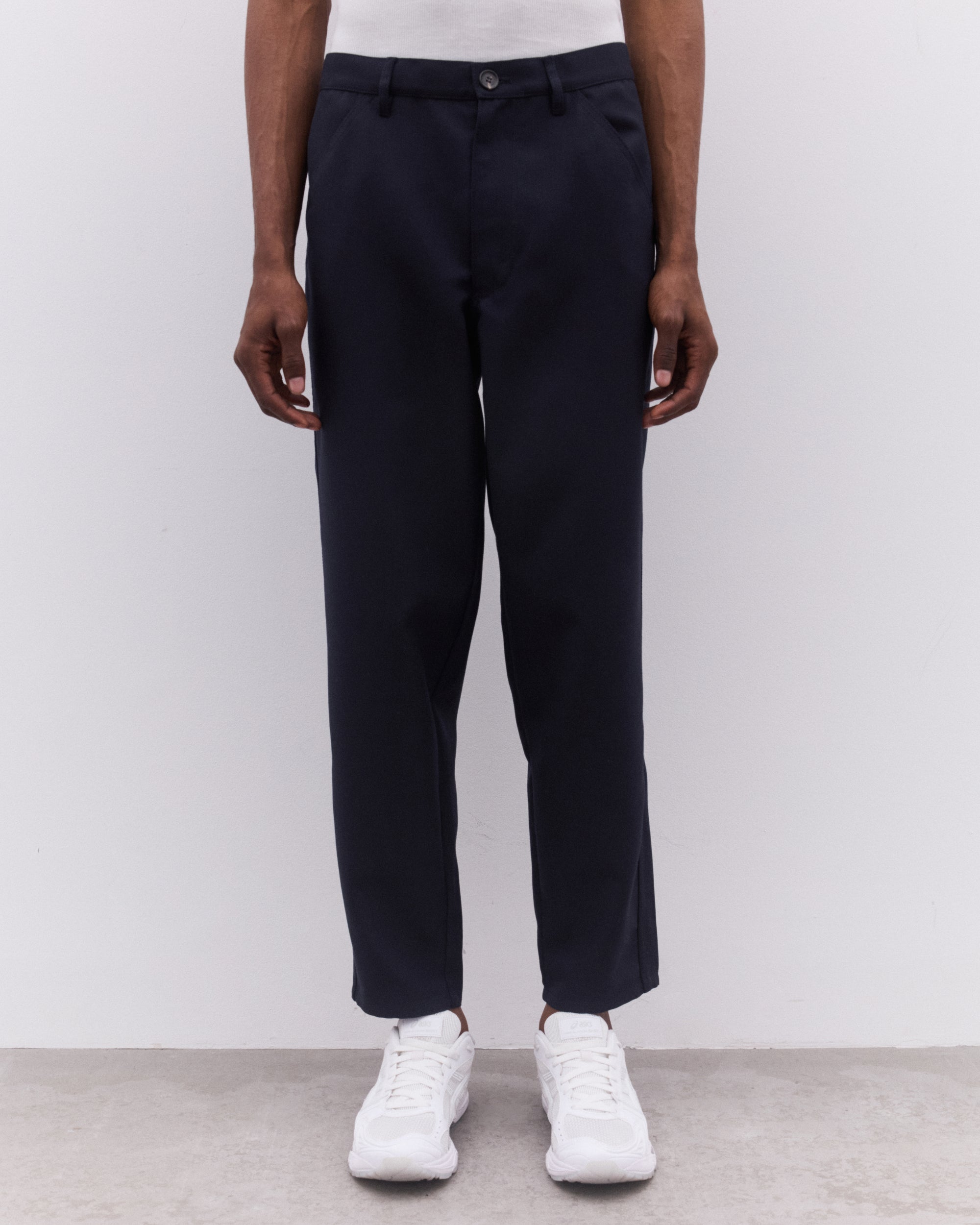 Tapered legFlat frontSide pocketsButton and zip flyBelt loops50% Polyester, 45% WoolMade in France