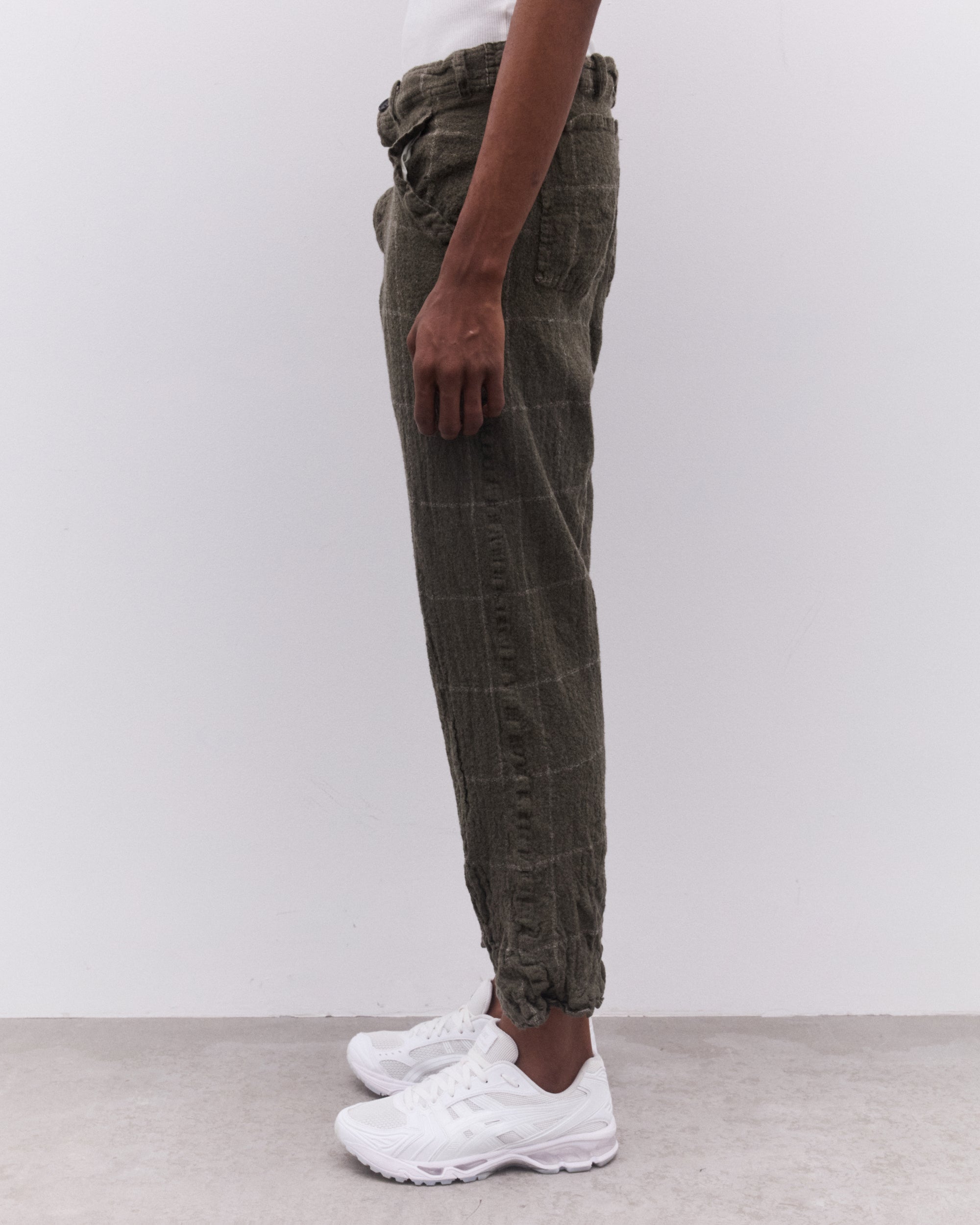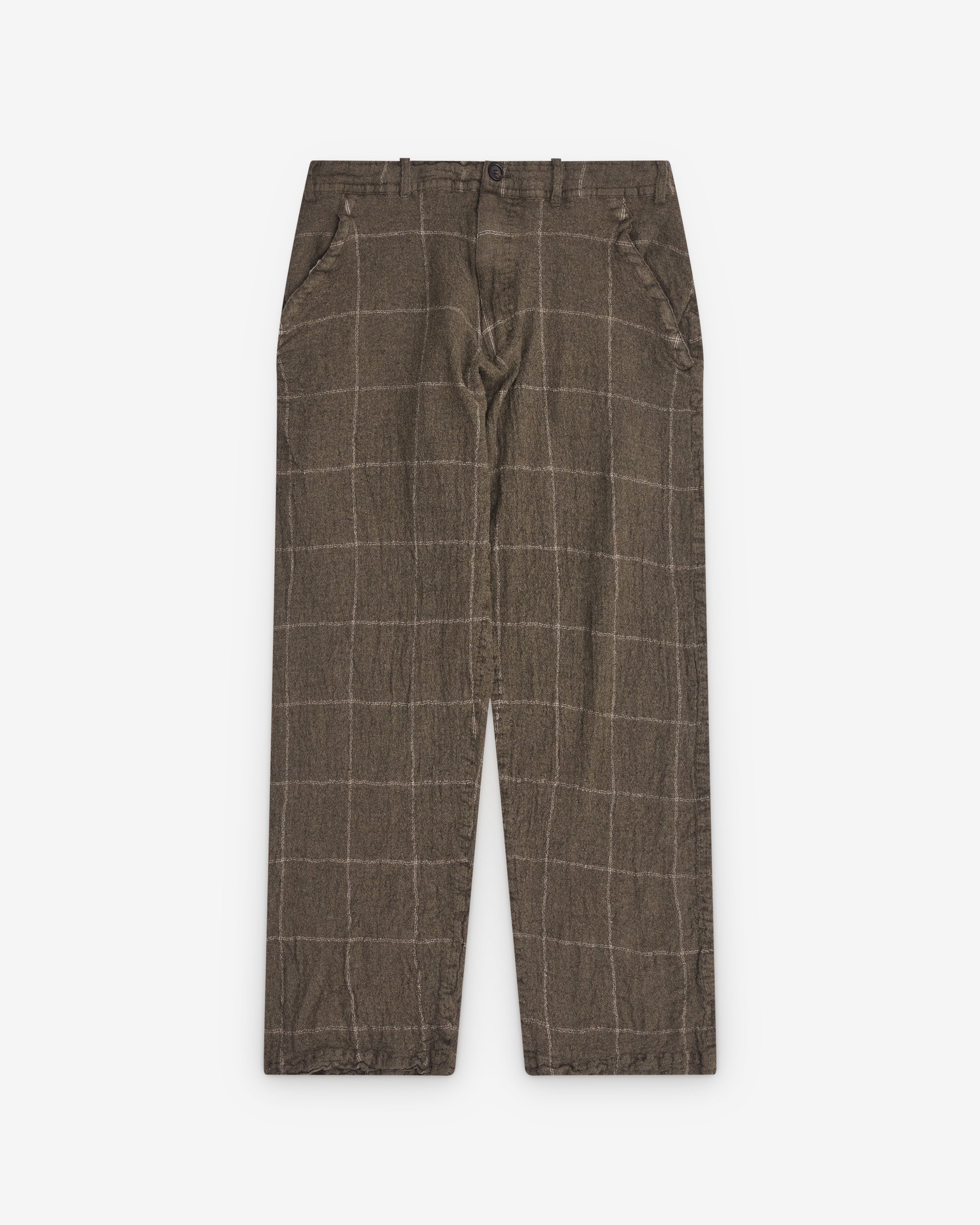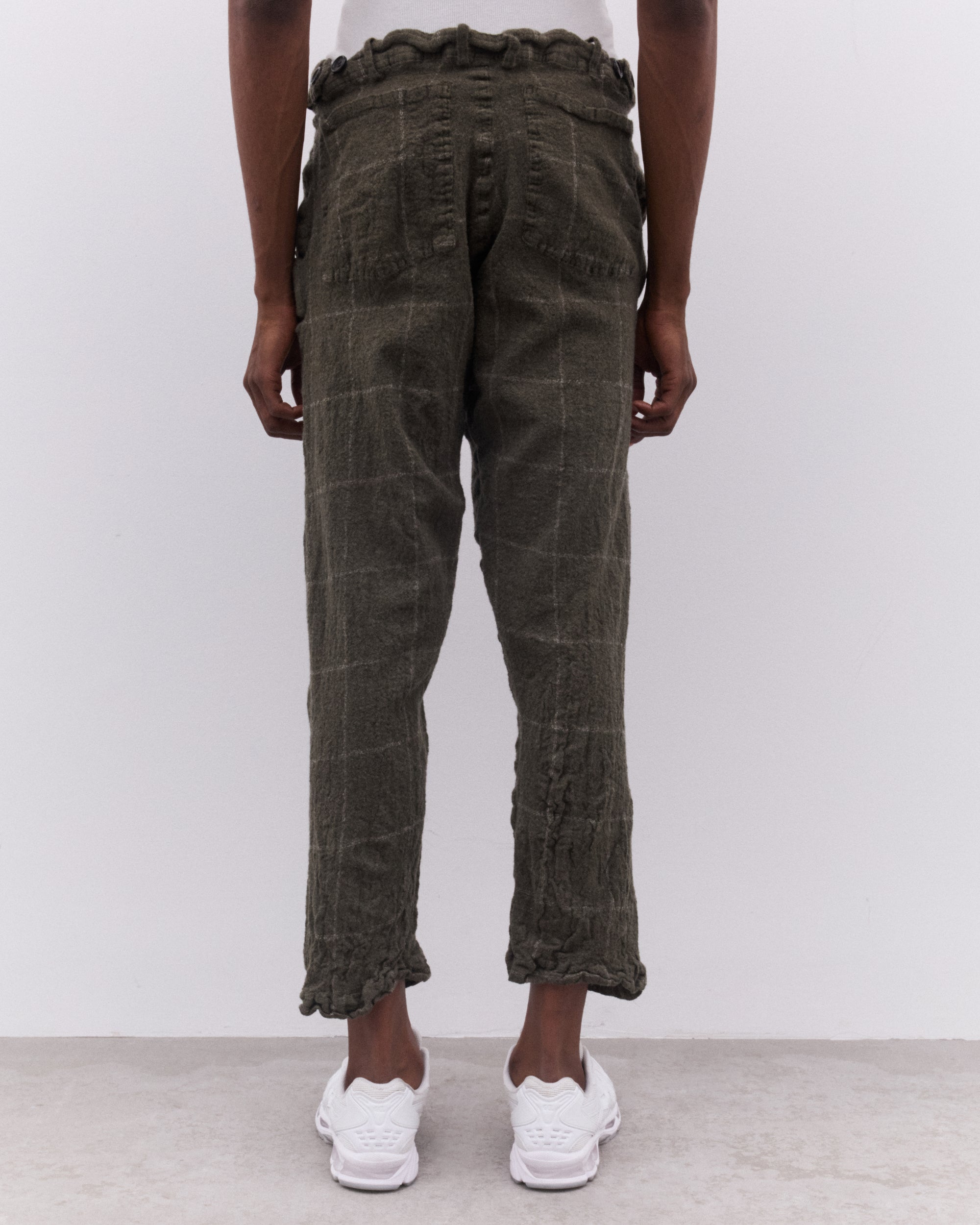 Straight legSide pocketsRear patch pocketsButton and zip flyGarment treated100% WoolMade in Japan