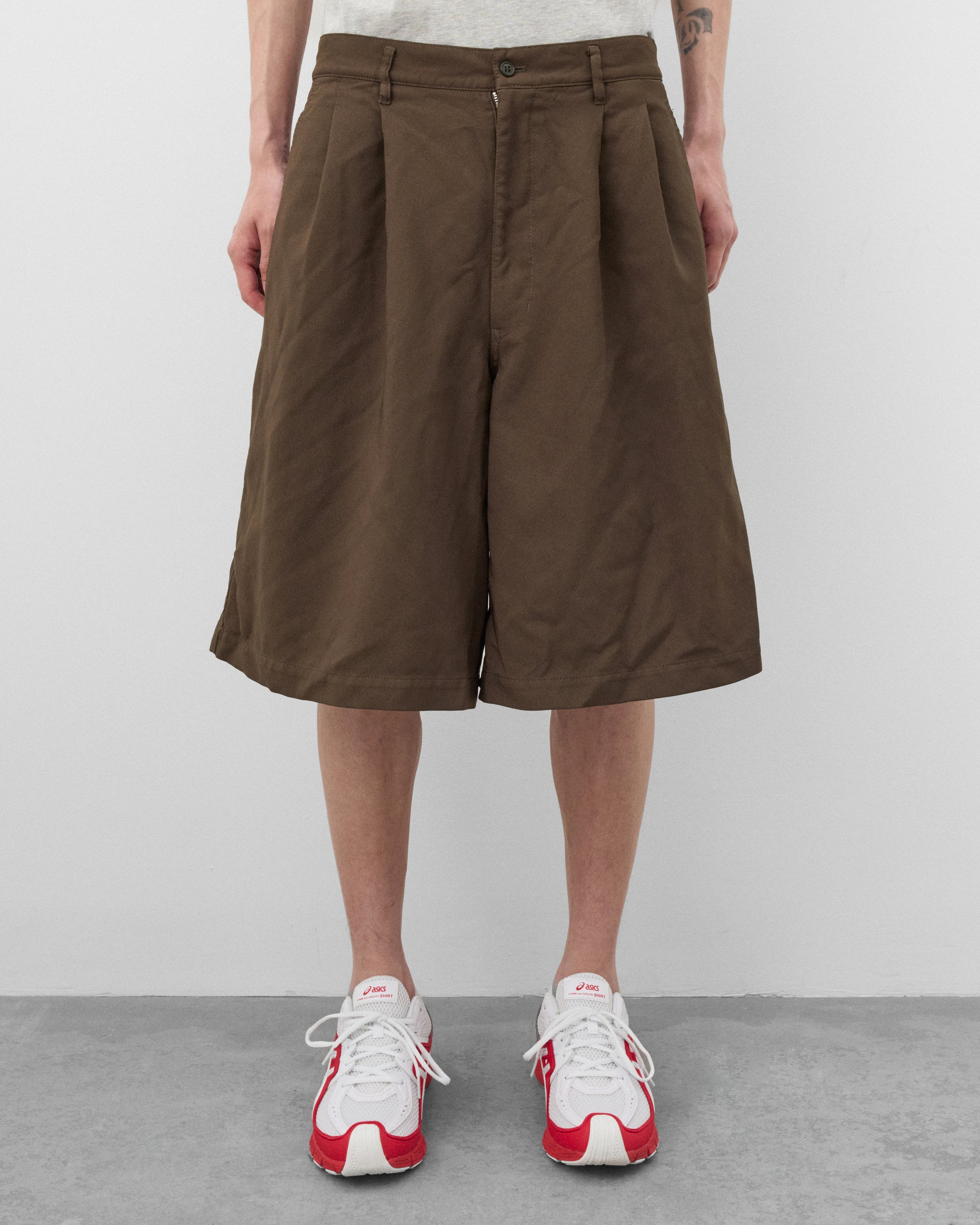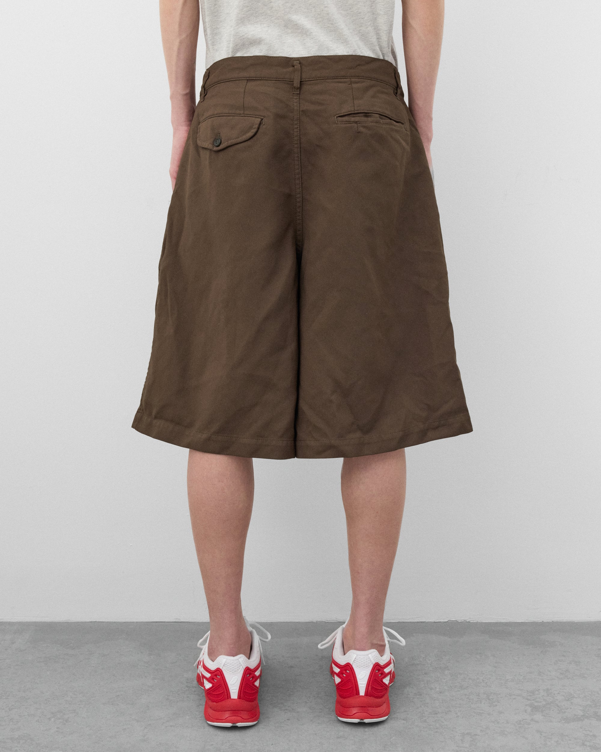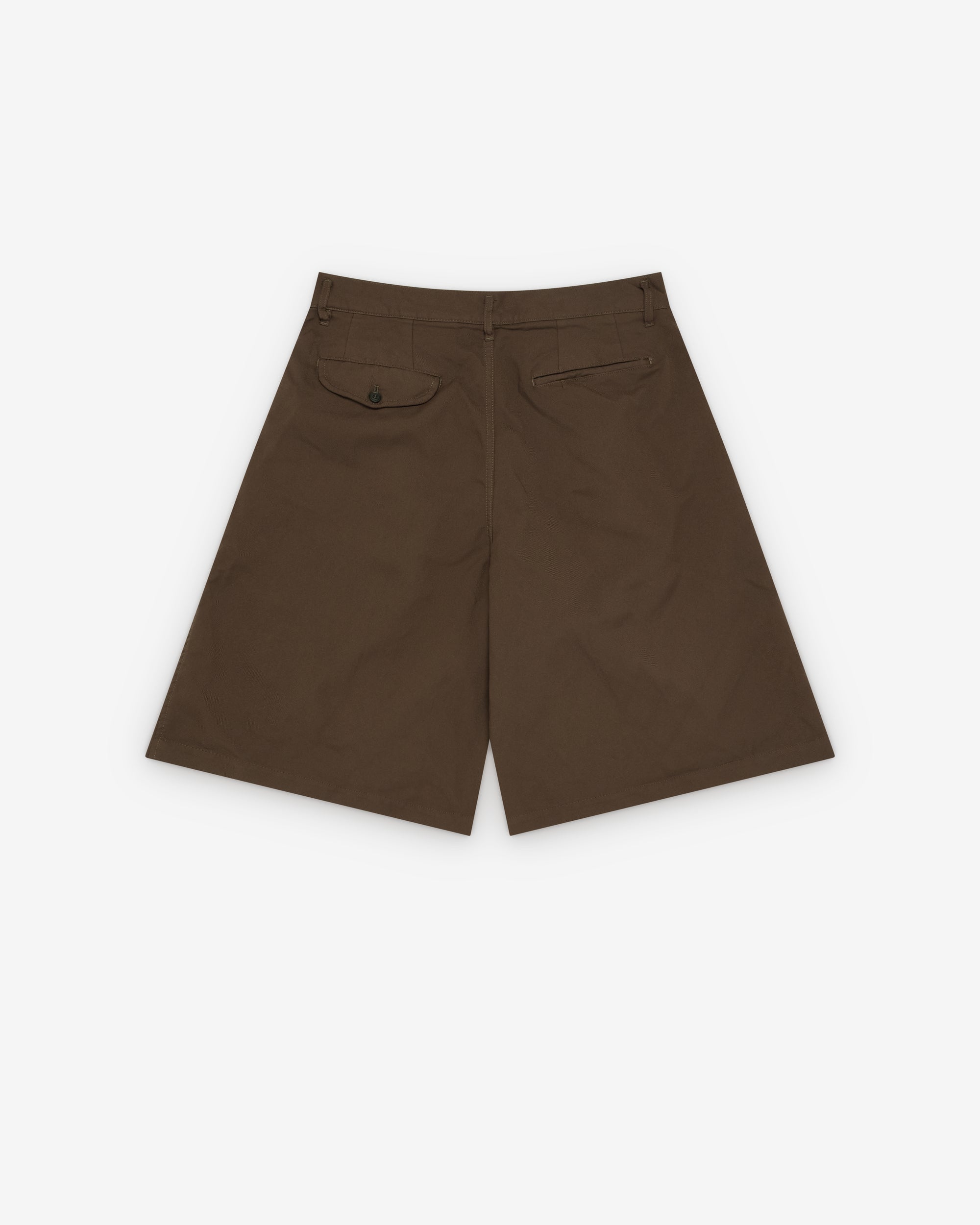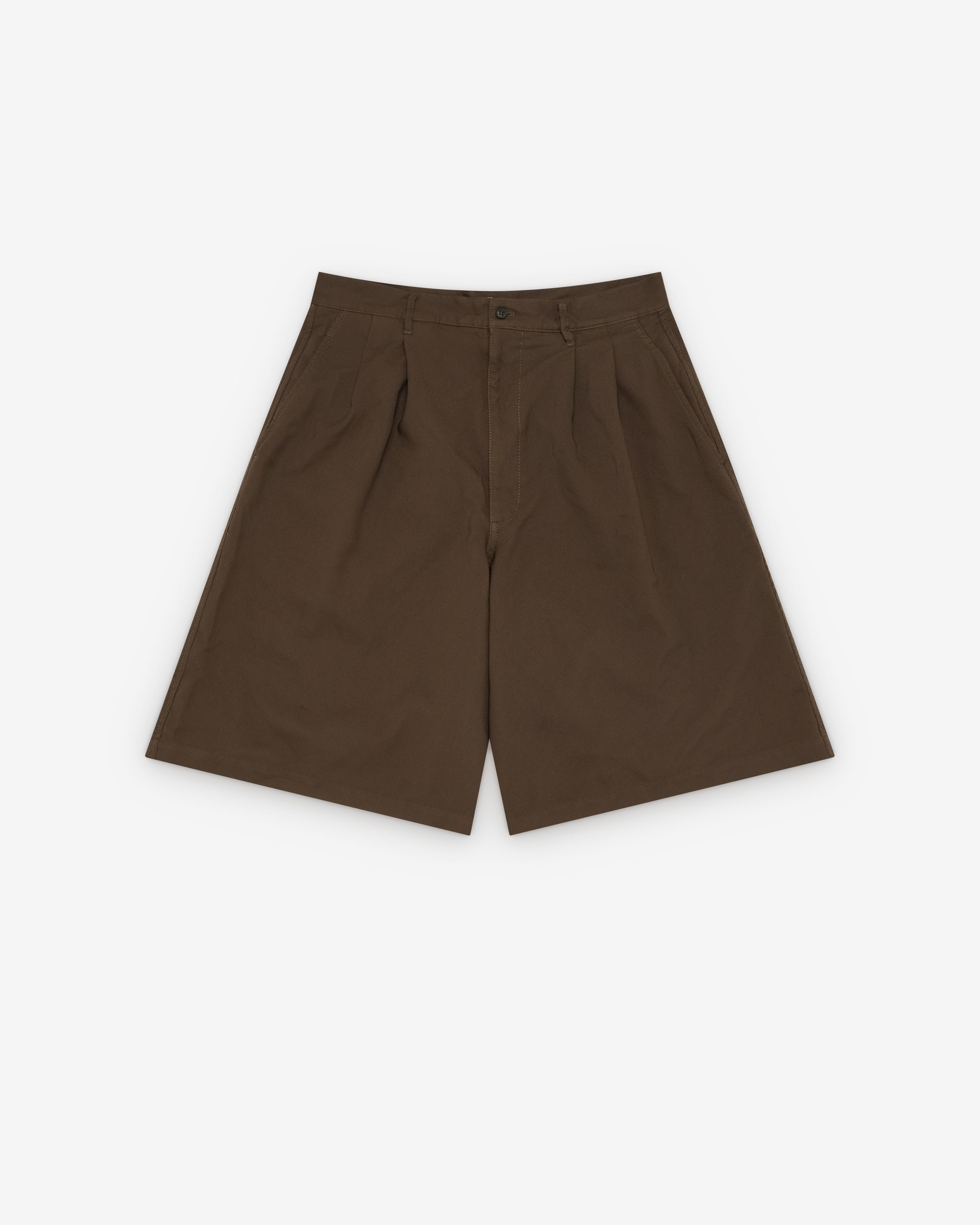 Button waist, zip flyPleated frontFront slip pocketsTwo back pocketsWide leg