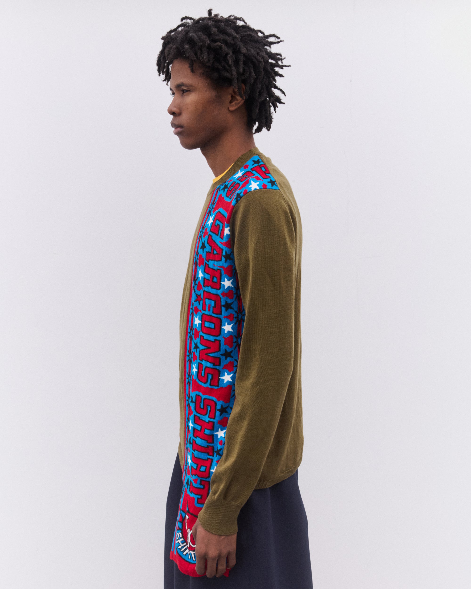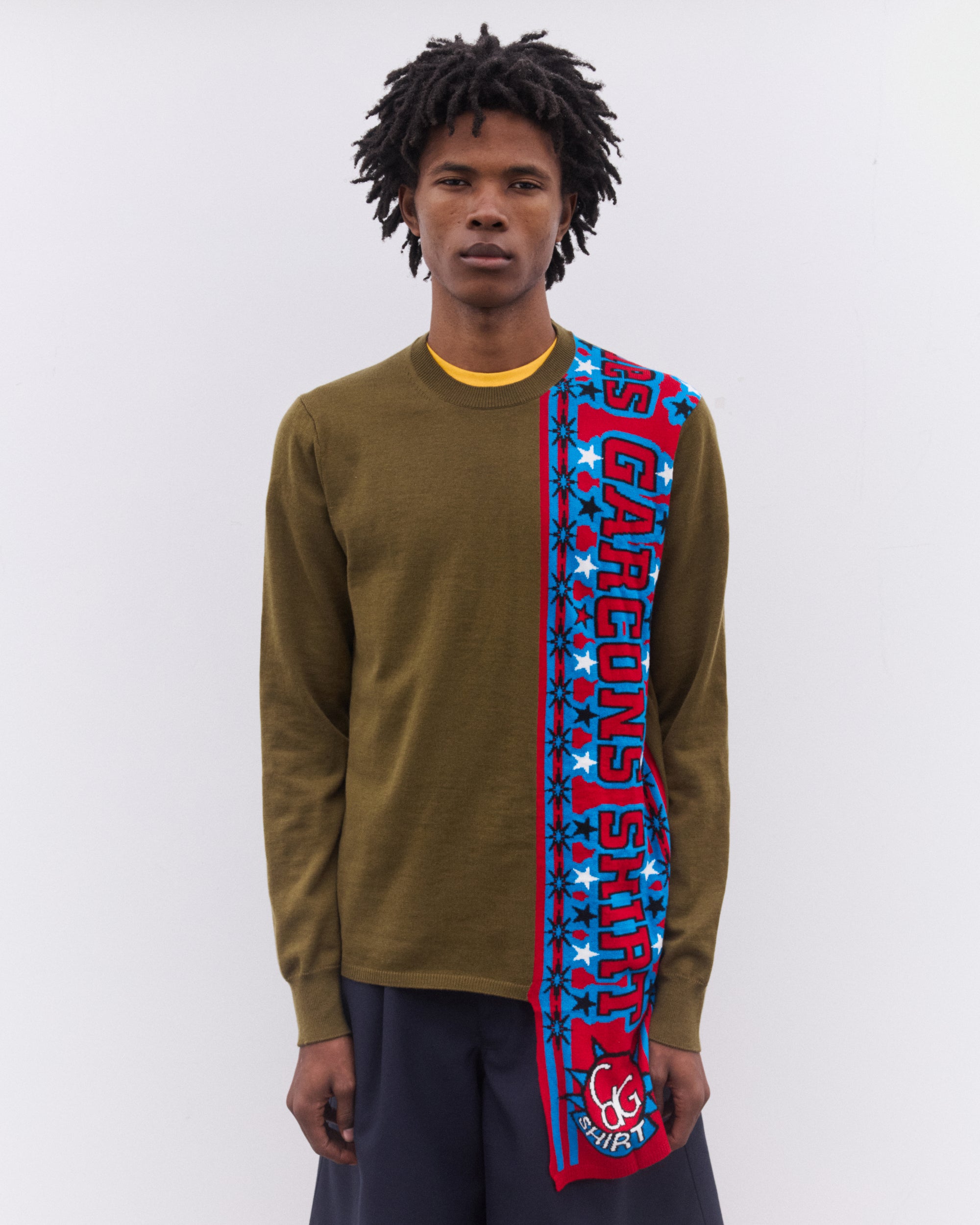 CDG Shirt Men’s Football Scarf Knitted Sweater Khaki/Red