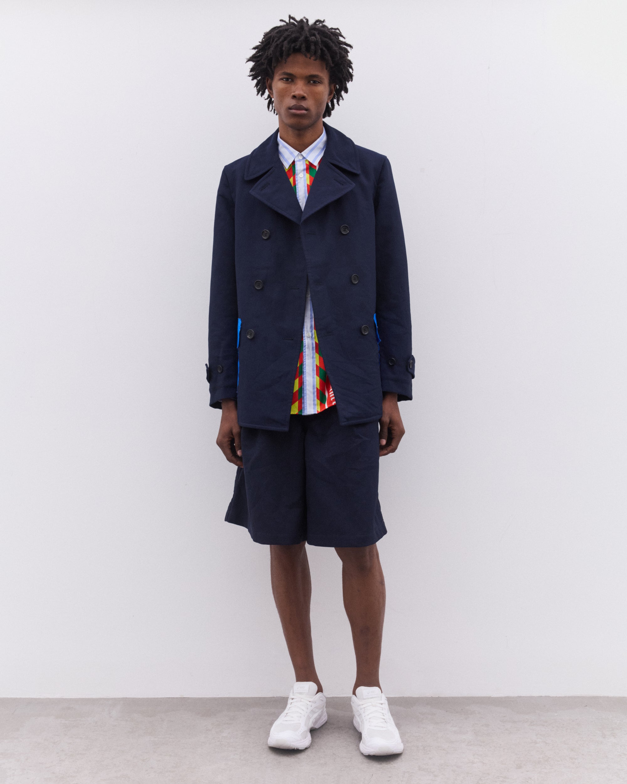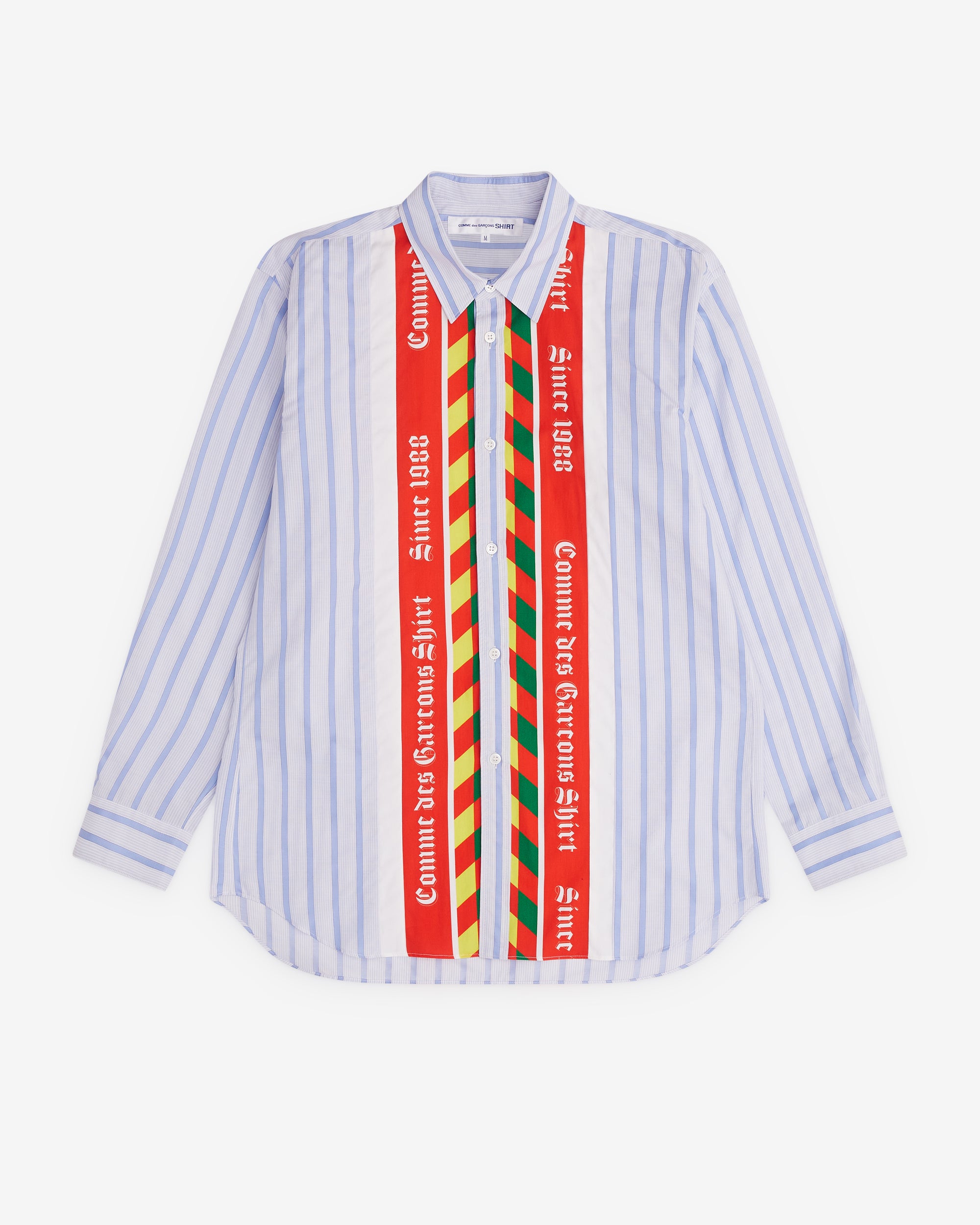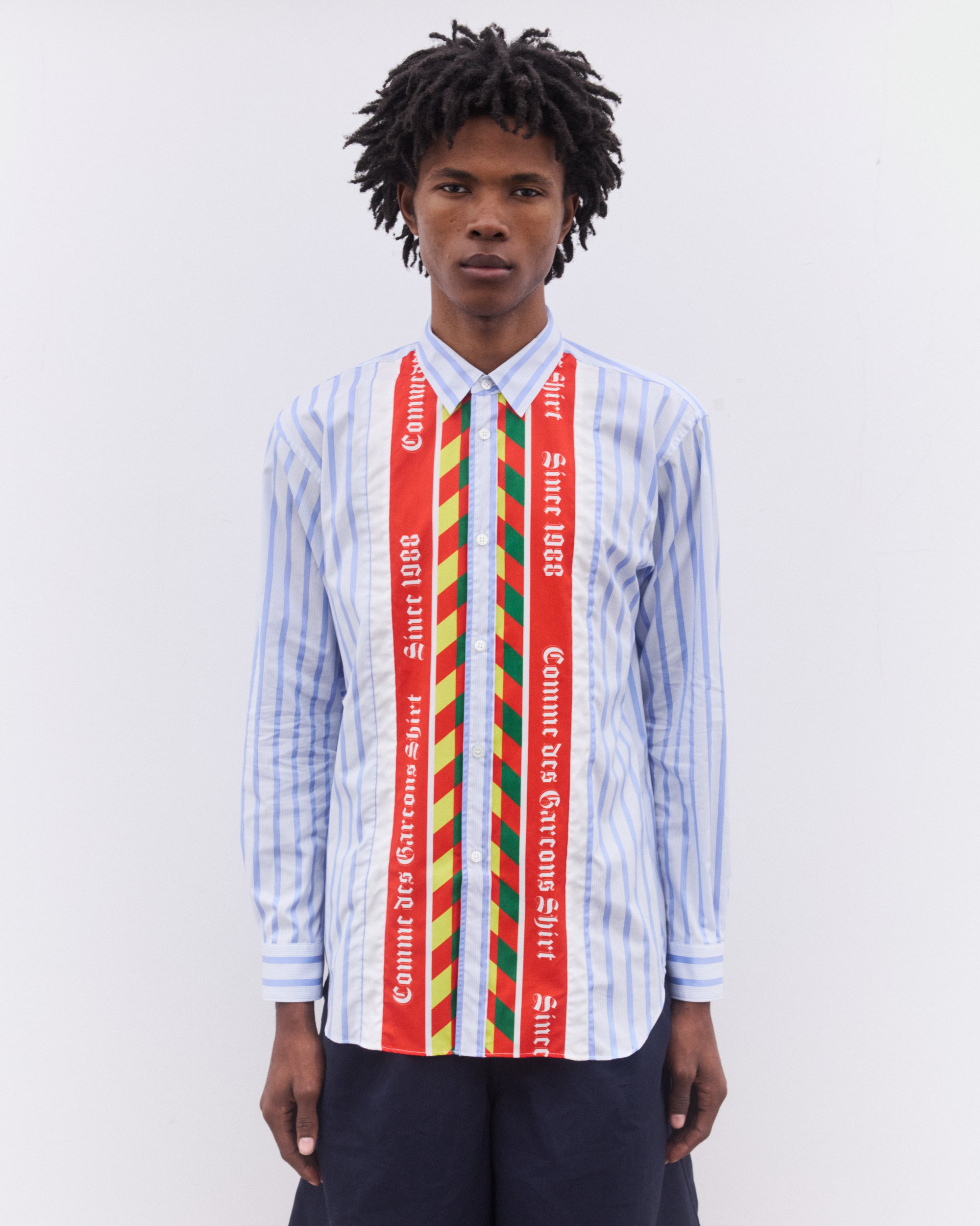 CDG Shirt Men’s Striped Football Scarf Placket Shirt Blue