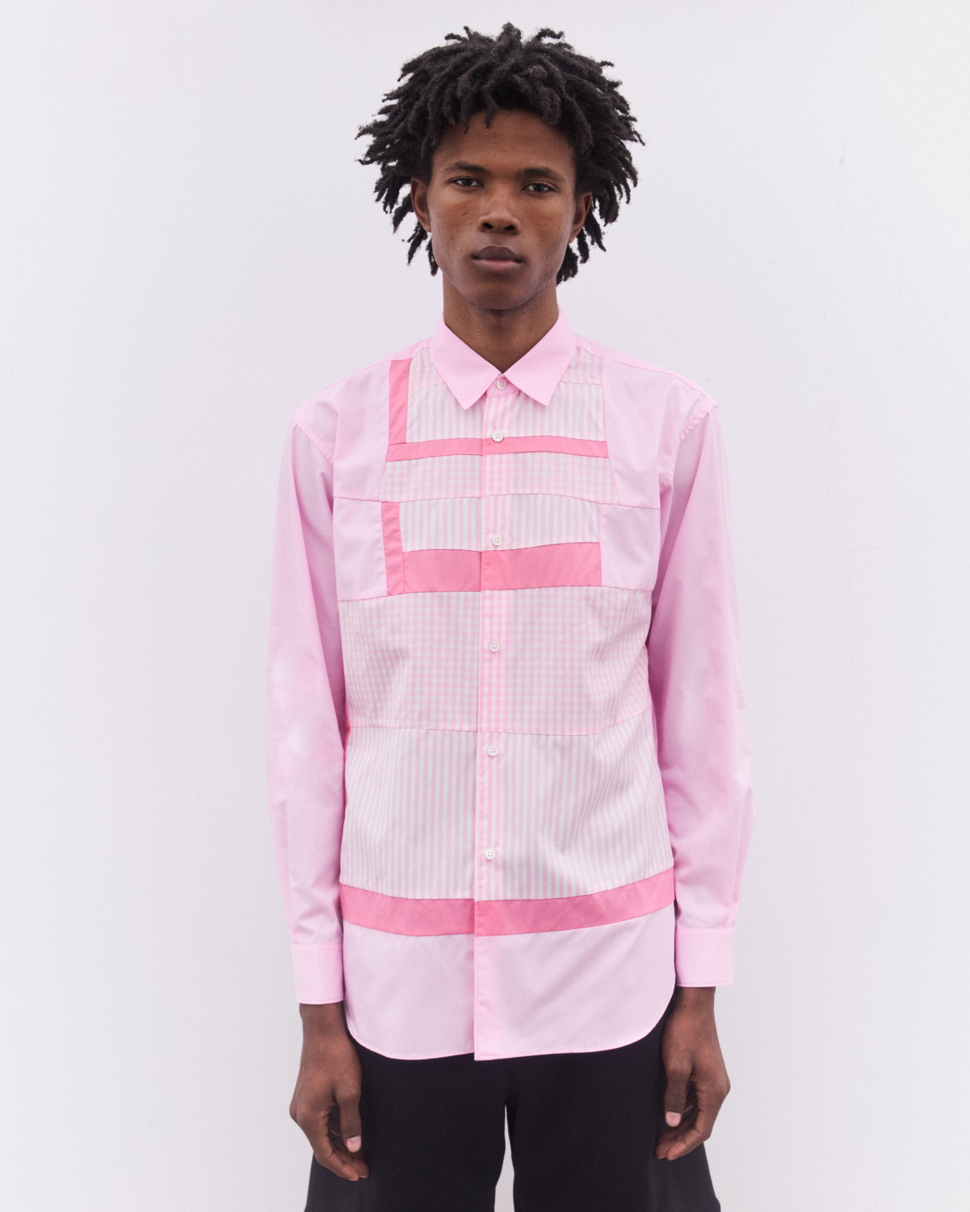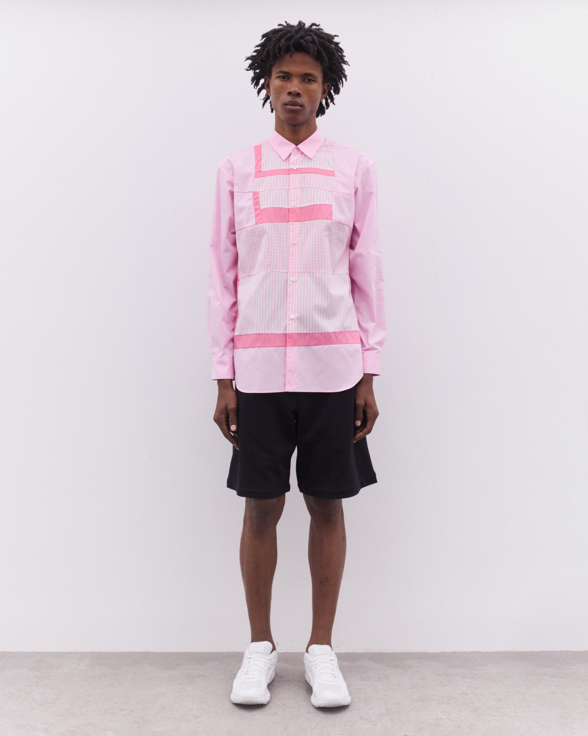 CDG Shirt Men’s Gingham Patchwork Panelled Shirt Pink