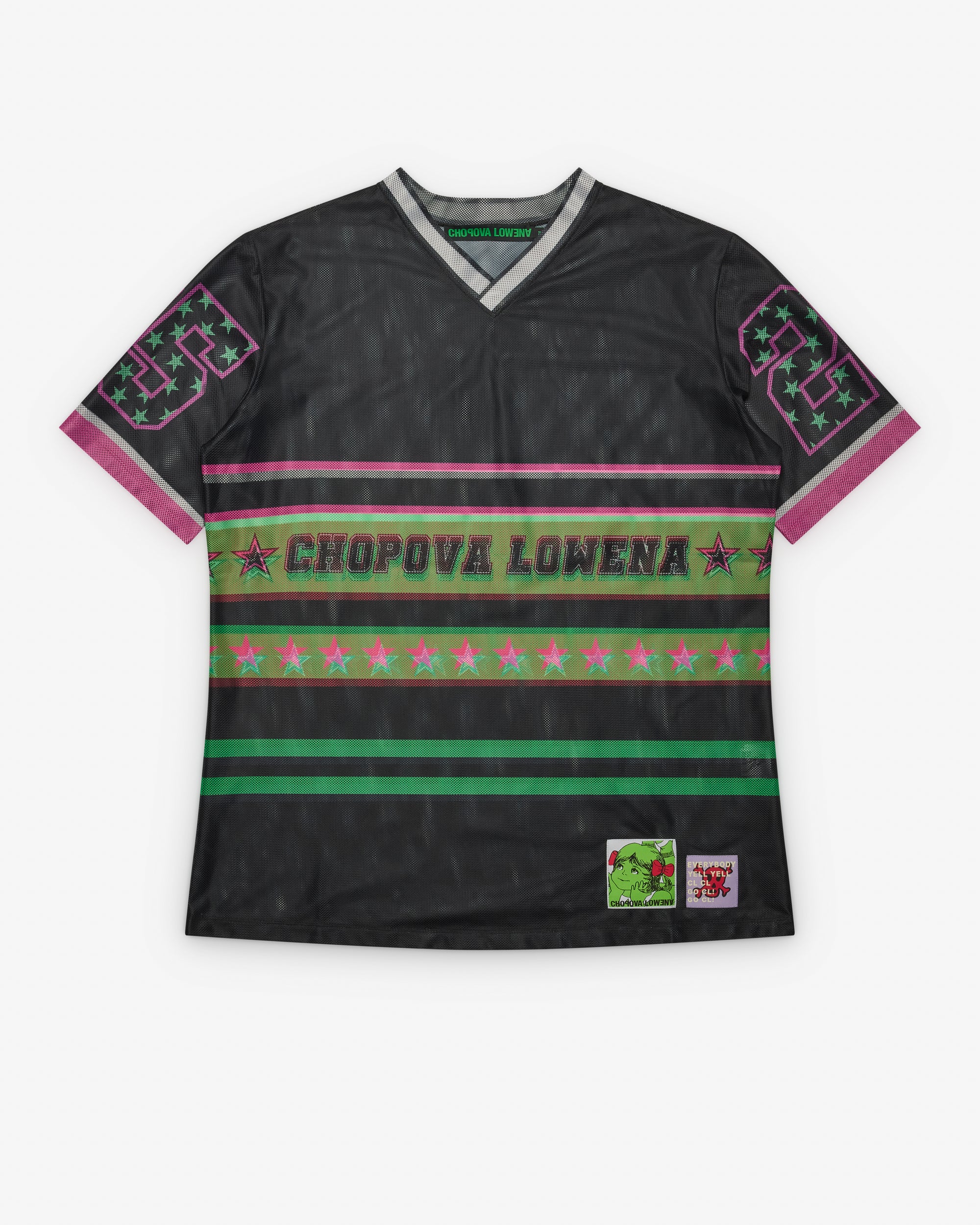 V-neckline Short sleevesMesh sports fabricGraphic tab