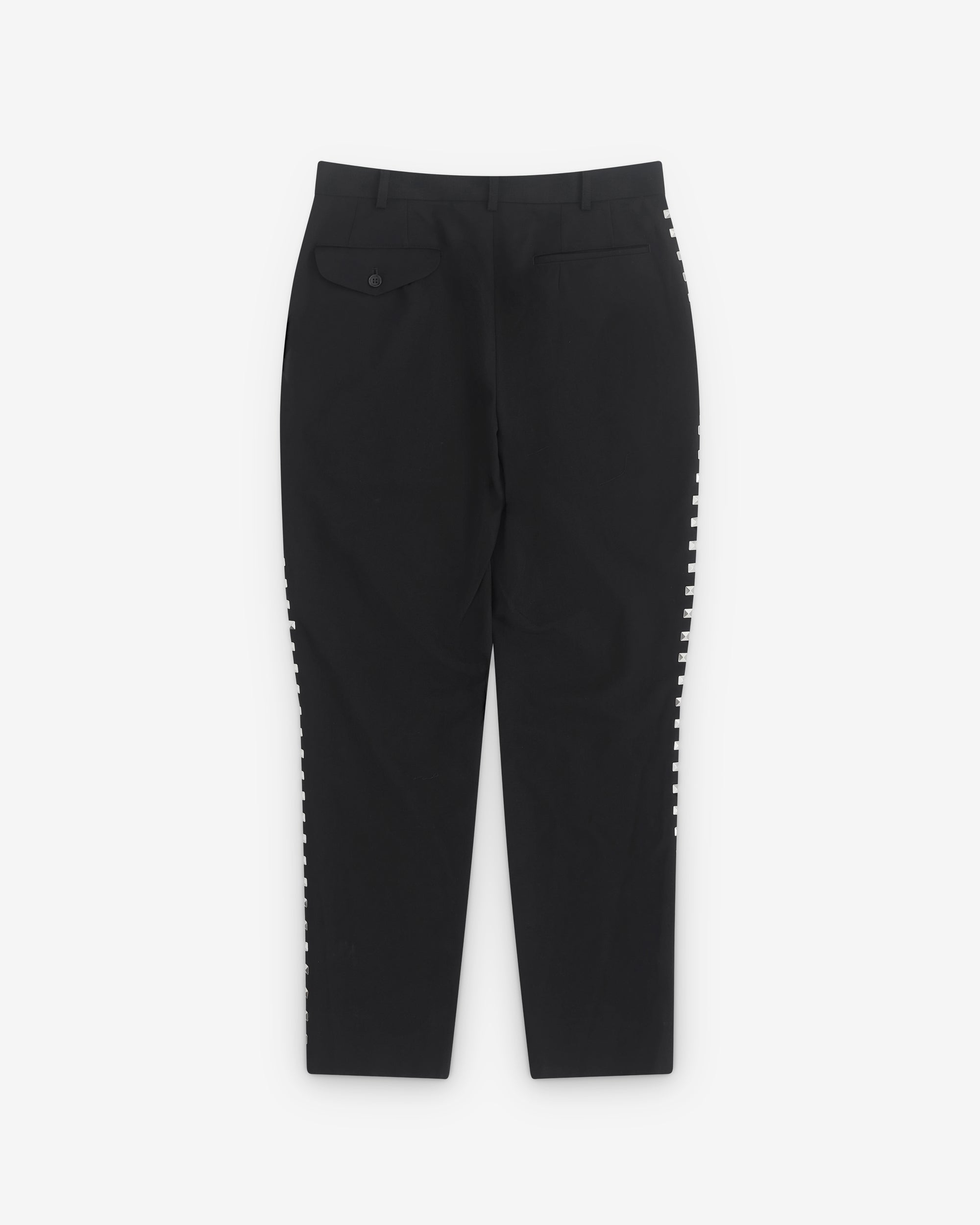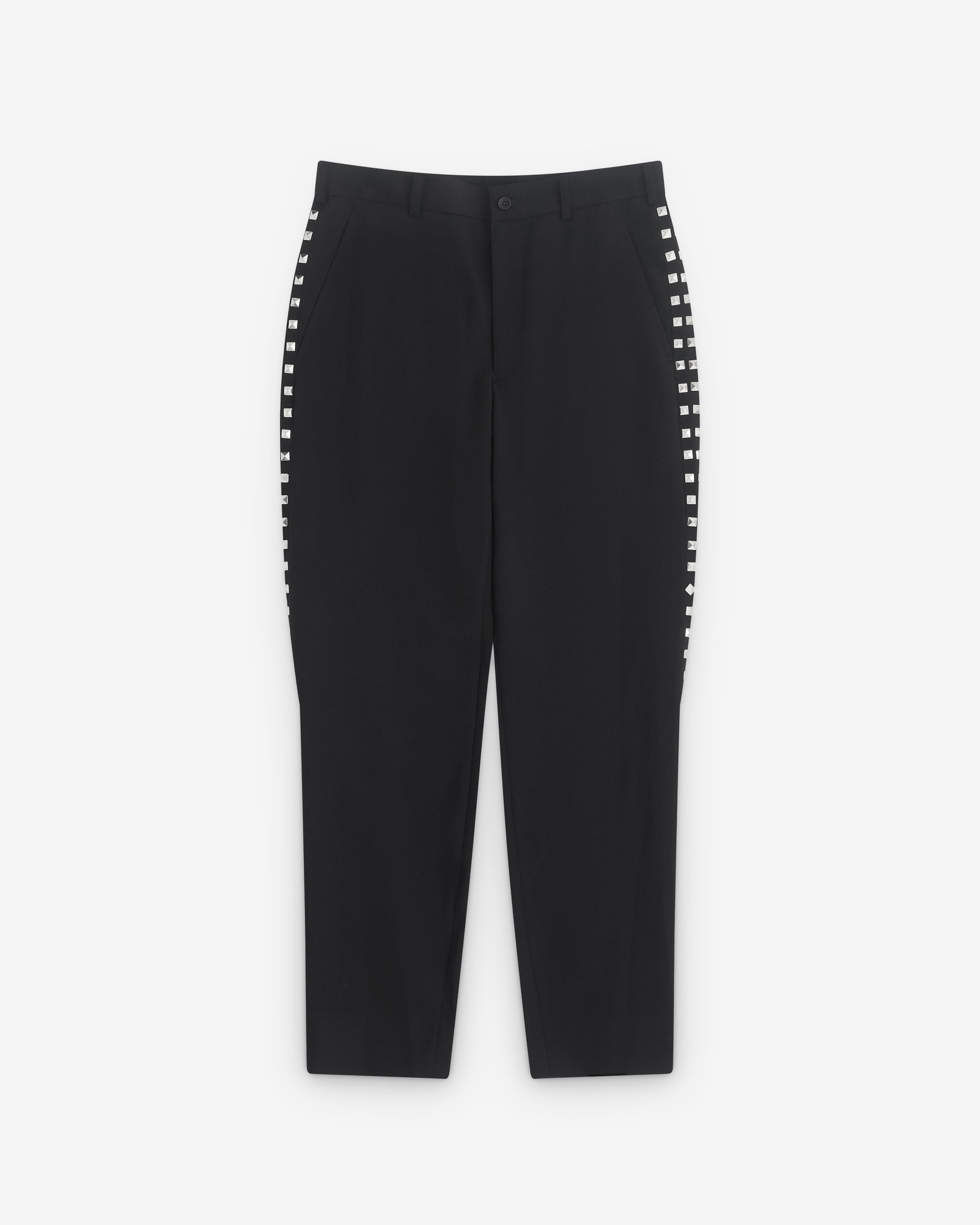 Tapered leg Button and zip fly fasteningStudded detail at outer seamBelt loops