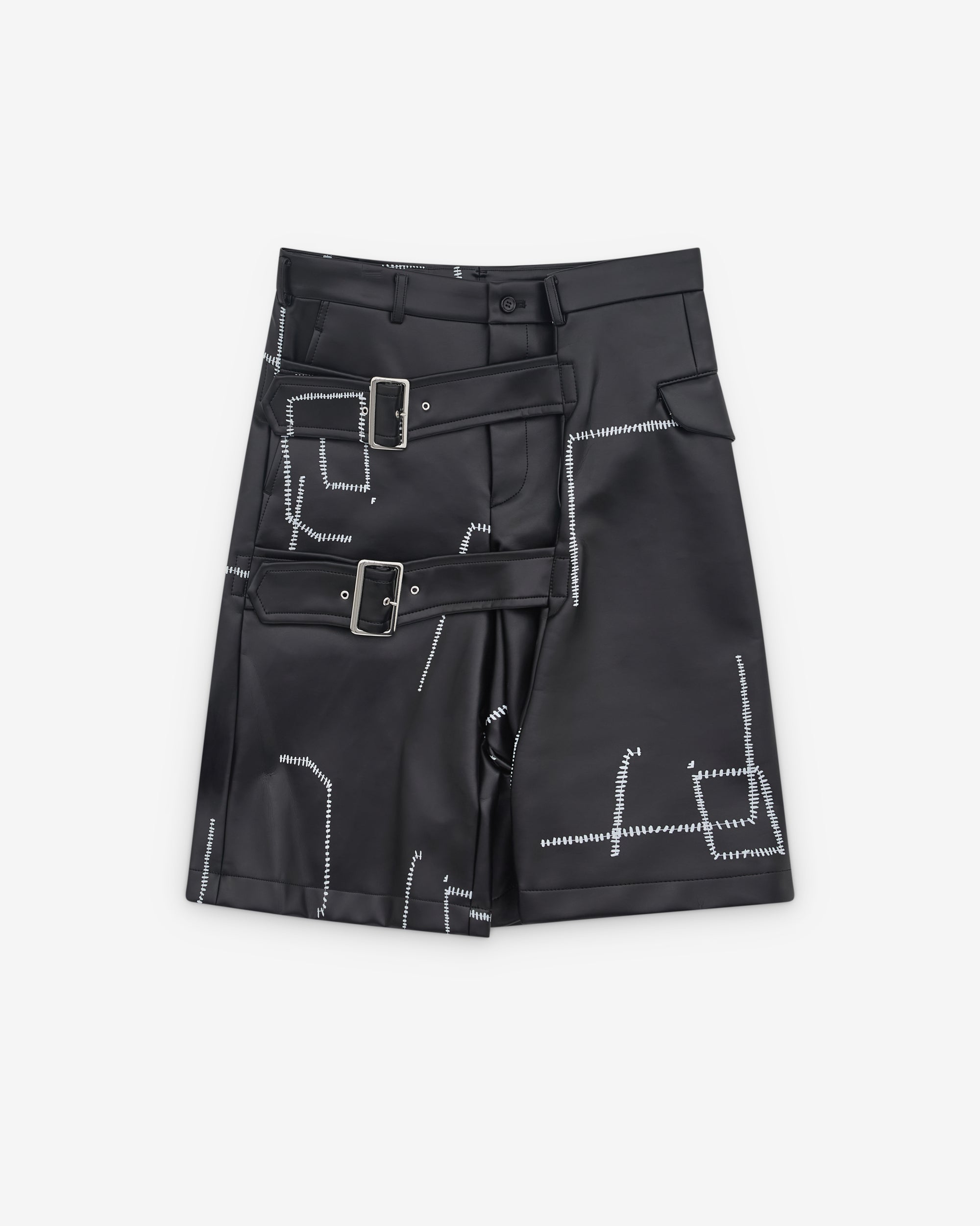 High waistButton and zip-fly closureWide legDouble buckle detailPrinted stitches throughoutBelt loops