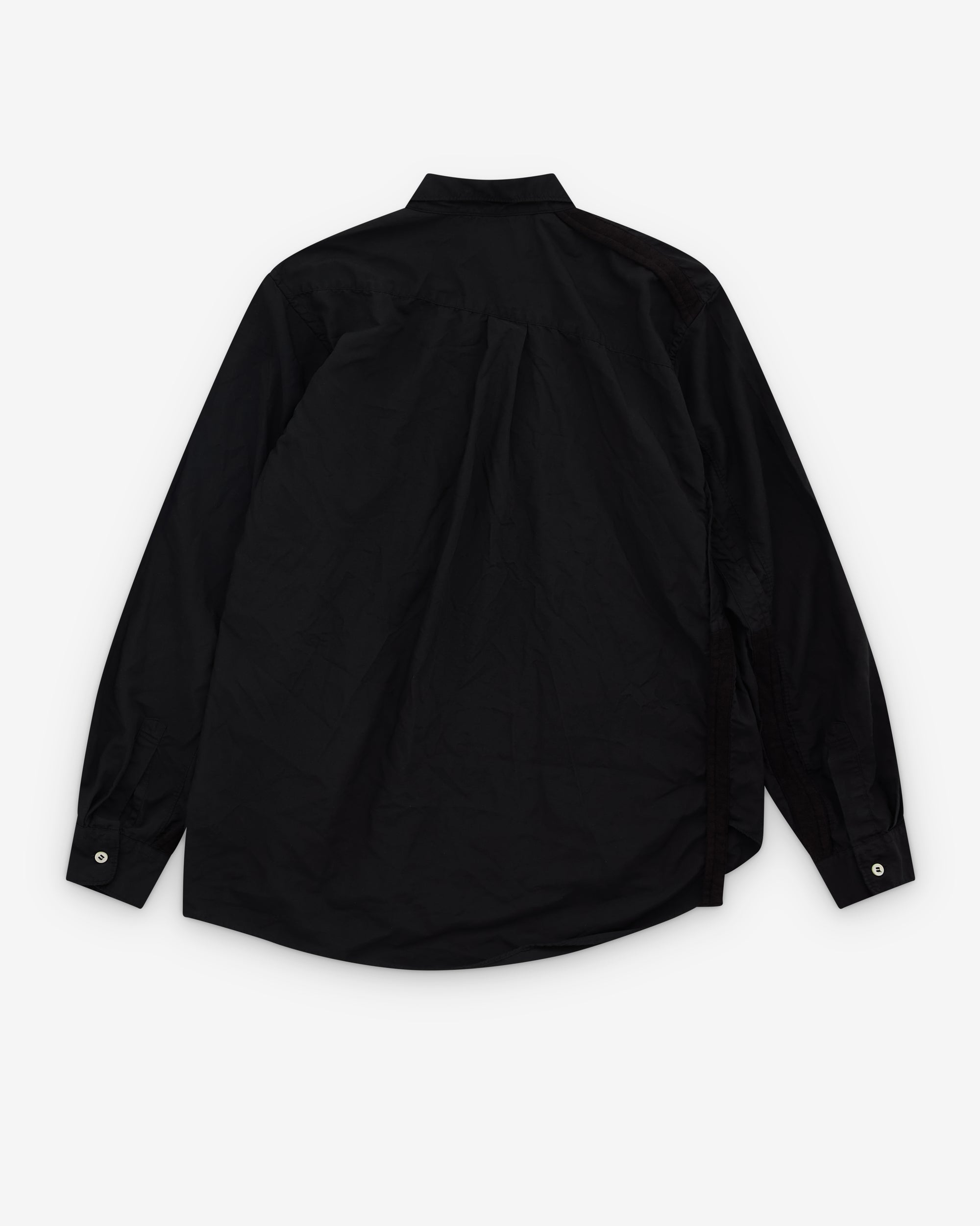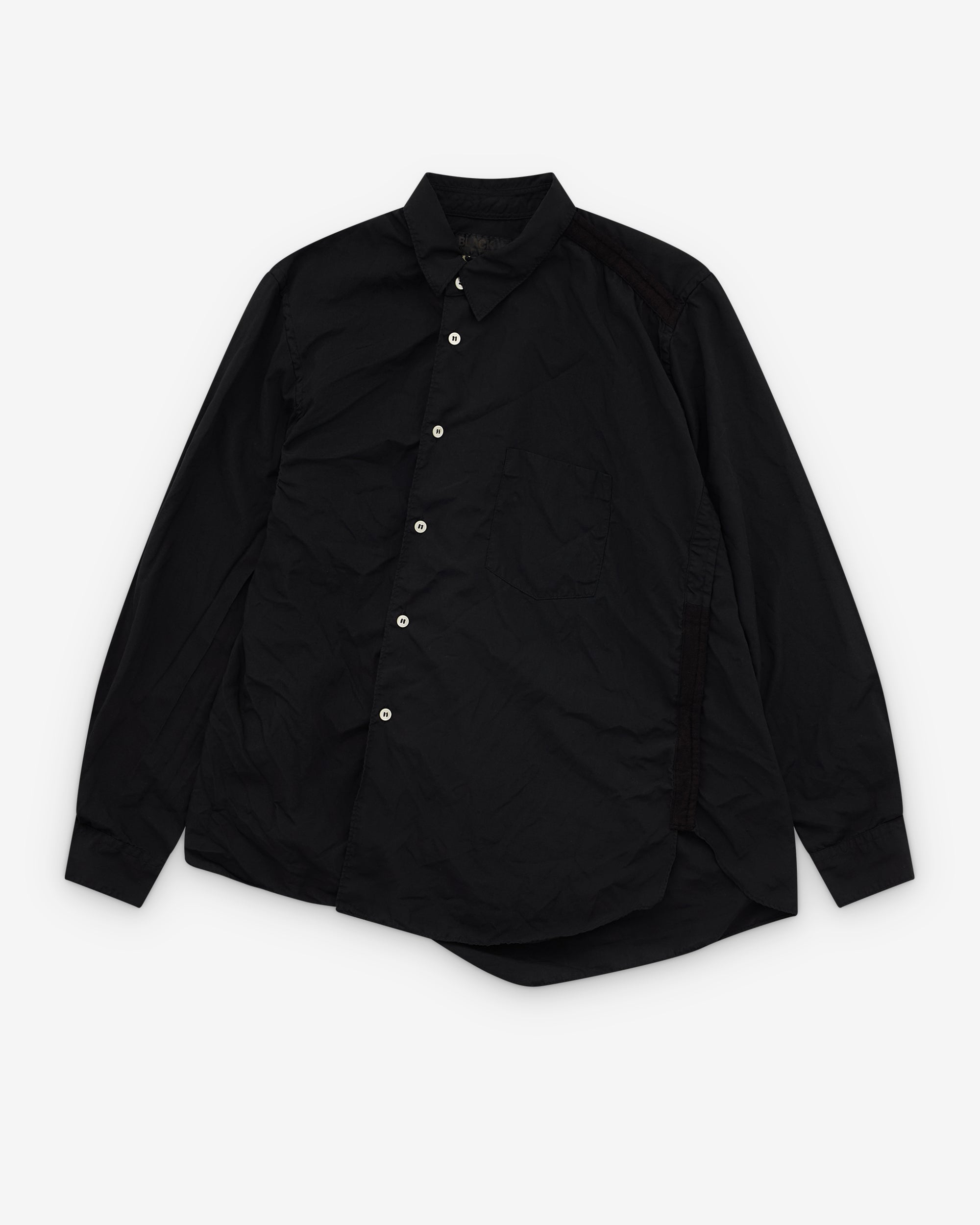 Asymmetric button fasteningPoint collarCurved hemButton cuffs