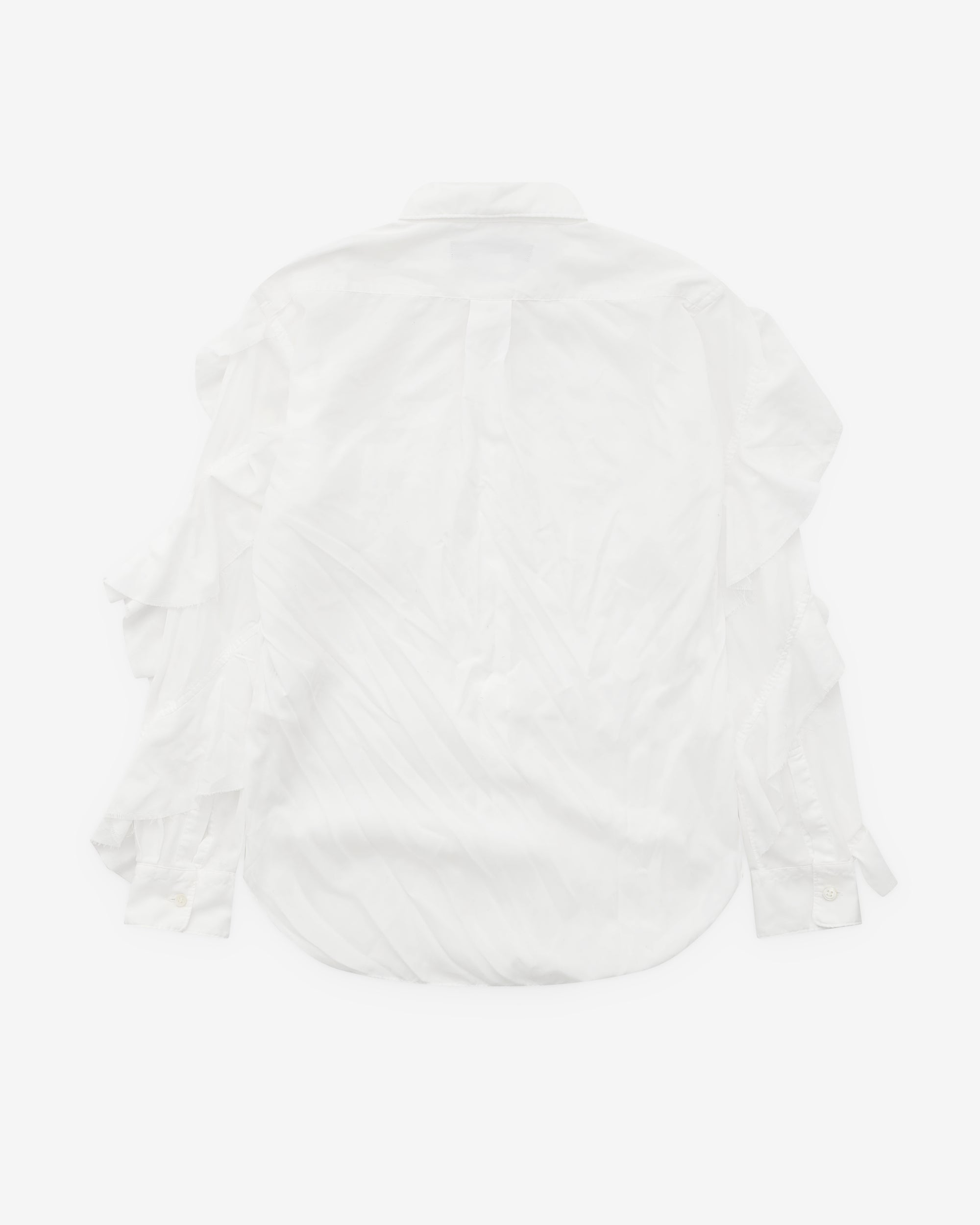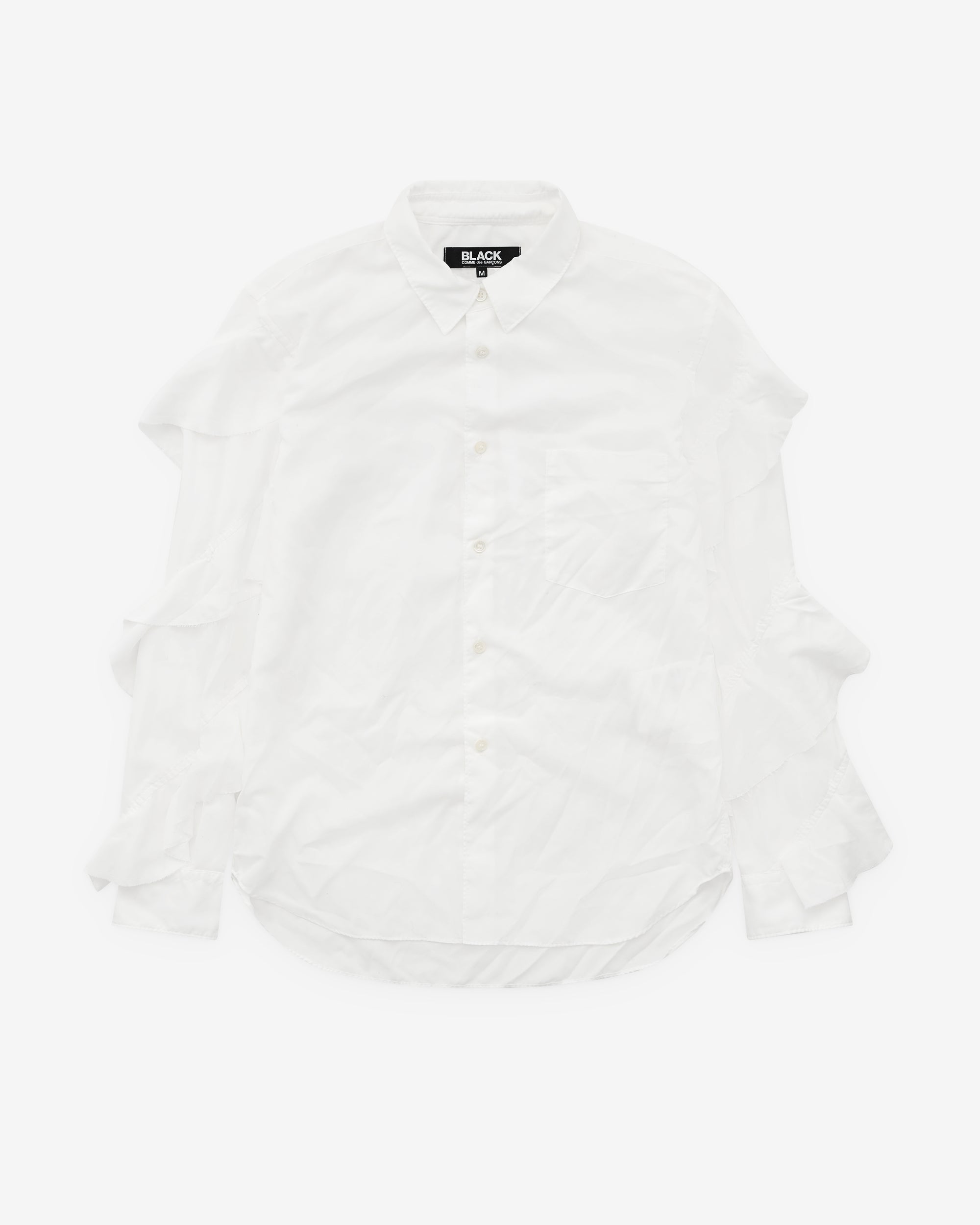 Point collarButton fasteningFrill detail at sleeveCurved hemChest patch pocket