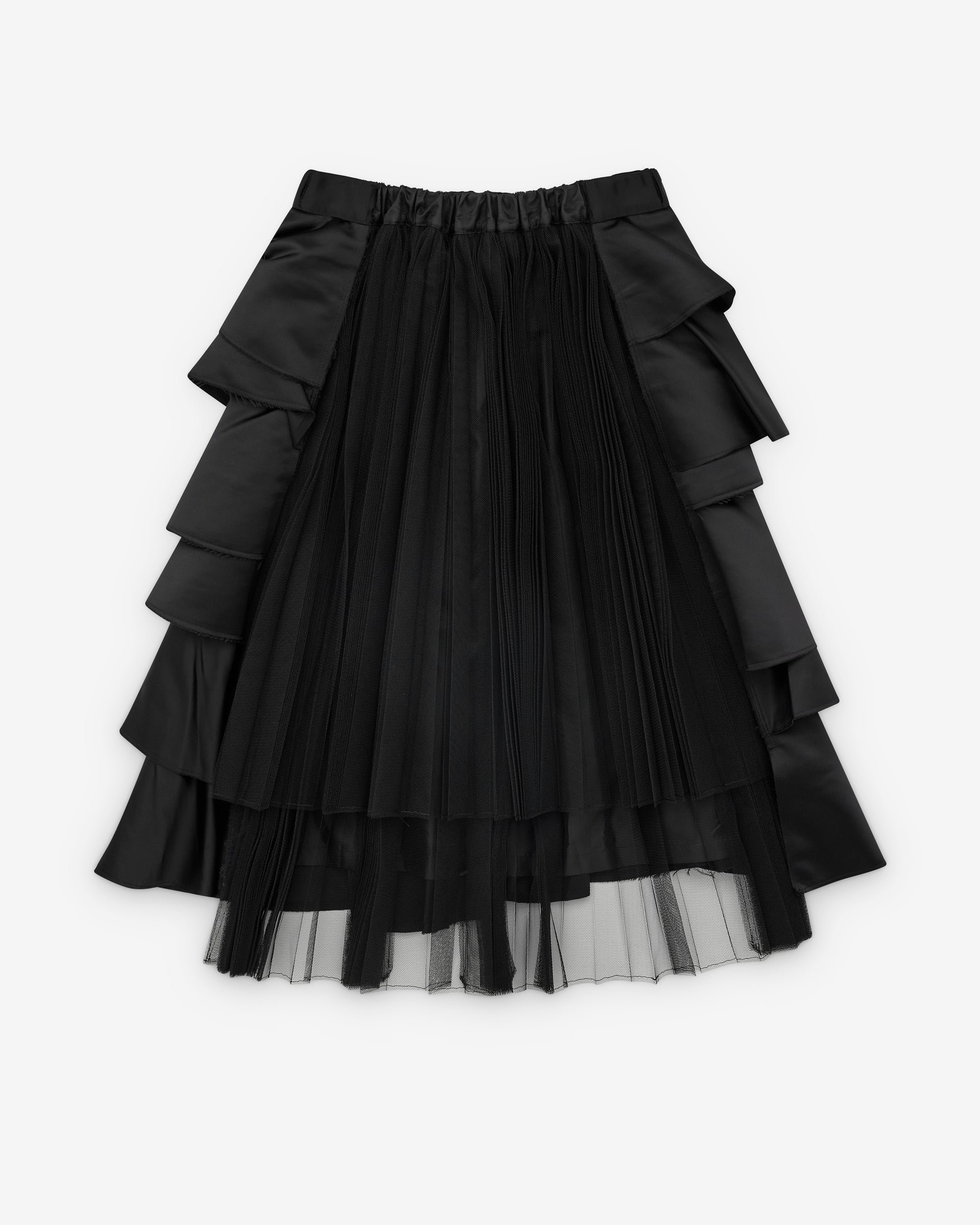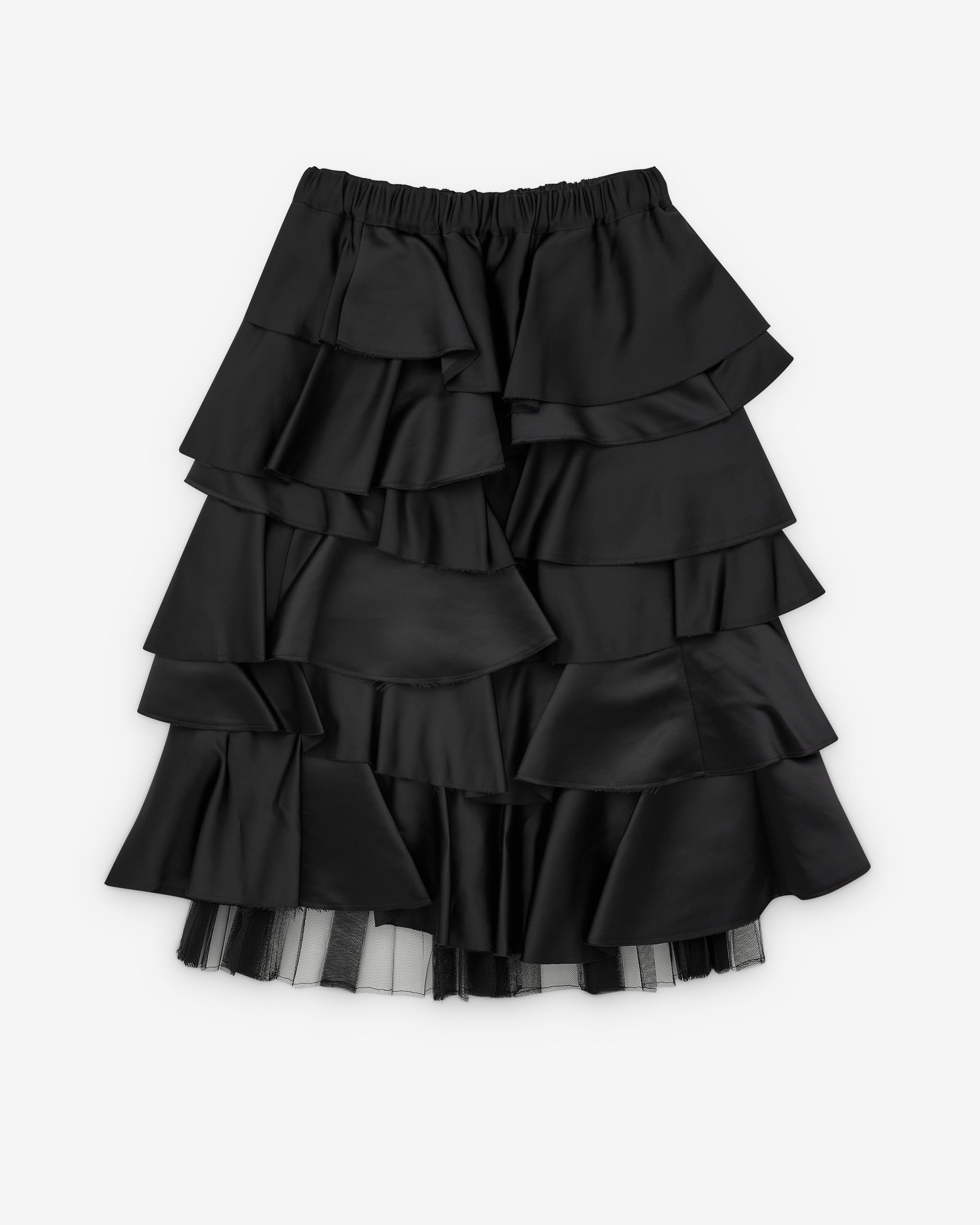 Elasticated waistTiered, frill constructionMid-length Exposed tulle underlay100% PolyesterMade in Japan