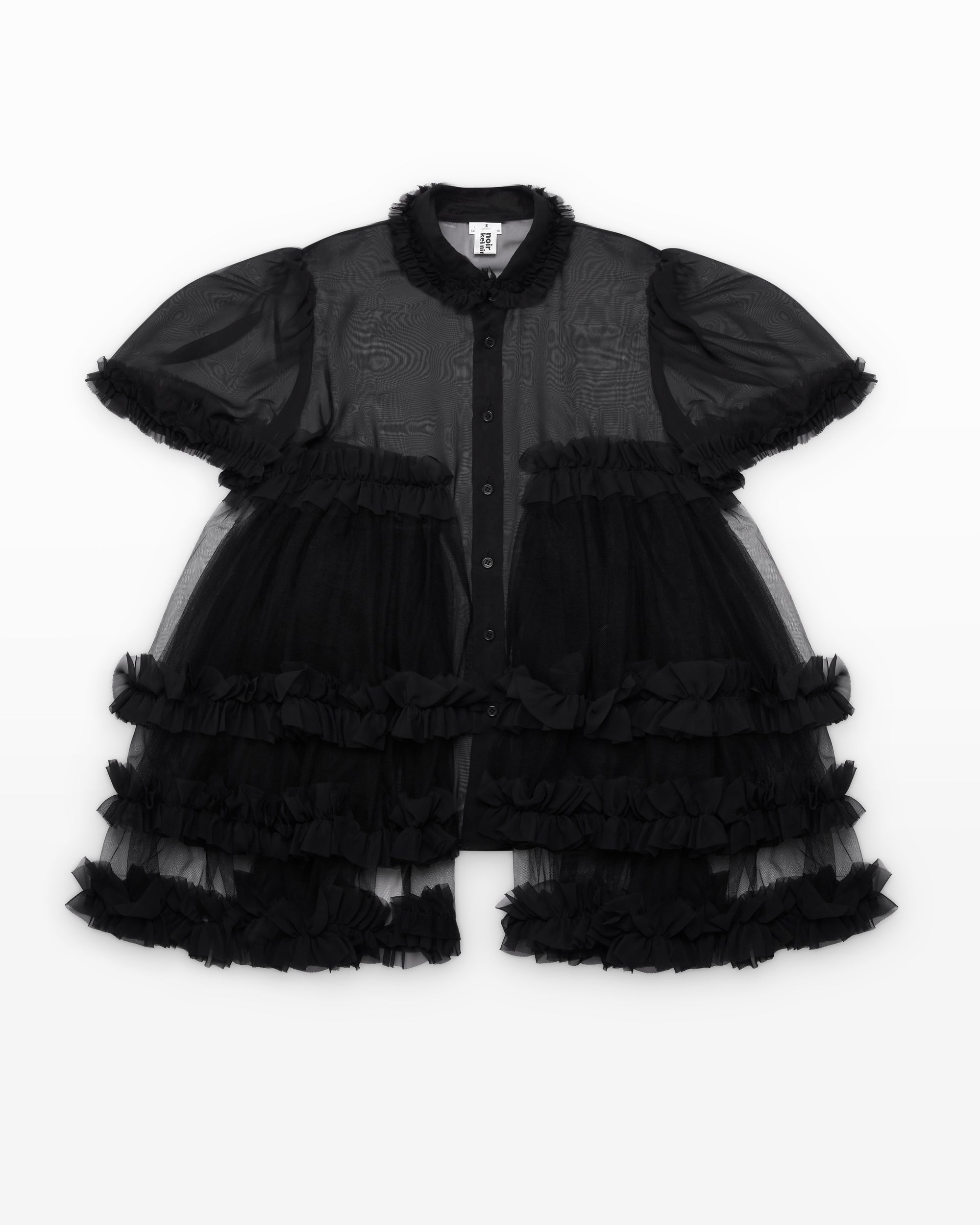 Georgette fabricTiered ruffle tulle Classic collarShort sleevesFront button closure