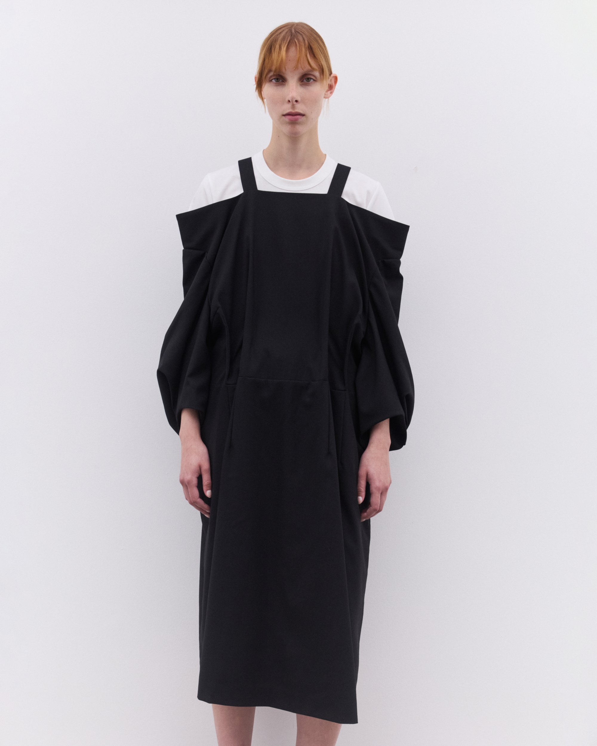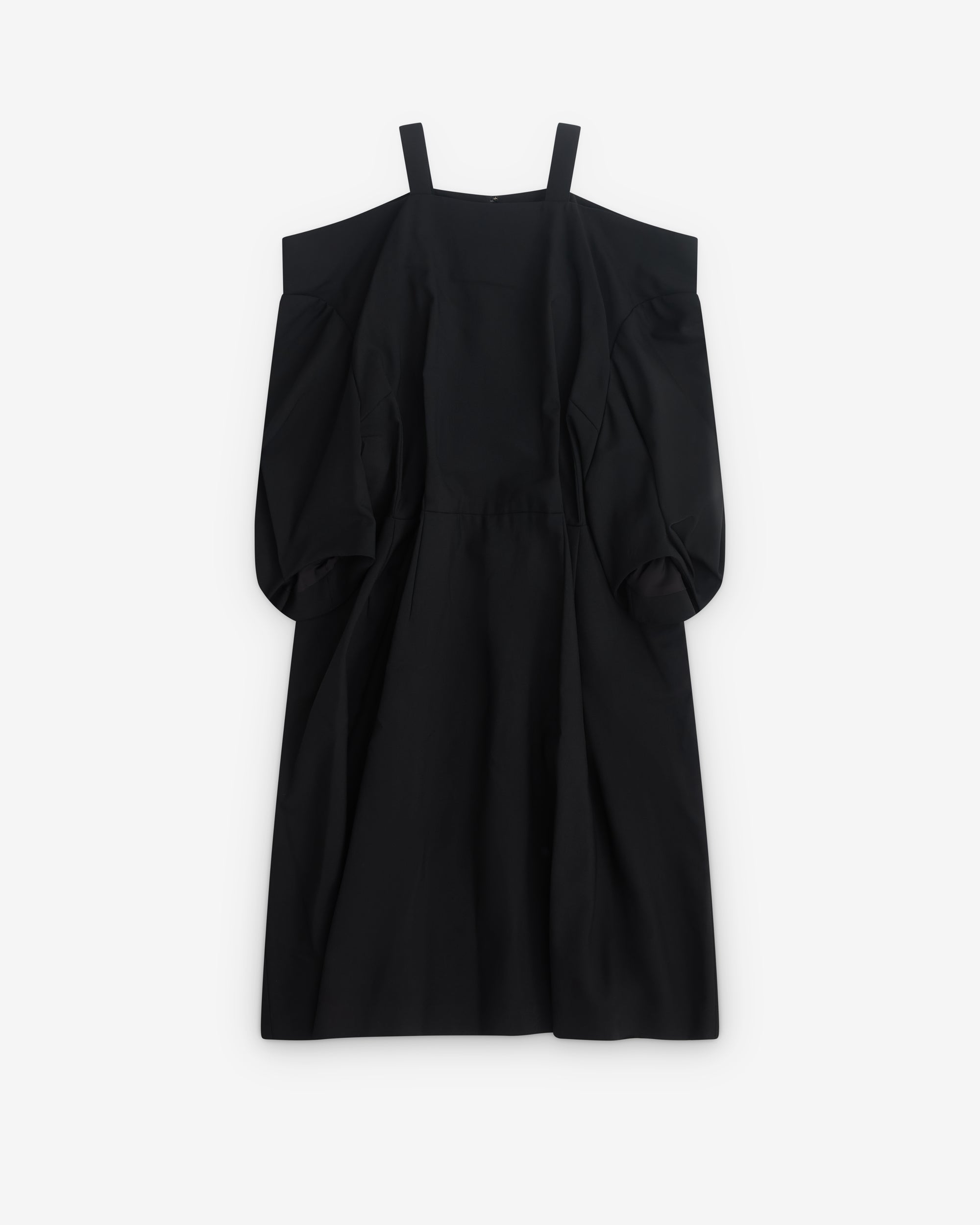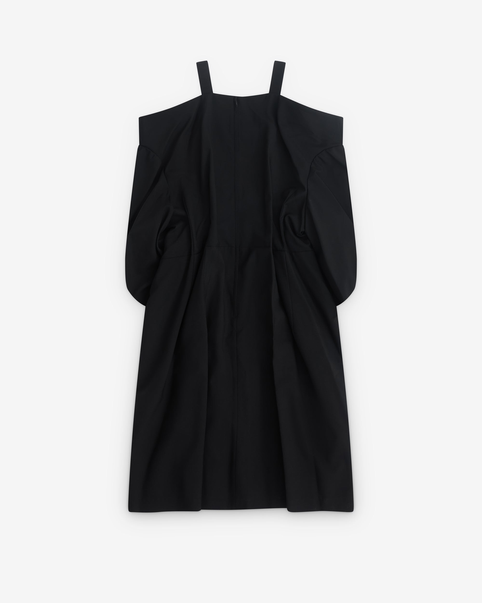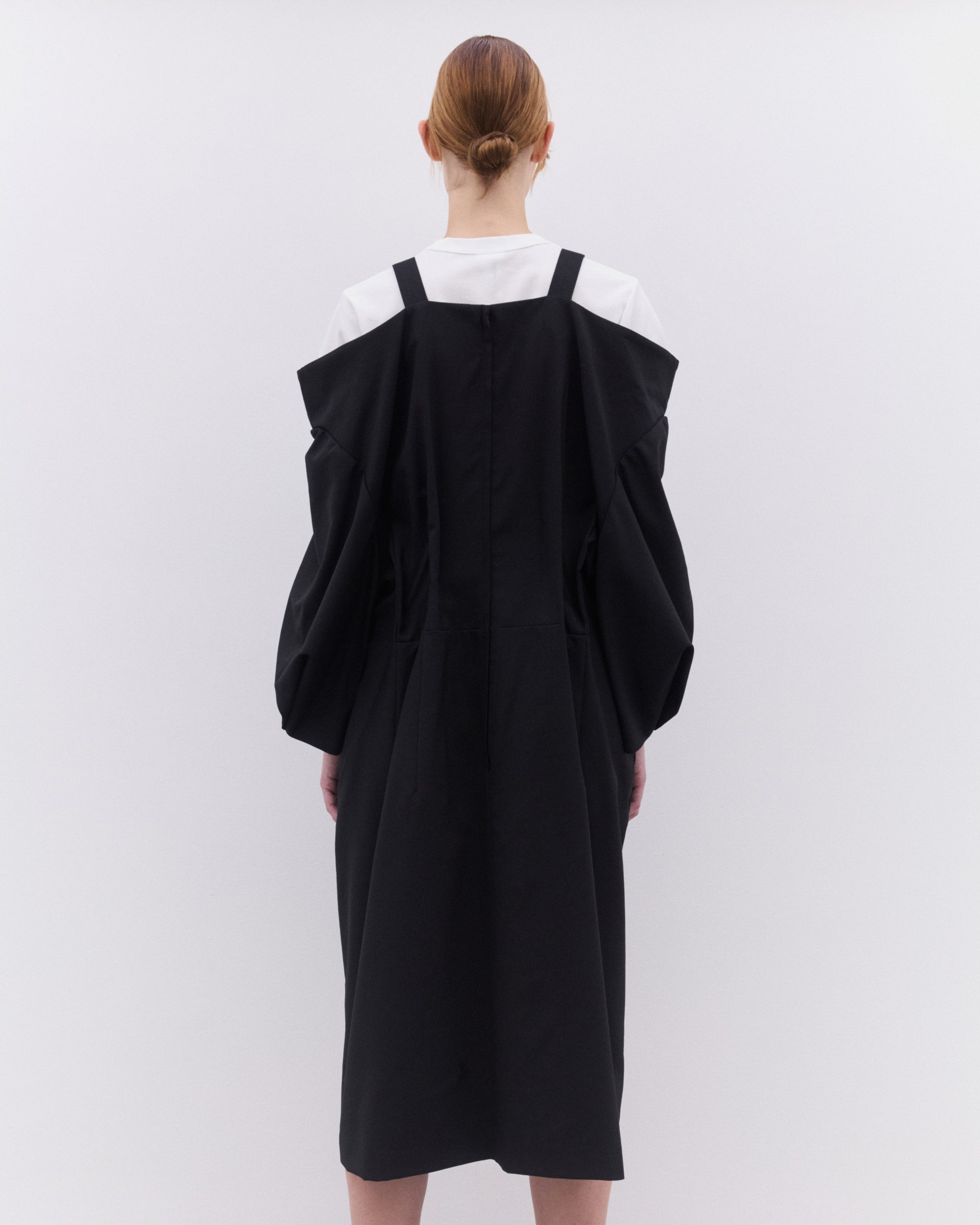 Off shoulder puff sleevesRear zip fasteningMid lengthA-line silhouette