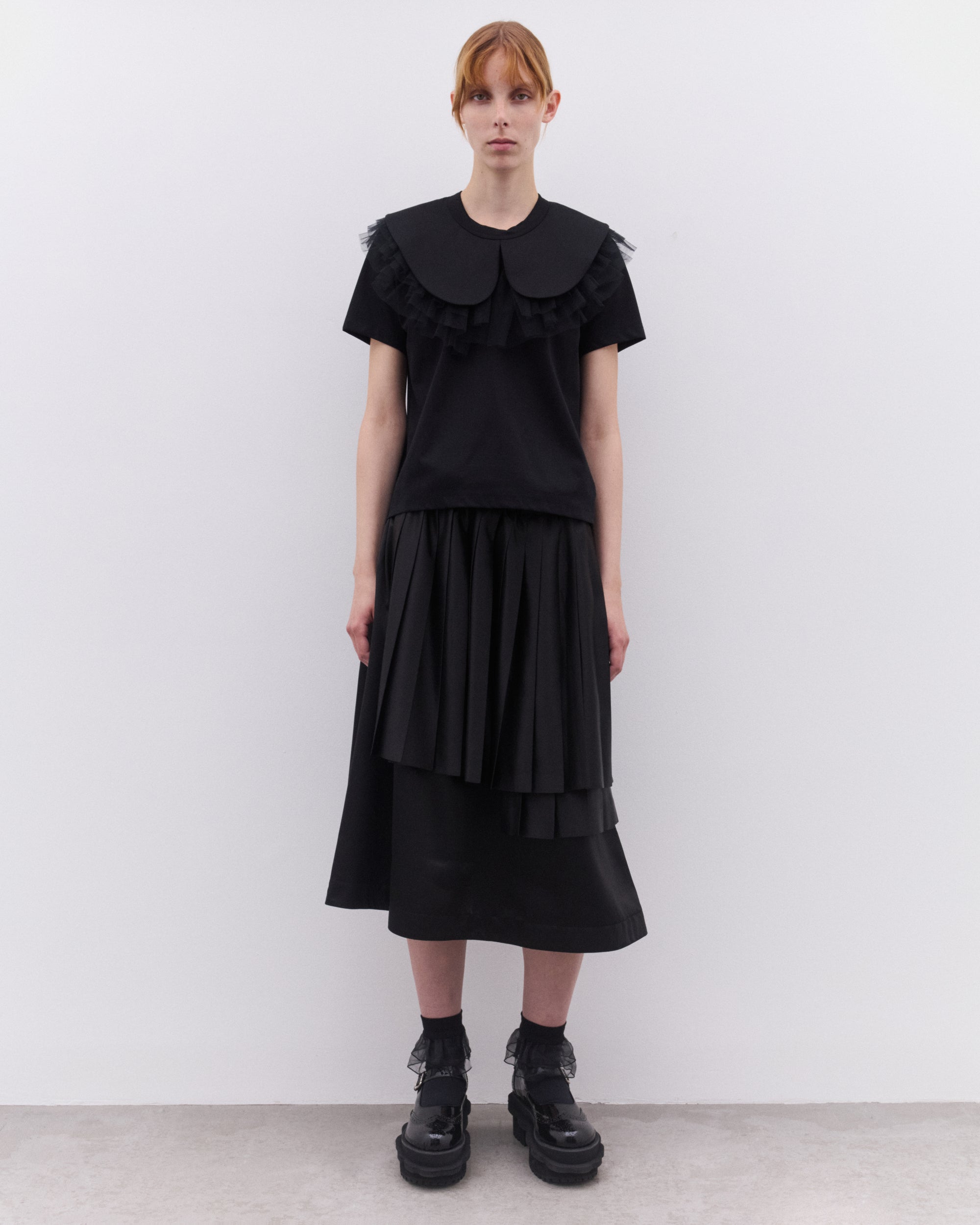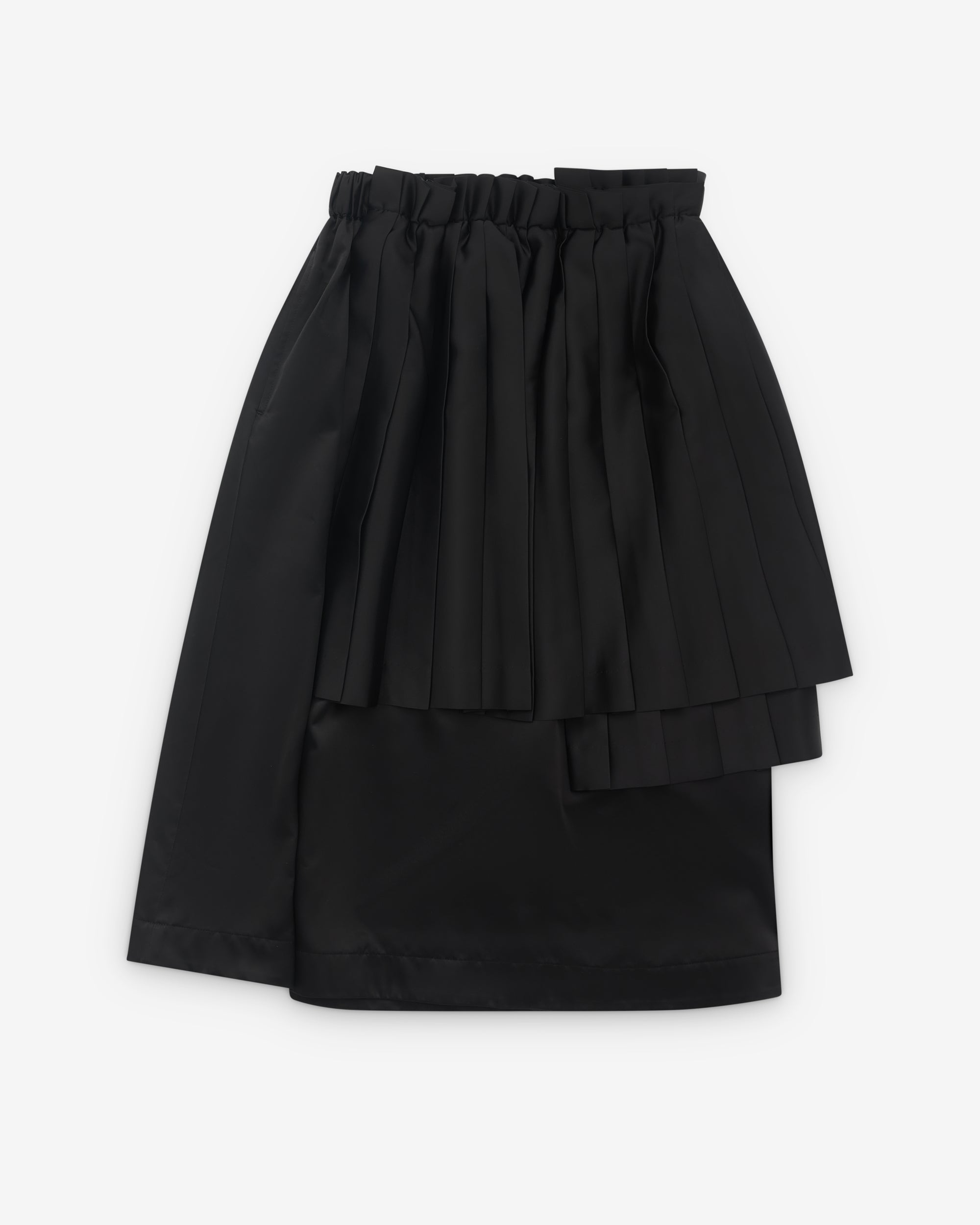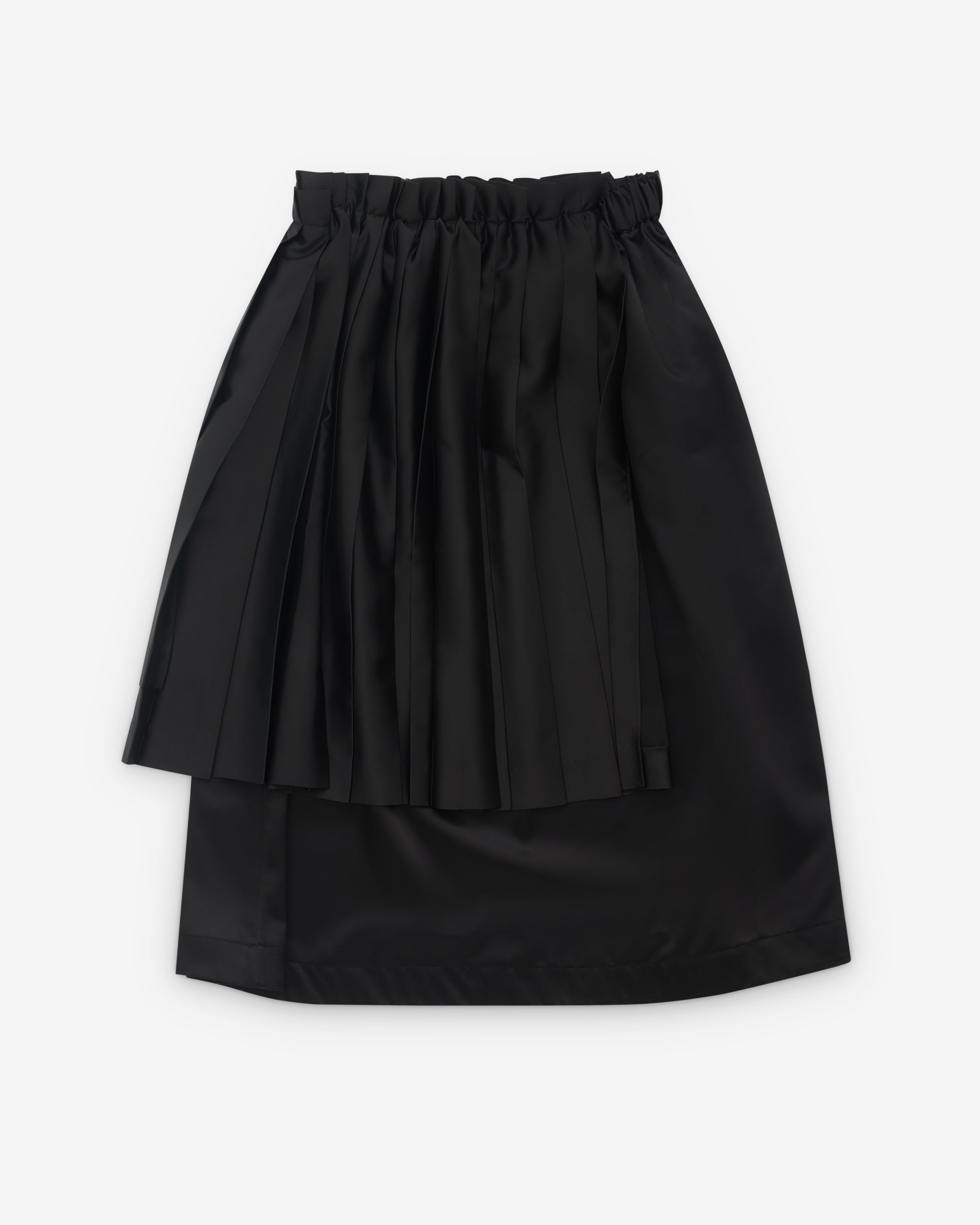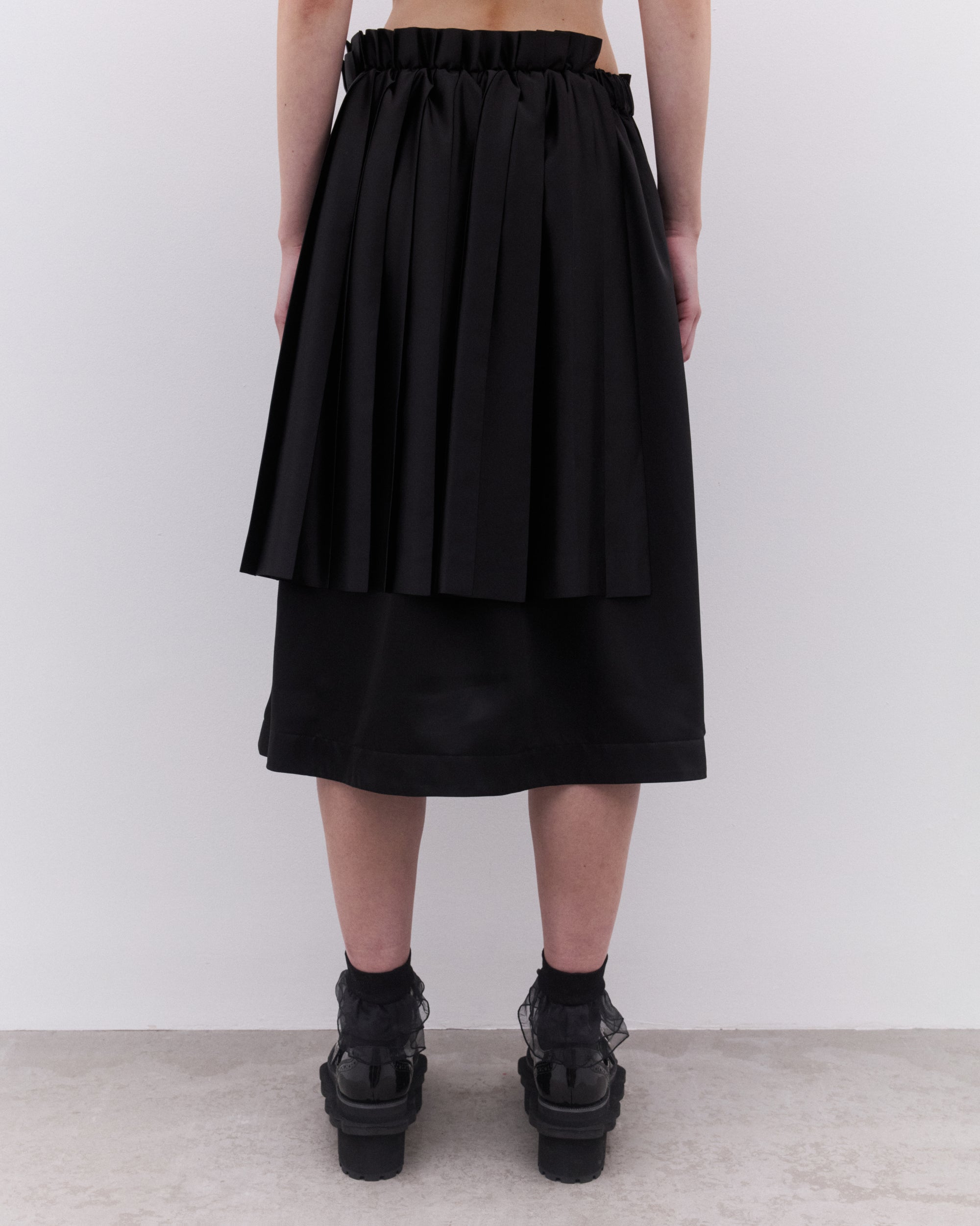 Elasticated, gathered waistPleated panelMid-lengthSide seam pockets
