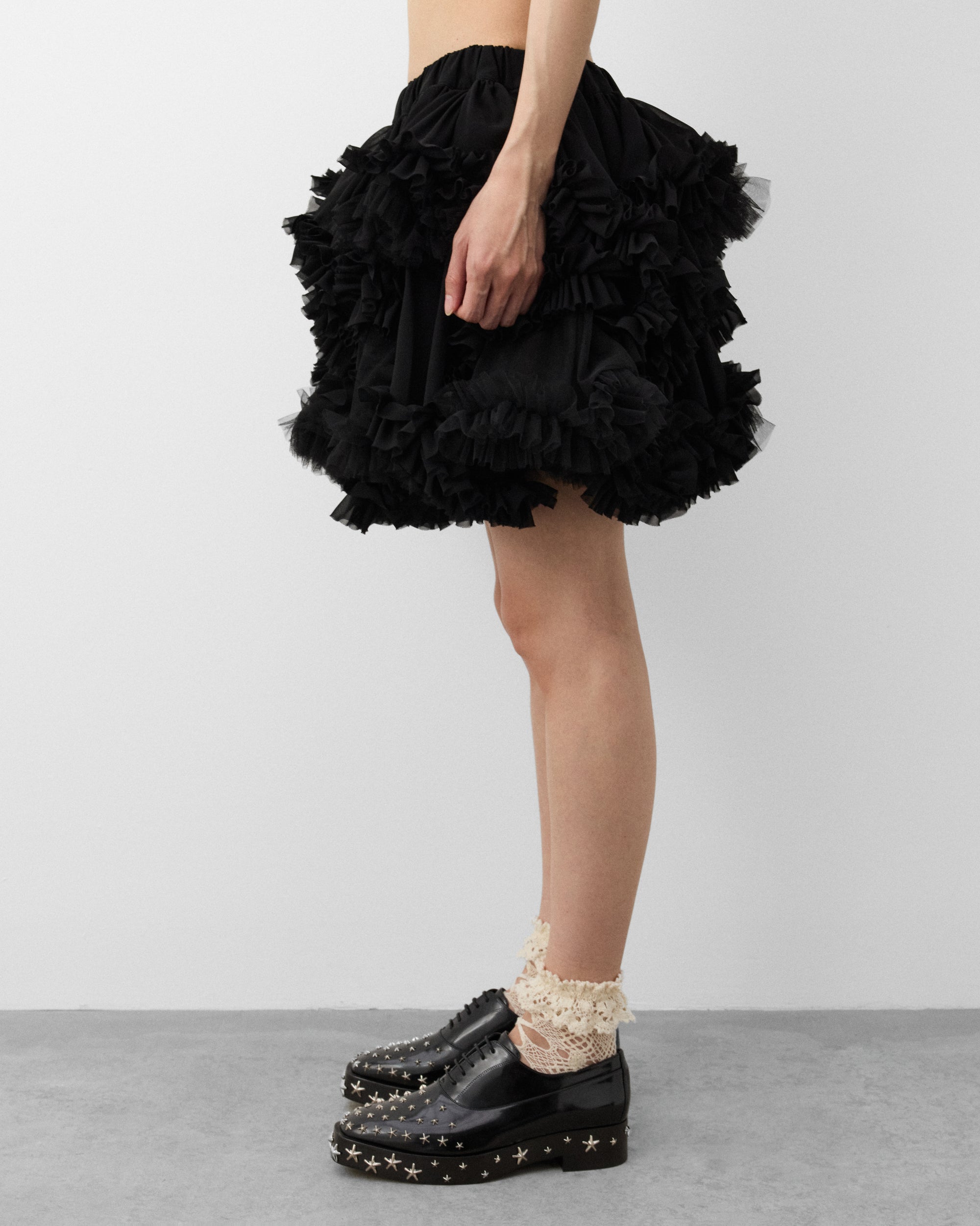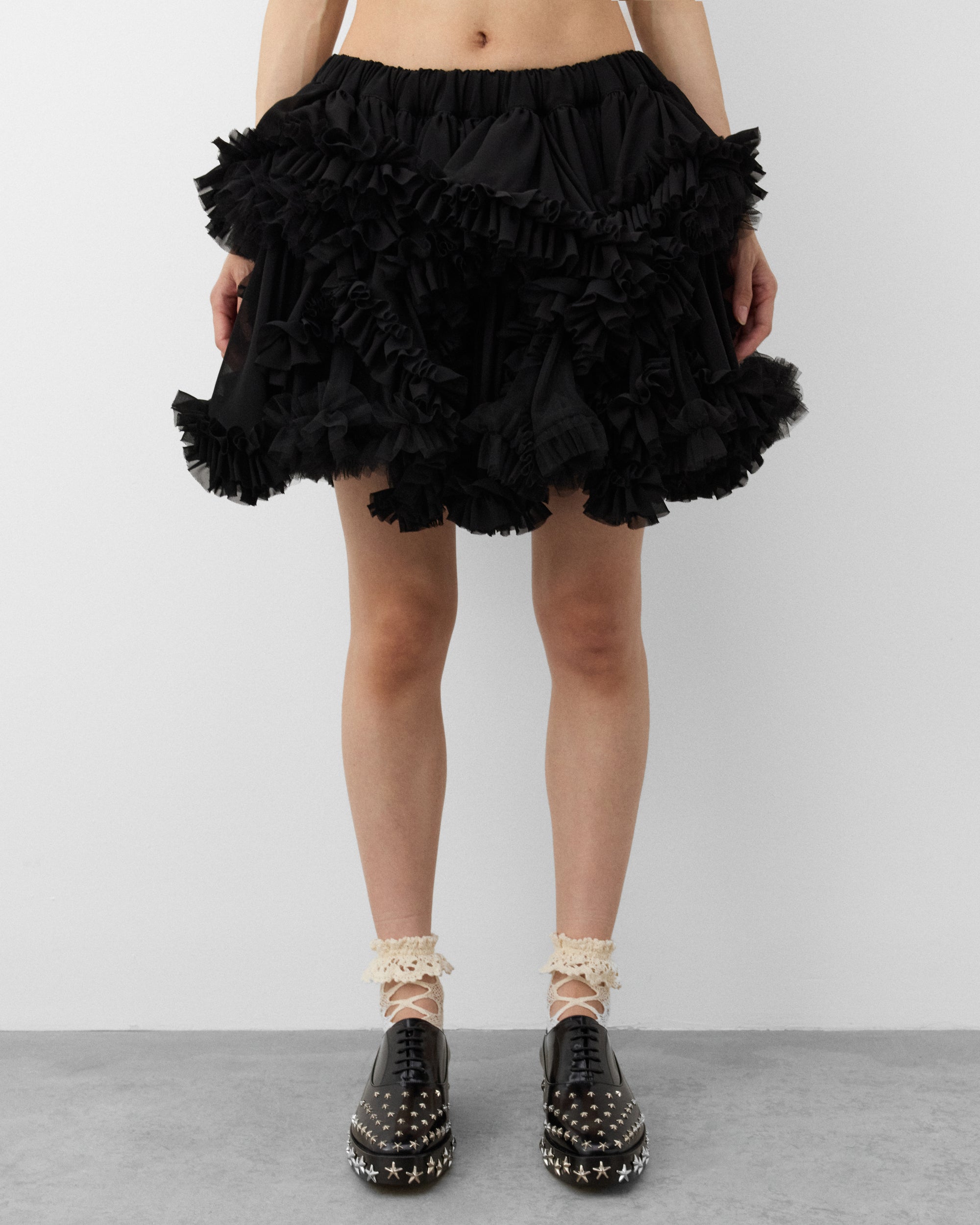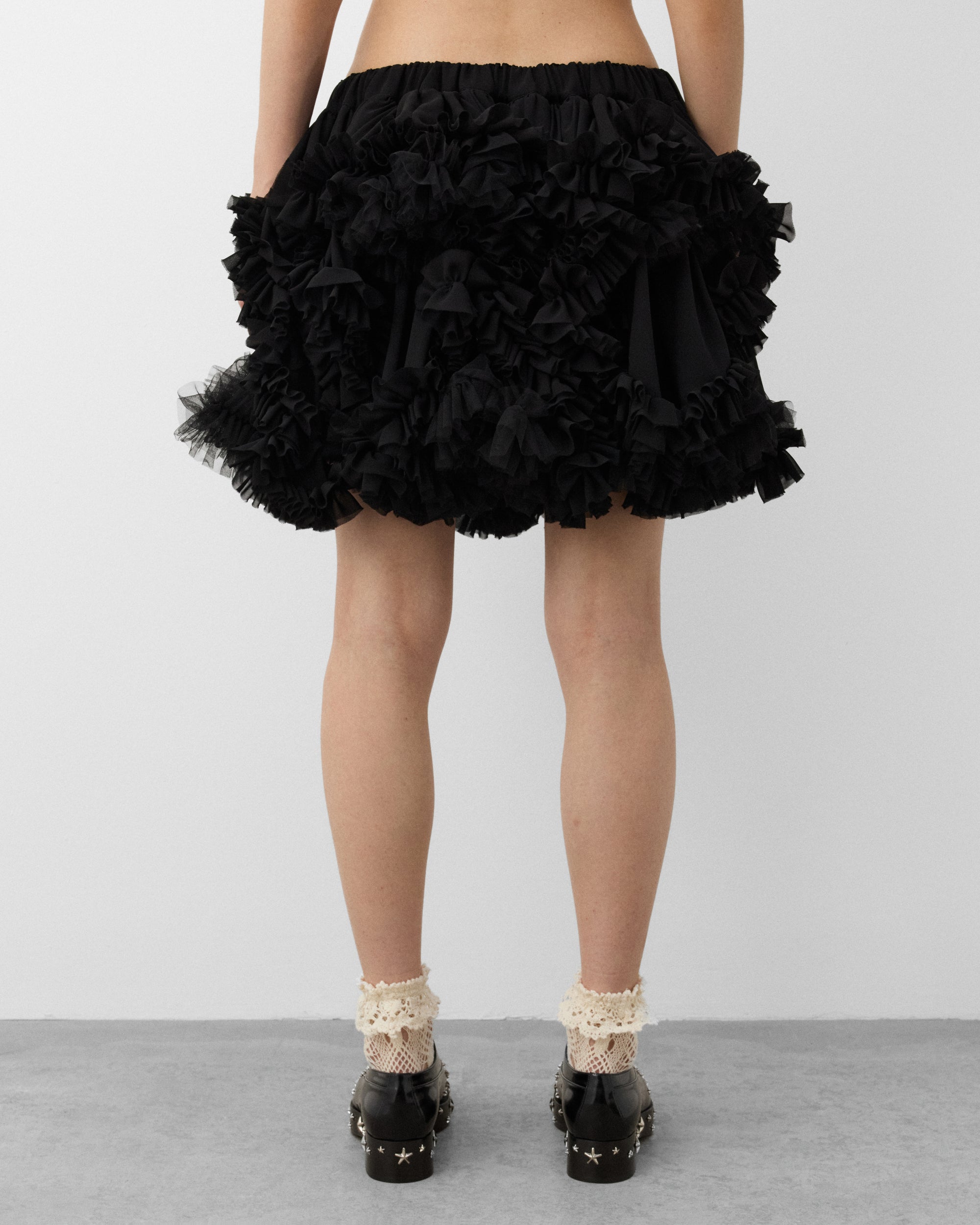 Elasticated waist bandMini skirt lengthTiered tulle and ruffle construction Drawstring at waistInternal netting