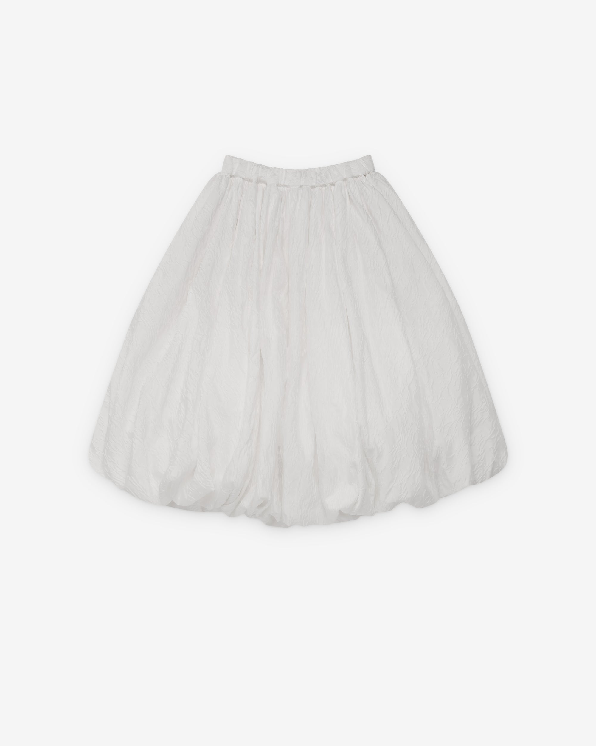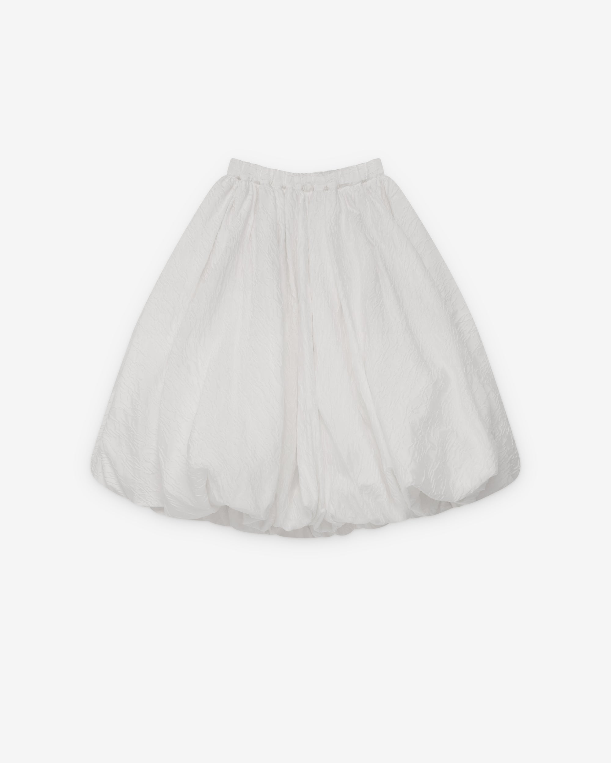 Brocade fabricElasticated waist bandBubble hemA-line cutFront pocketBelow knee lengthInternal lining