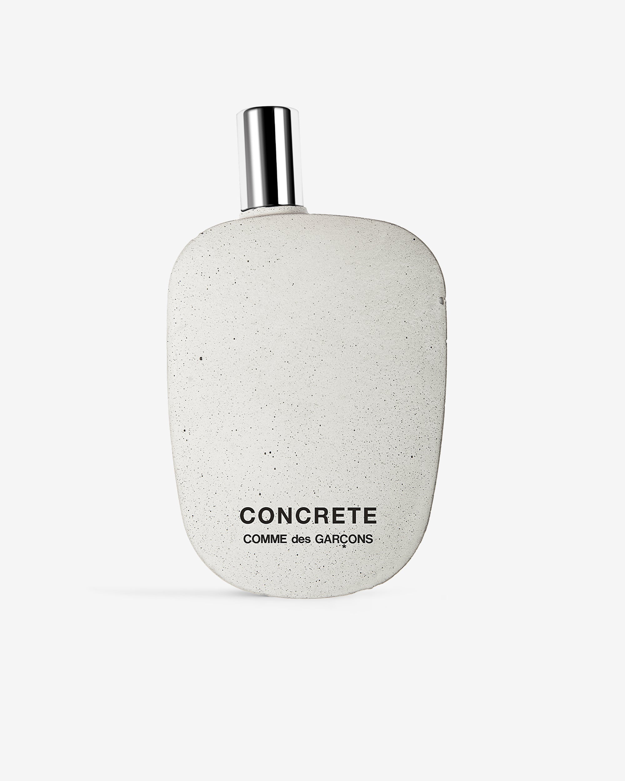 The juice is contained within a shell of concrete and glass, hand-finished and held within a pocket of bubble-wrap. No longer does concrete create hegemony: here, each vessel is uniquely formed. Irregularity is celebrated. Abstracted from its monolithic framework, this material has a startling impact; it commands fresh interpretation, invites new impressions. An investigation into subjectivity and context, here archetypes of beauty and conventions of luxury are wholly dissembled by Comme des Garçons. An exceptional scent created from fragments of familiarity, CONCRETE is Comme des Garçons disruptive approach to design distilled into scent.