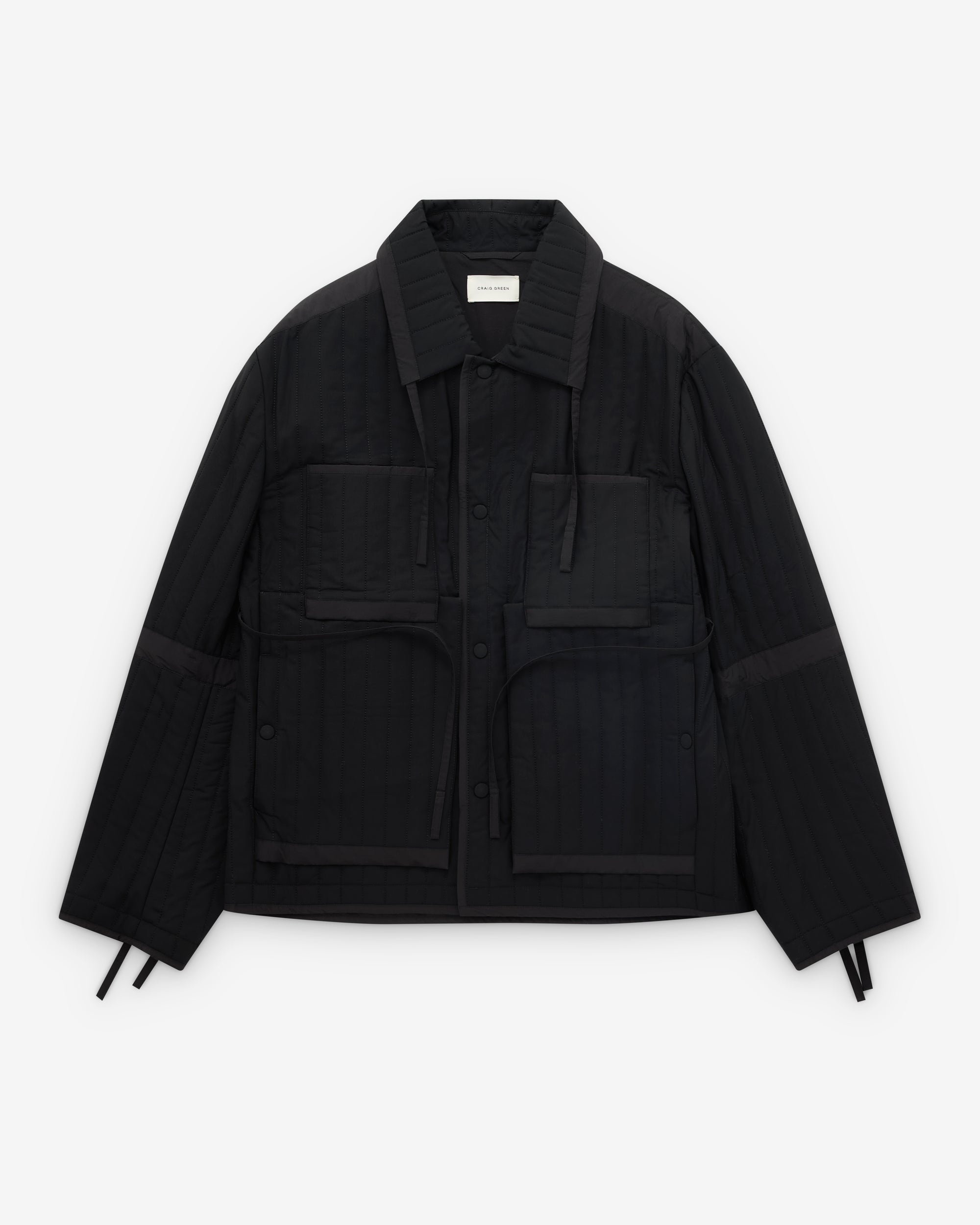 Classic collarFront button closureTwo chest pocketsTwo patch pocketsSelf tie details all over