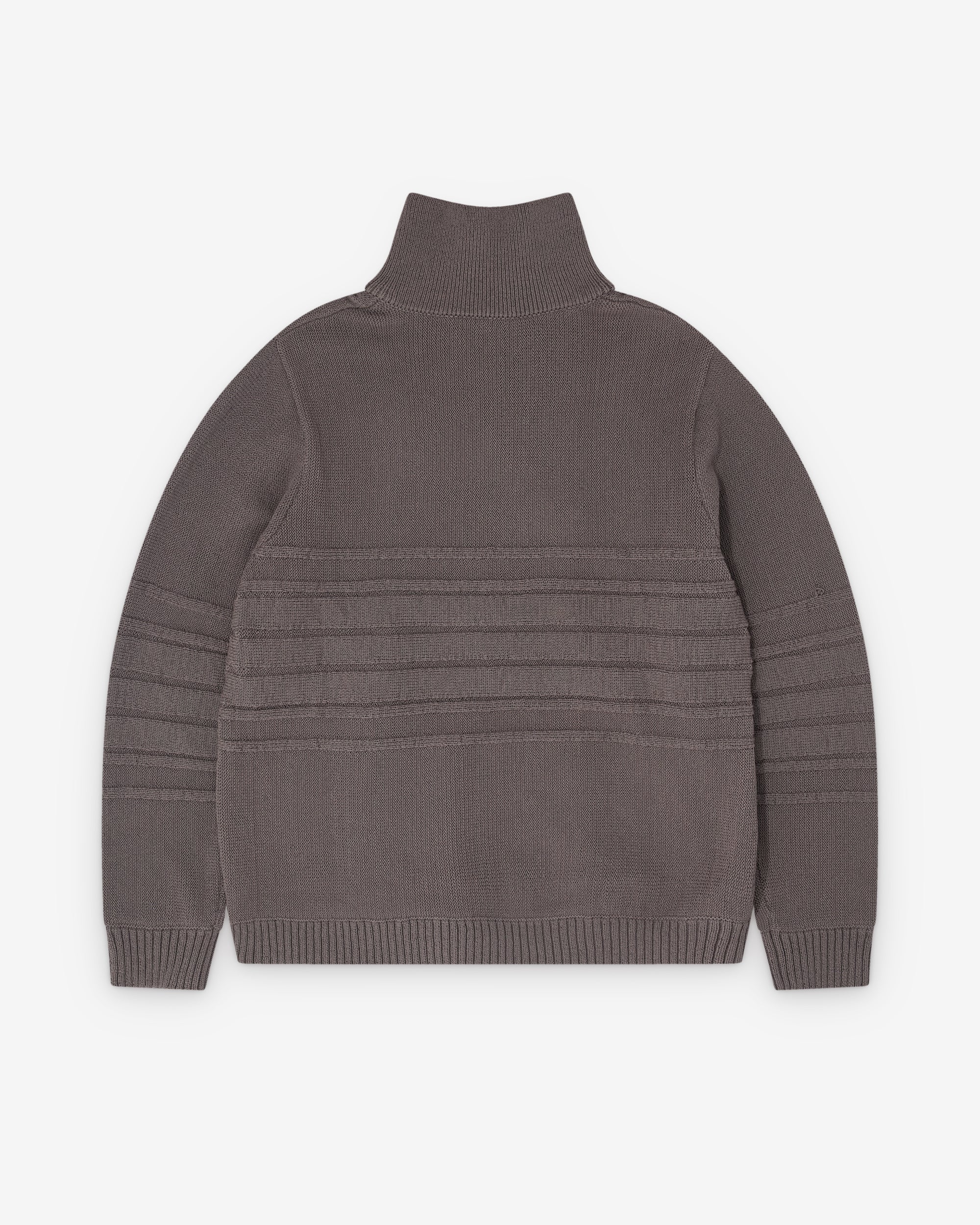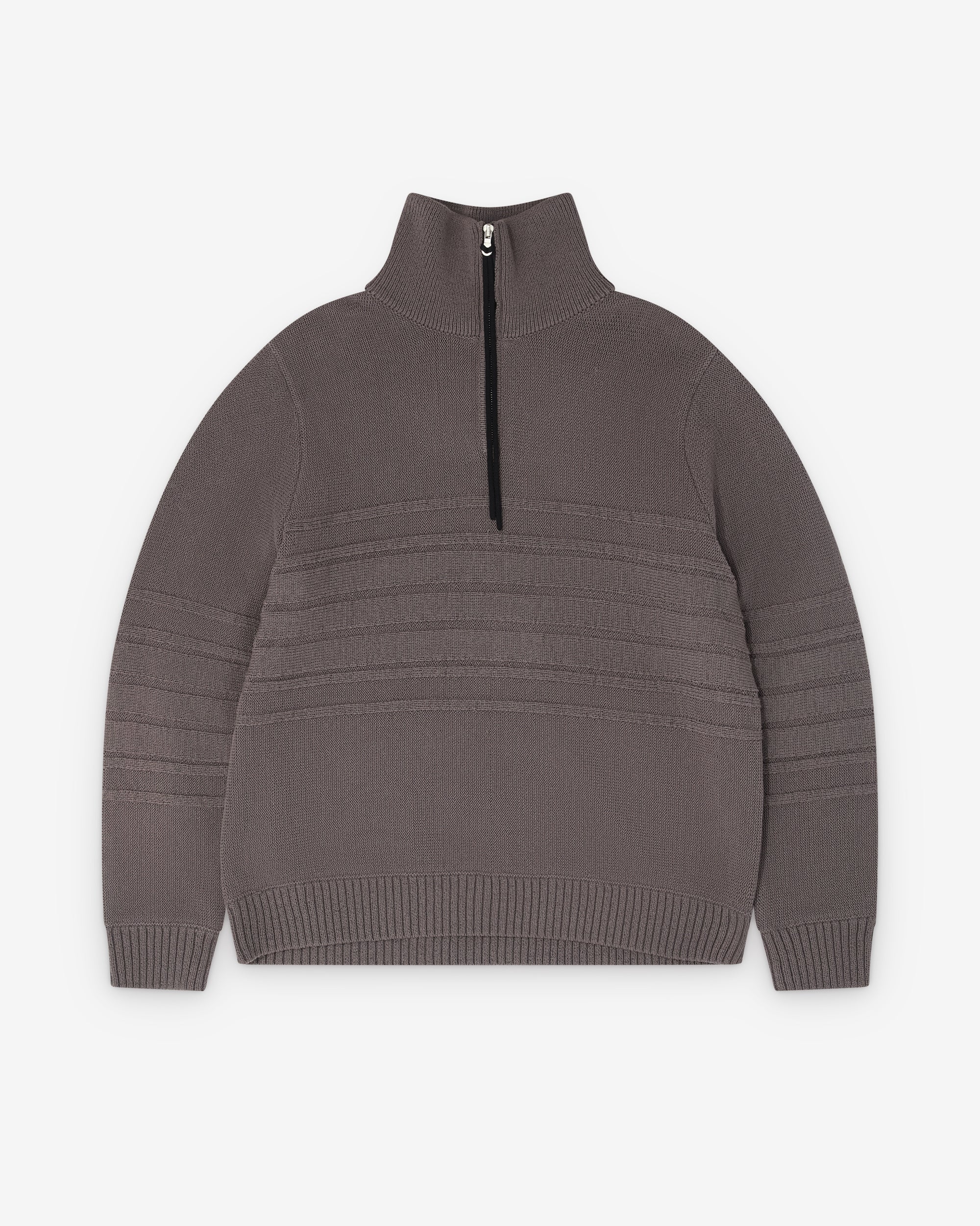 Quarter-zip closure on frontRibbed adjustable polo collarRibbed sleeve cuffs and hemTonal textured stripe detailing on front, back, and sleeves