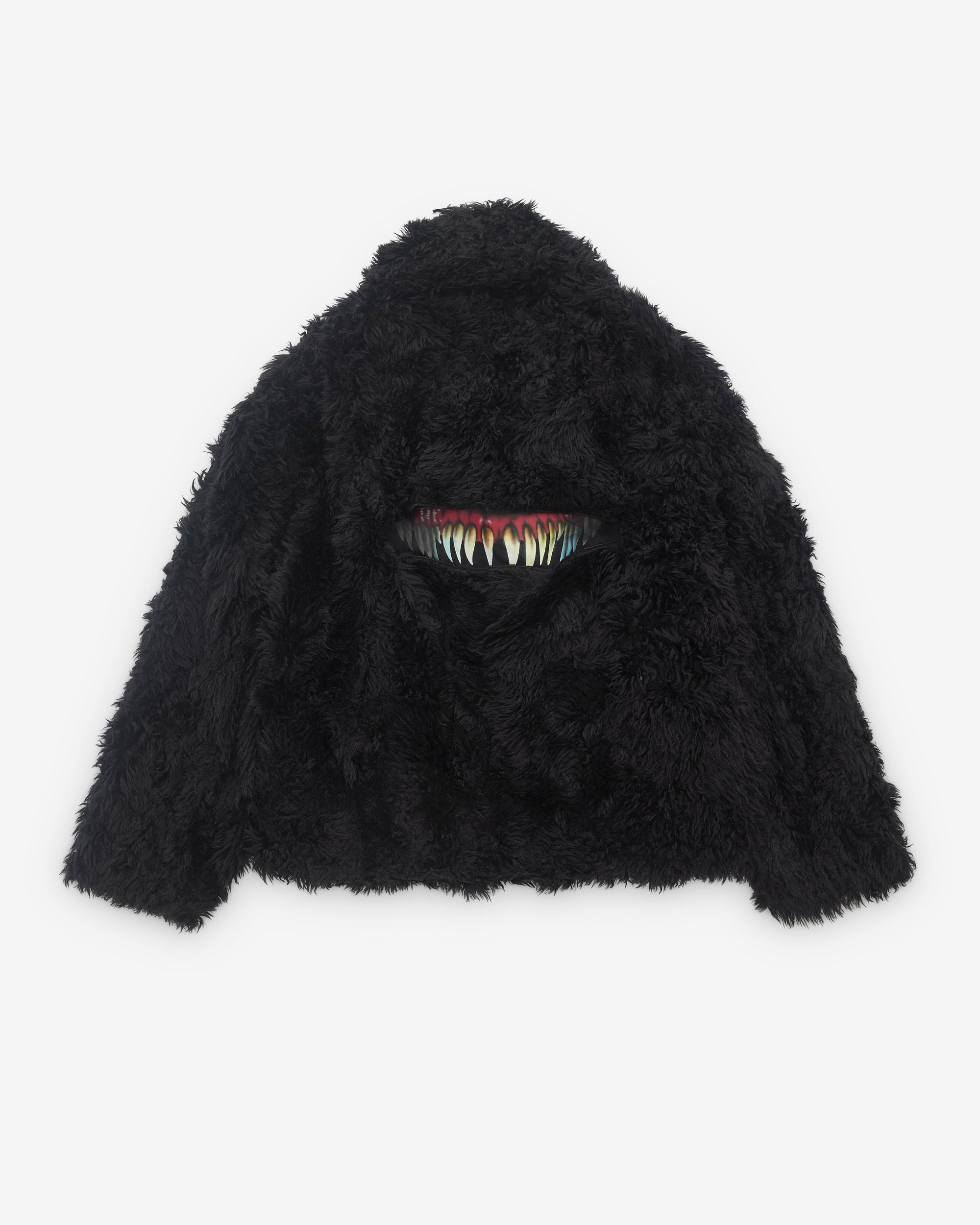 Point collarConcealed fasteningDropped shoulderTeeth graphic at rear