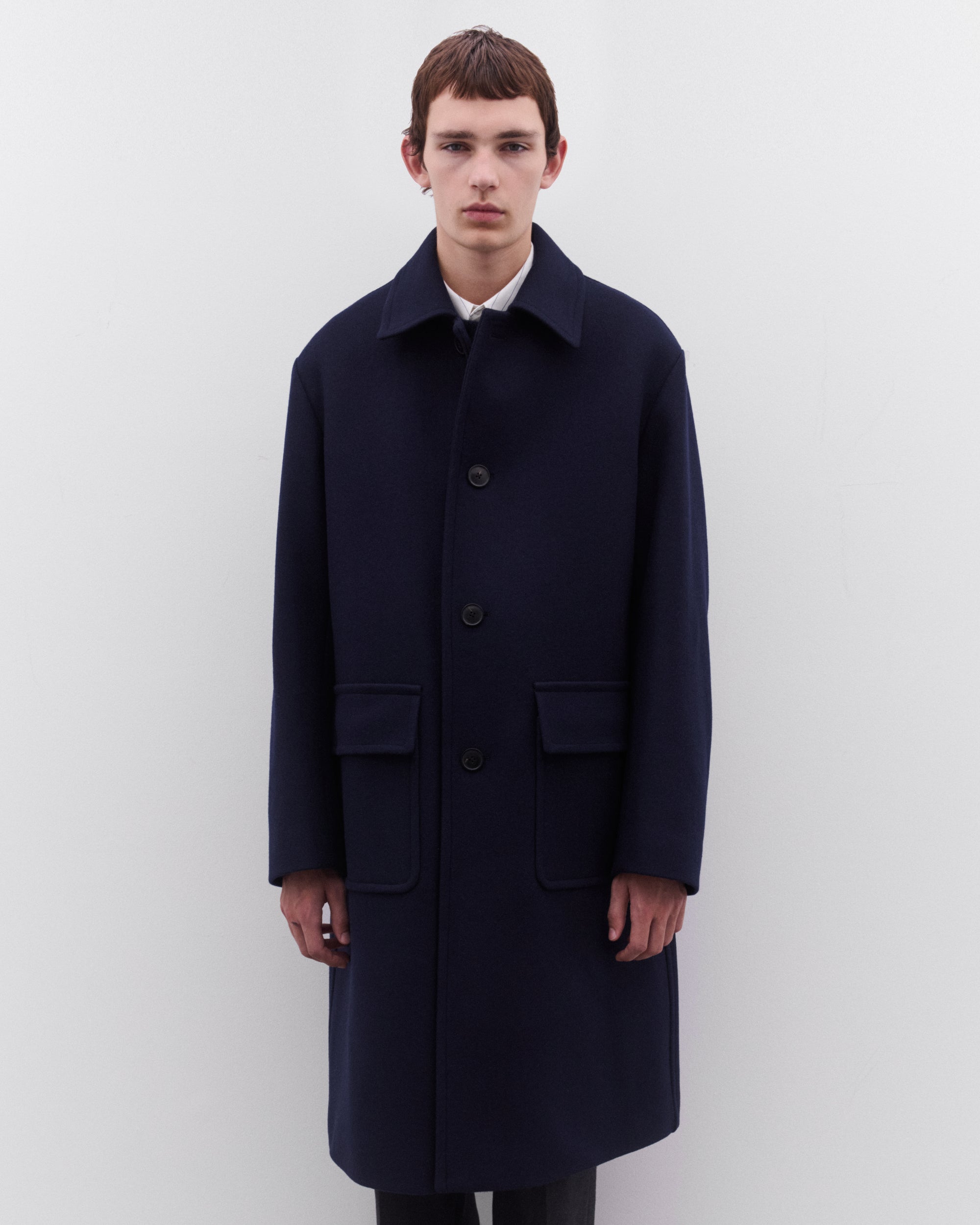 Point collarSingle breastedFlap patch pocketsRaglan sleevesLinedRear central vent