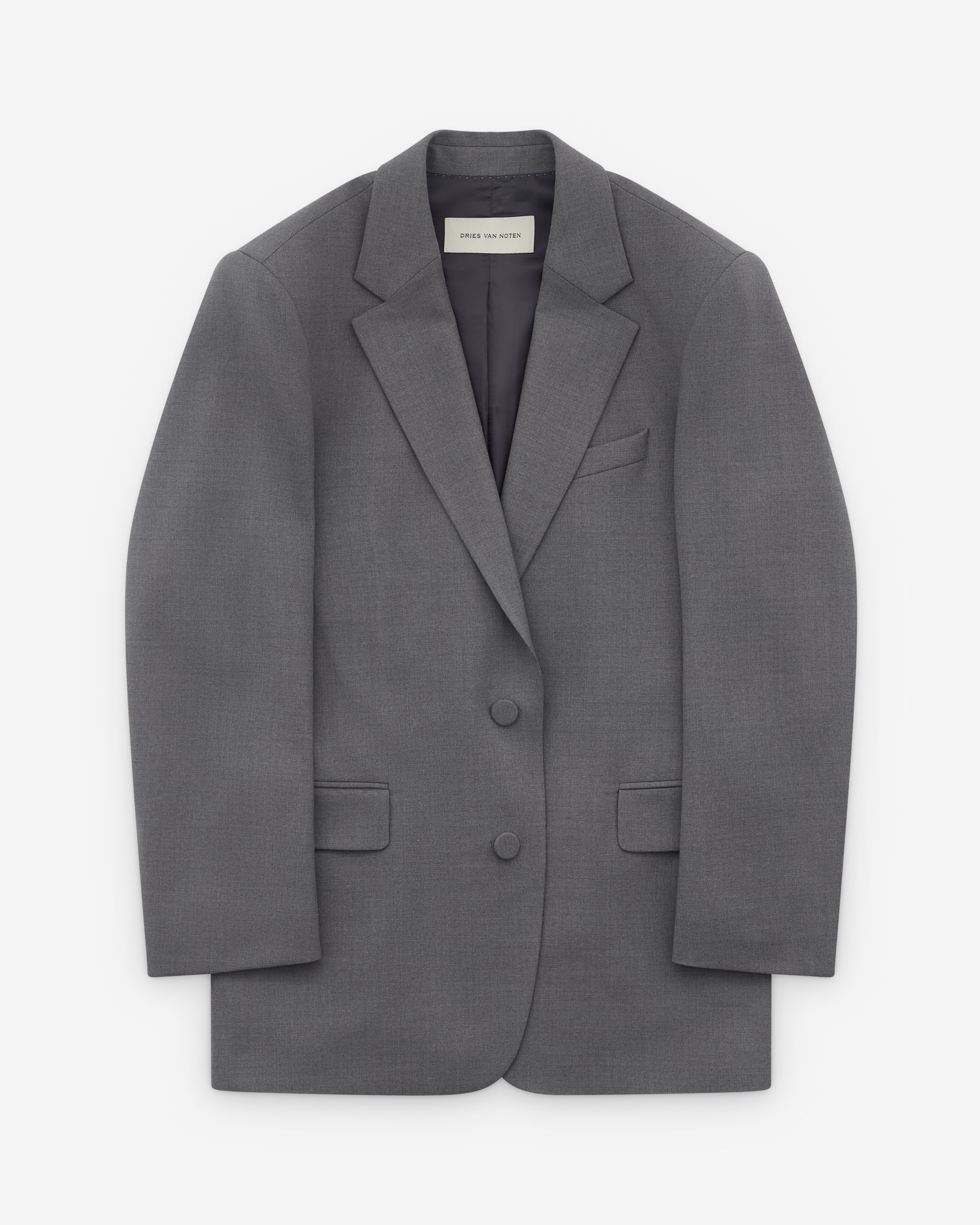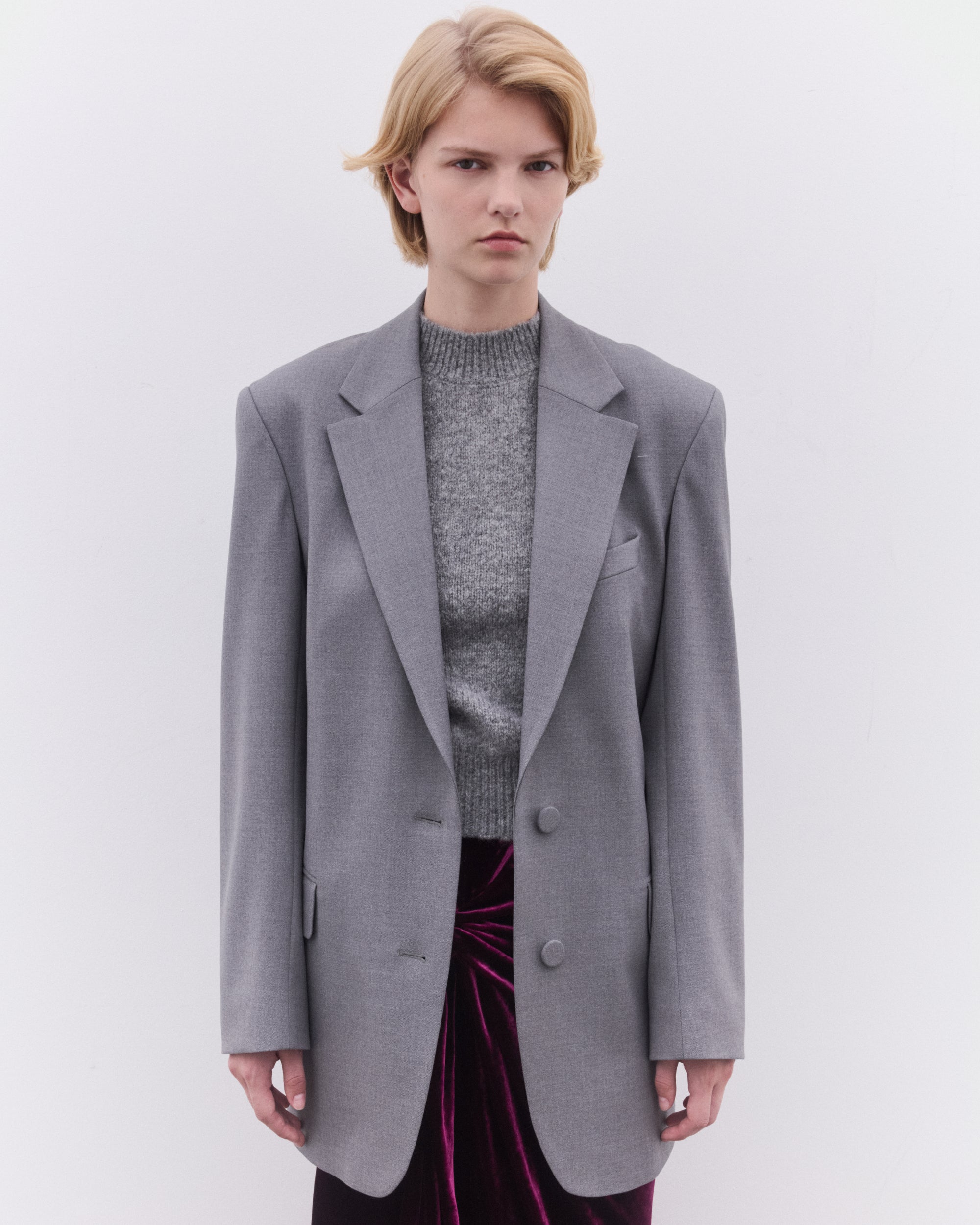 Oversized fitStructured shouldersNotched lapelTwo button closureFront flap pocketsInternal lining