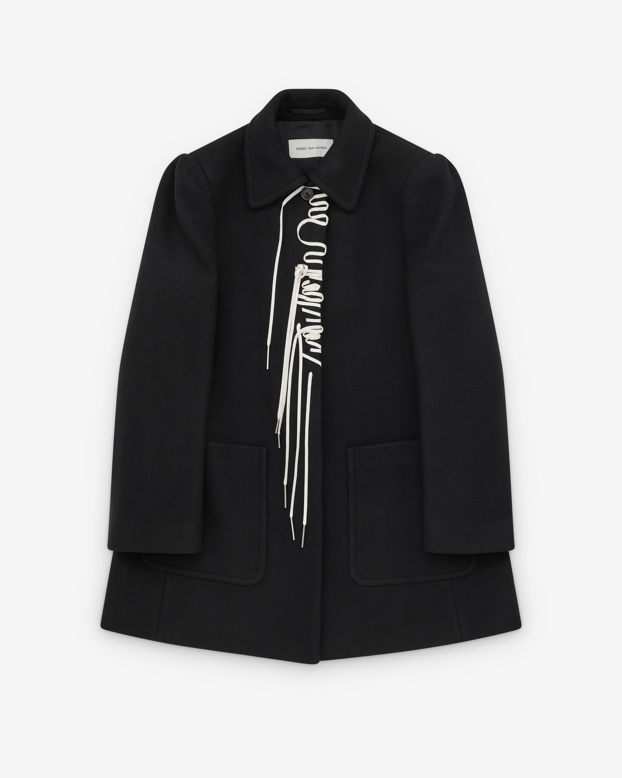 Whip stitch embellishmentLoose fitPadded shouldersFront patch pocketsButtoned cuffsInternal lining Nipped waistHidden front button closure