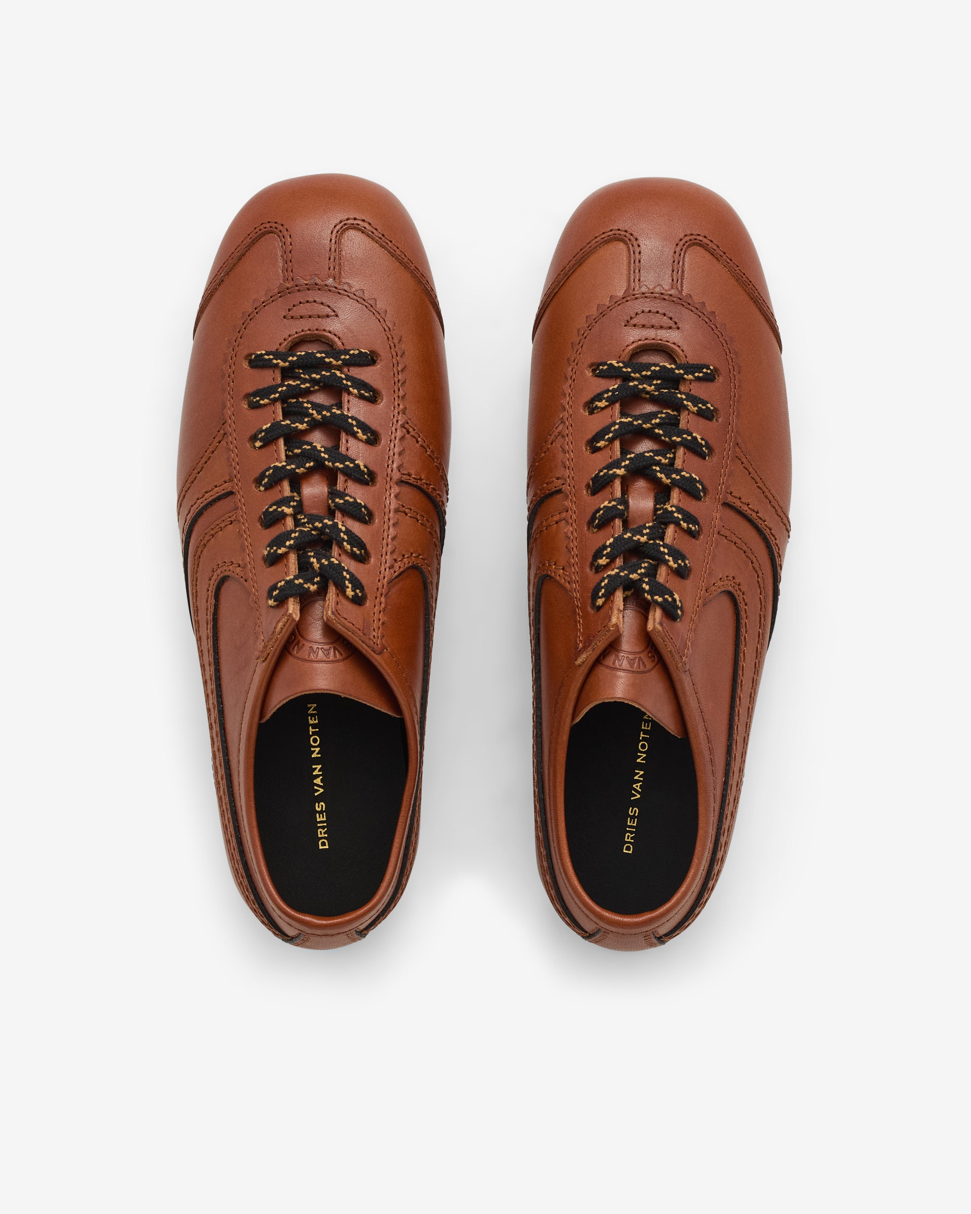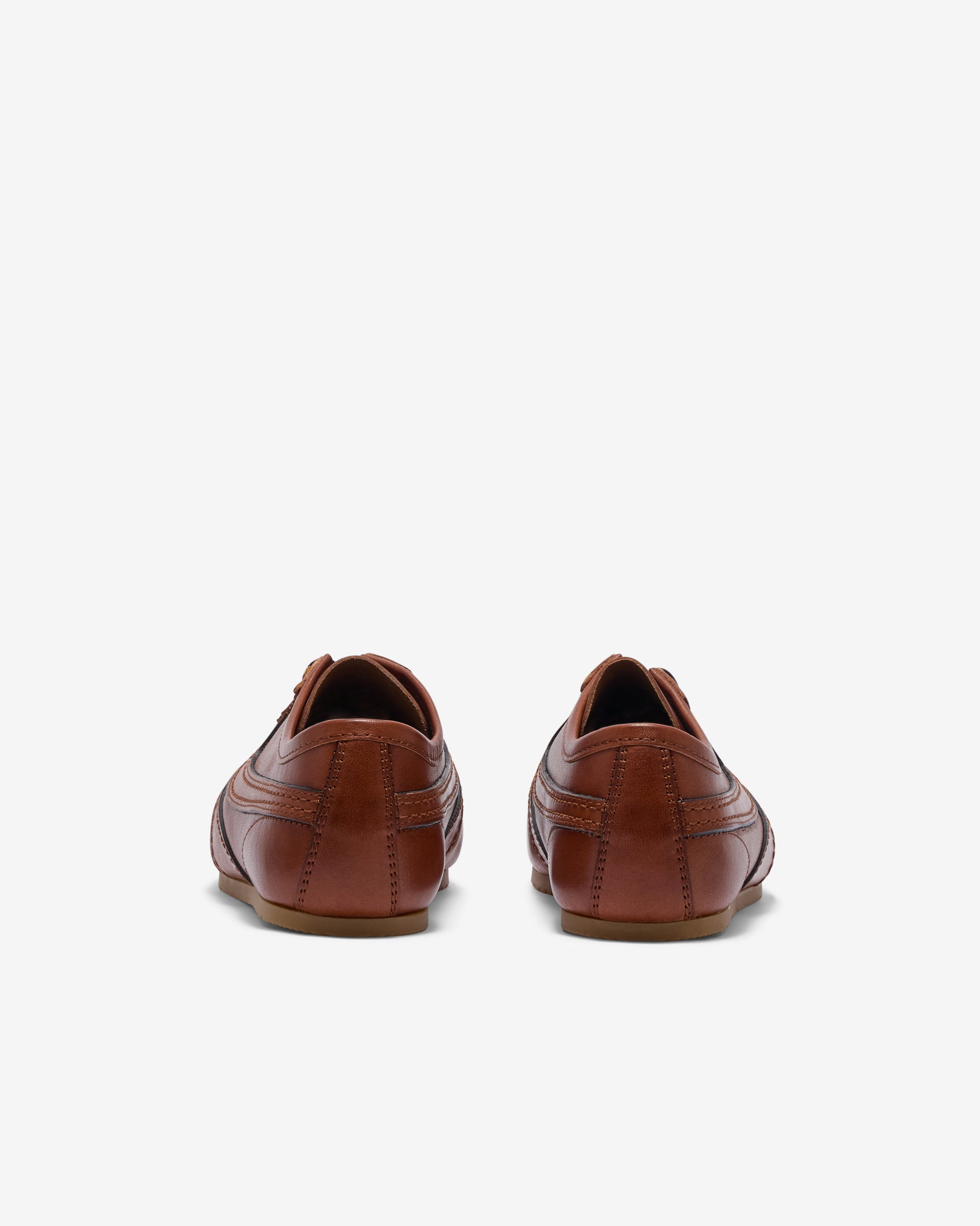 Rounded toeContrast lace up closureSmooth leather upperRubber outsole