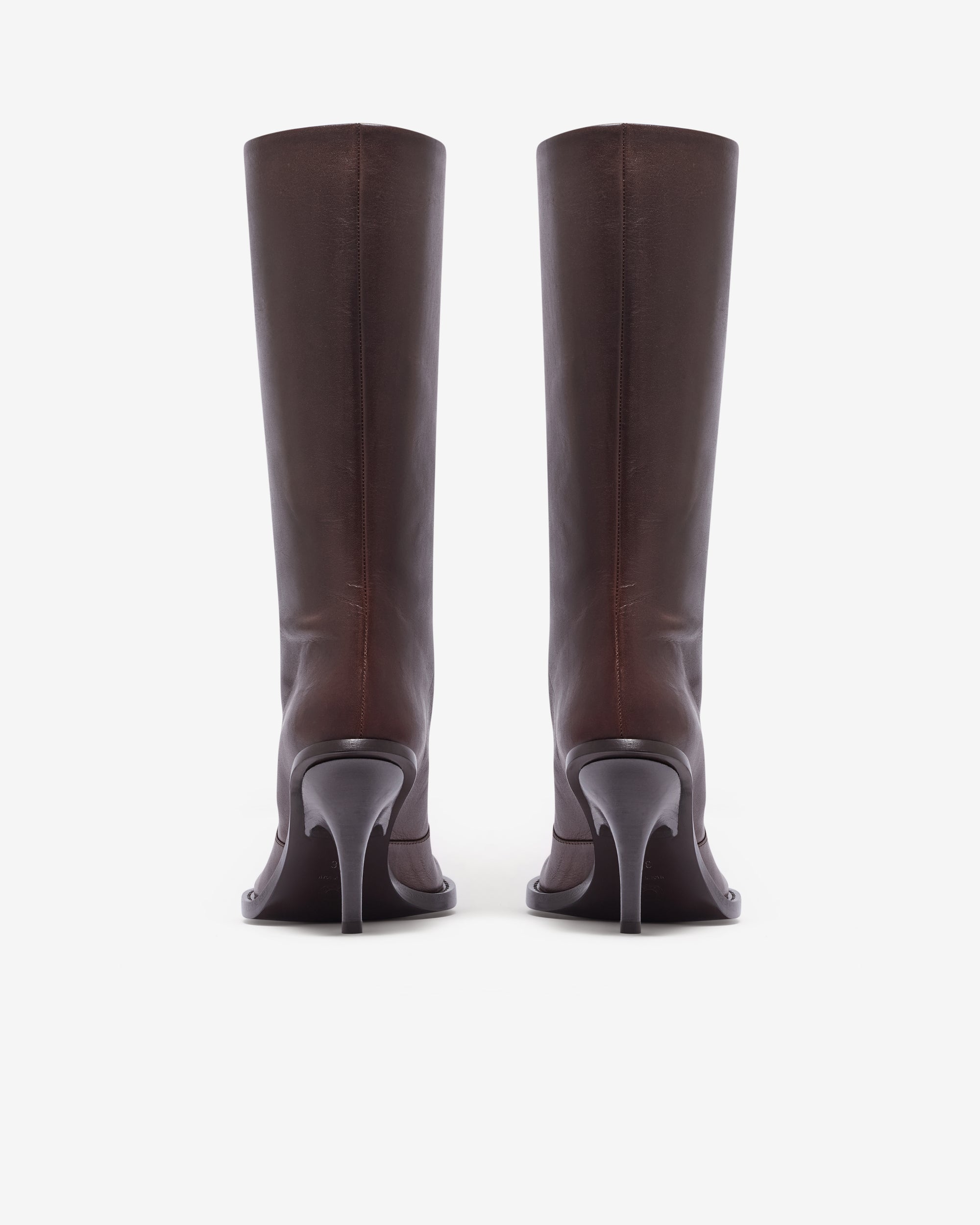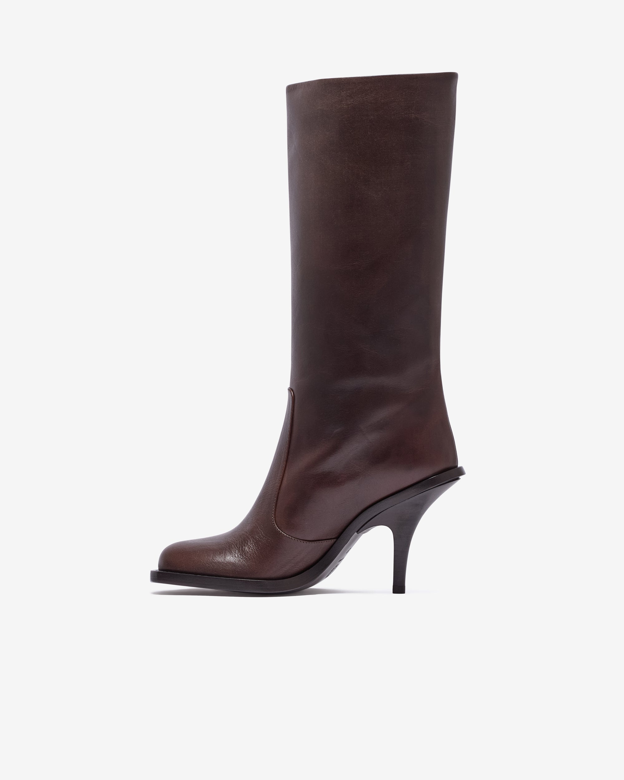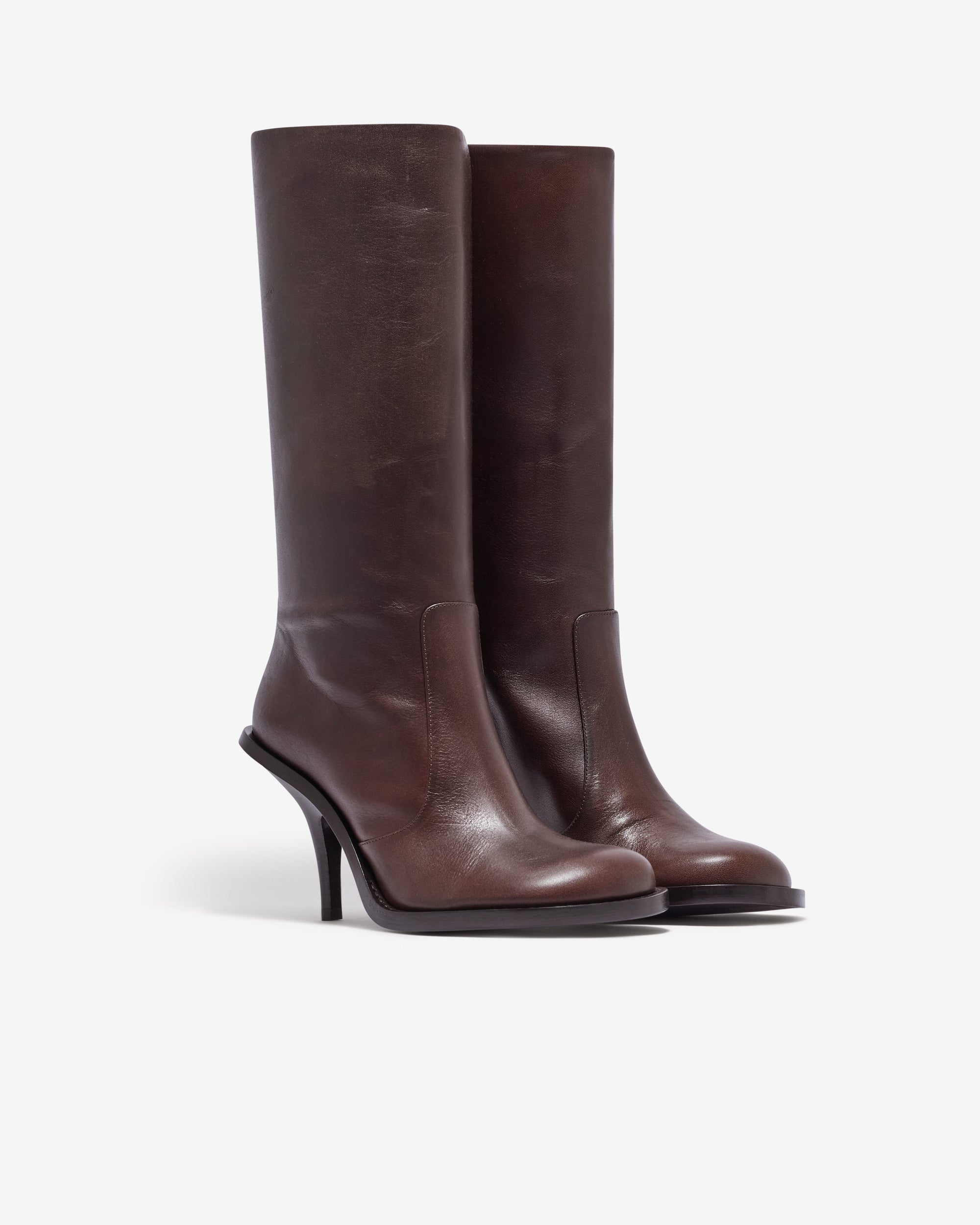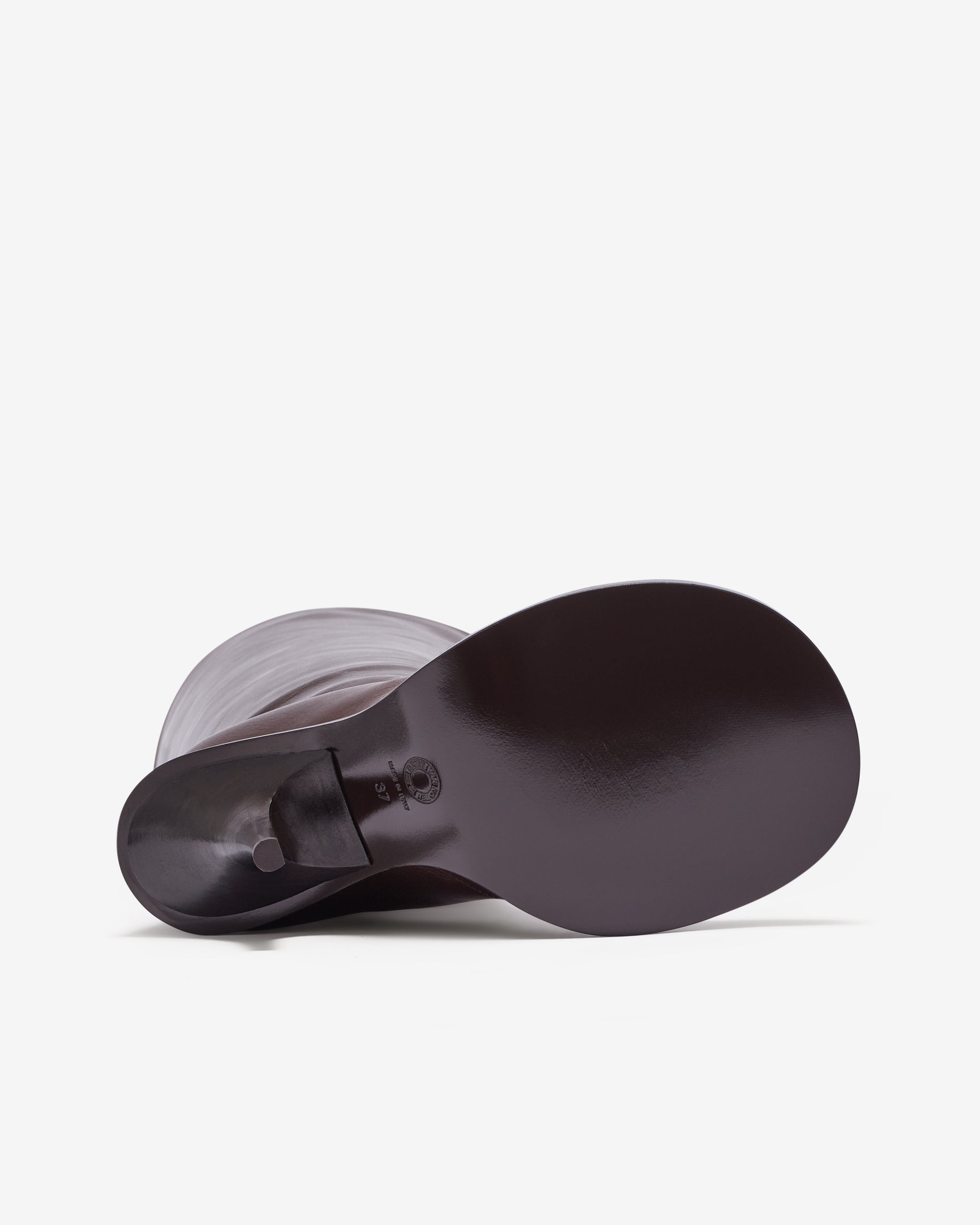 Slip on styleCalf lengthAdjustable buckleRounded toe Heeled stiletto outsole