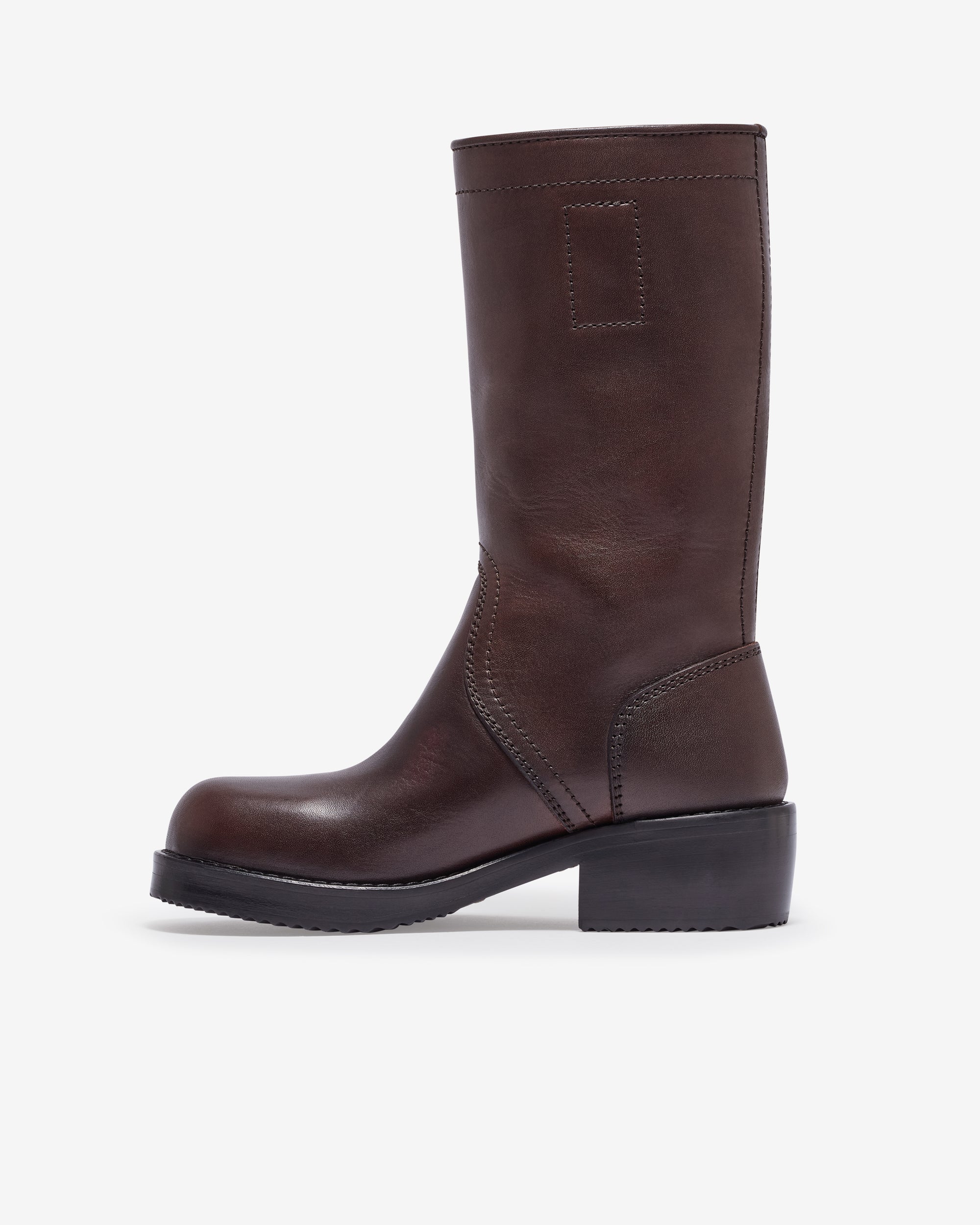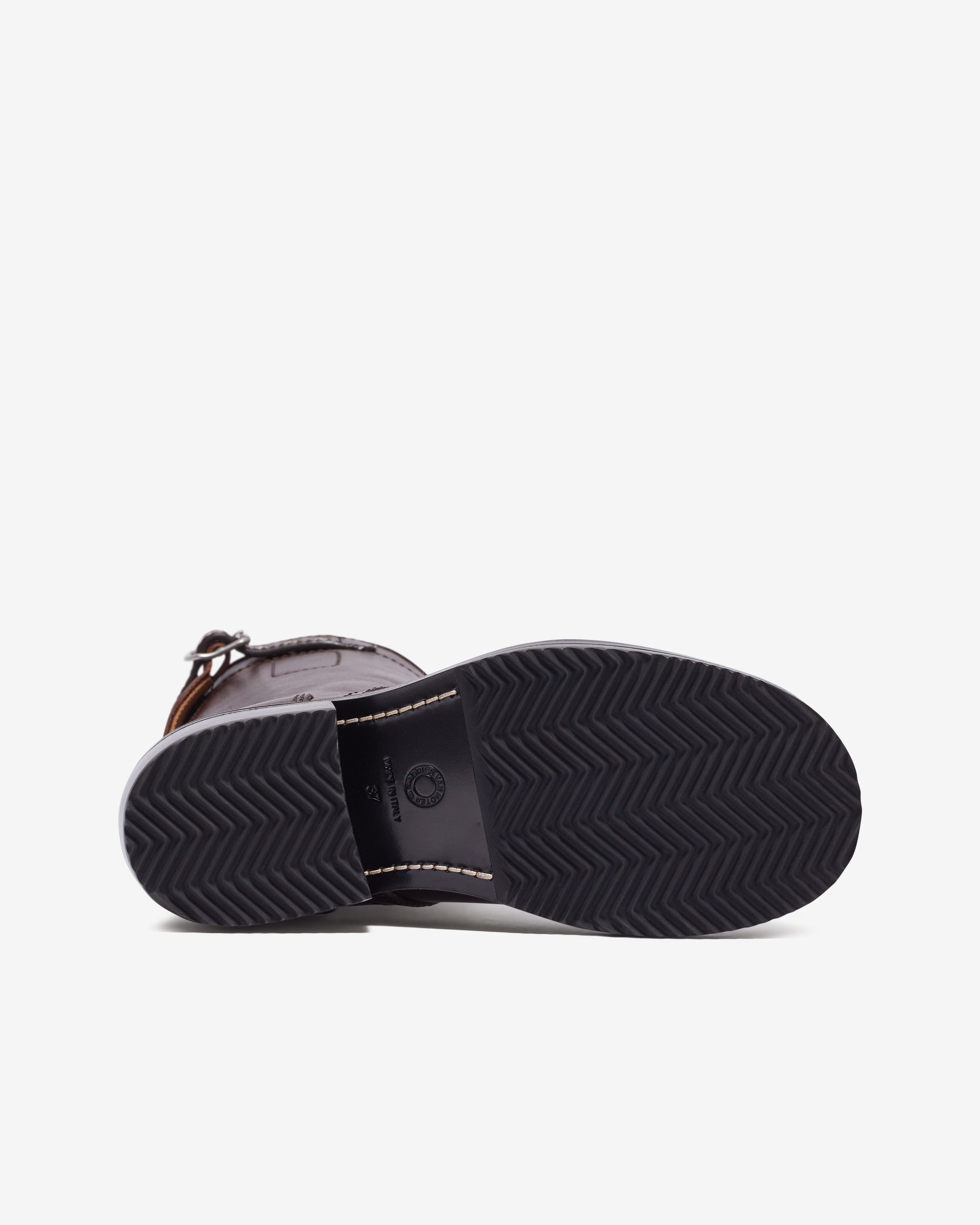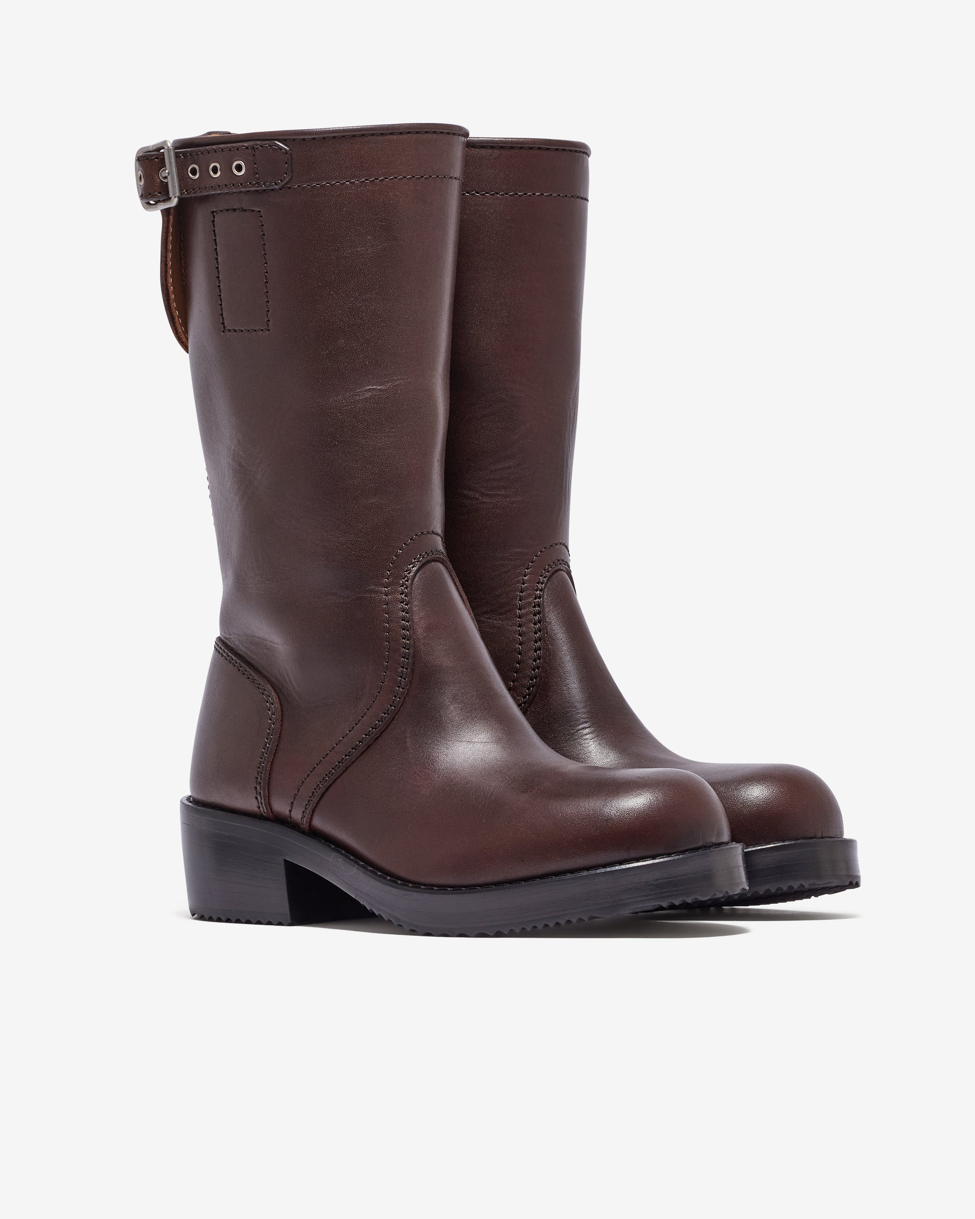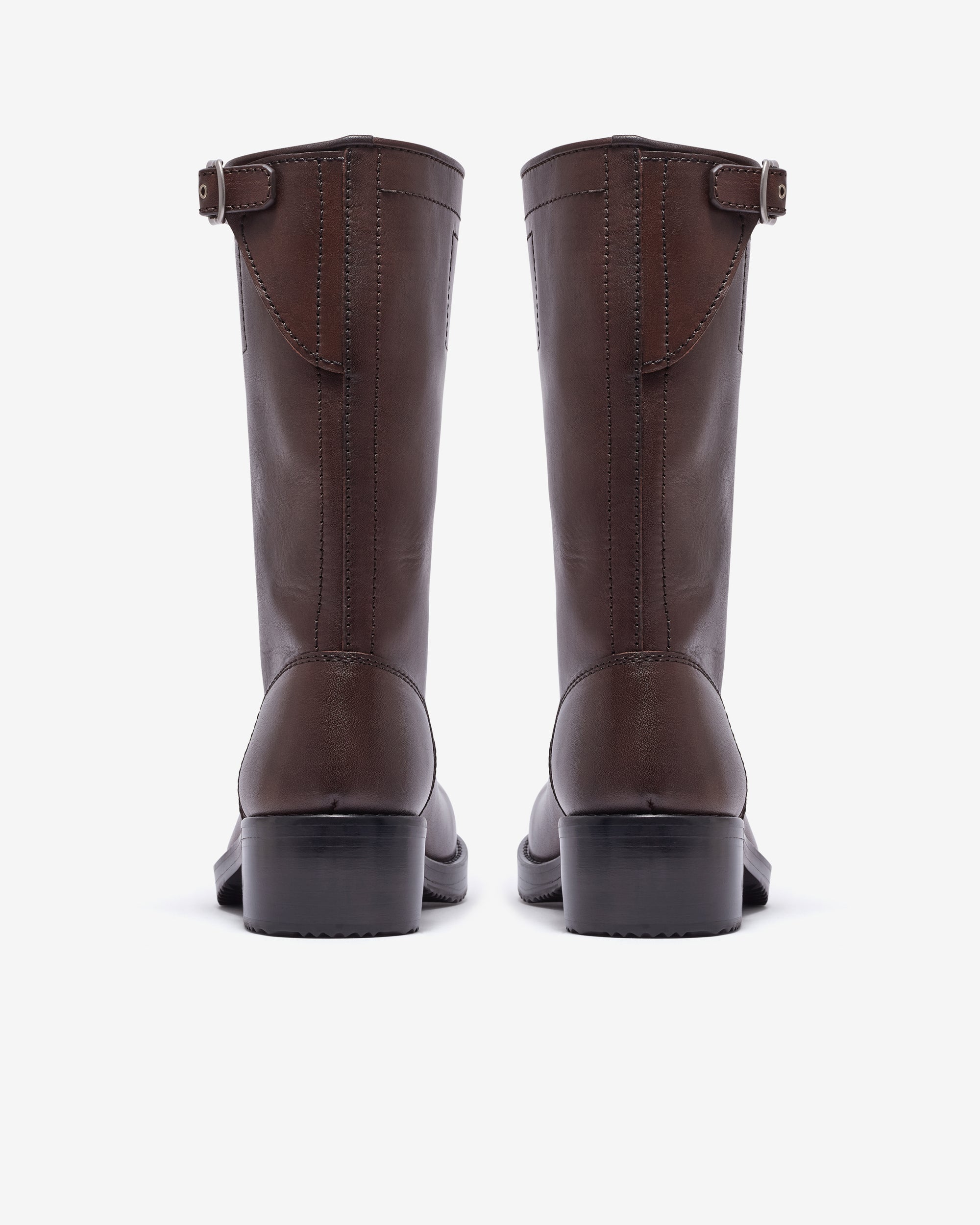 Slip on styleCalf lengthAdjustable buckleRounded toe Heeled rubber outsole