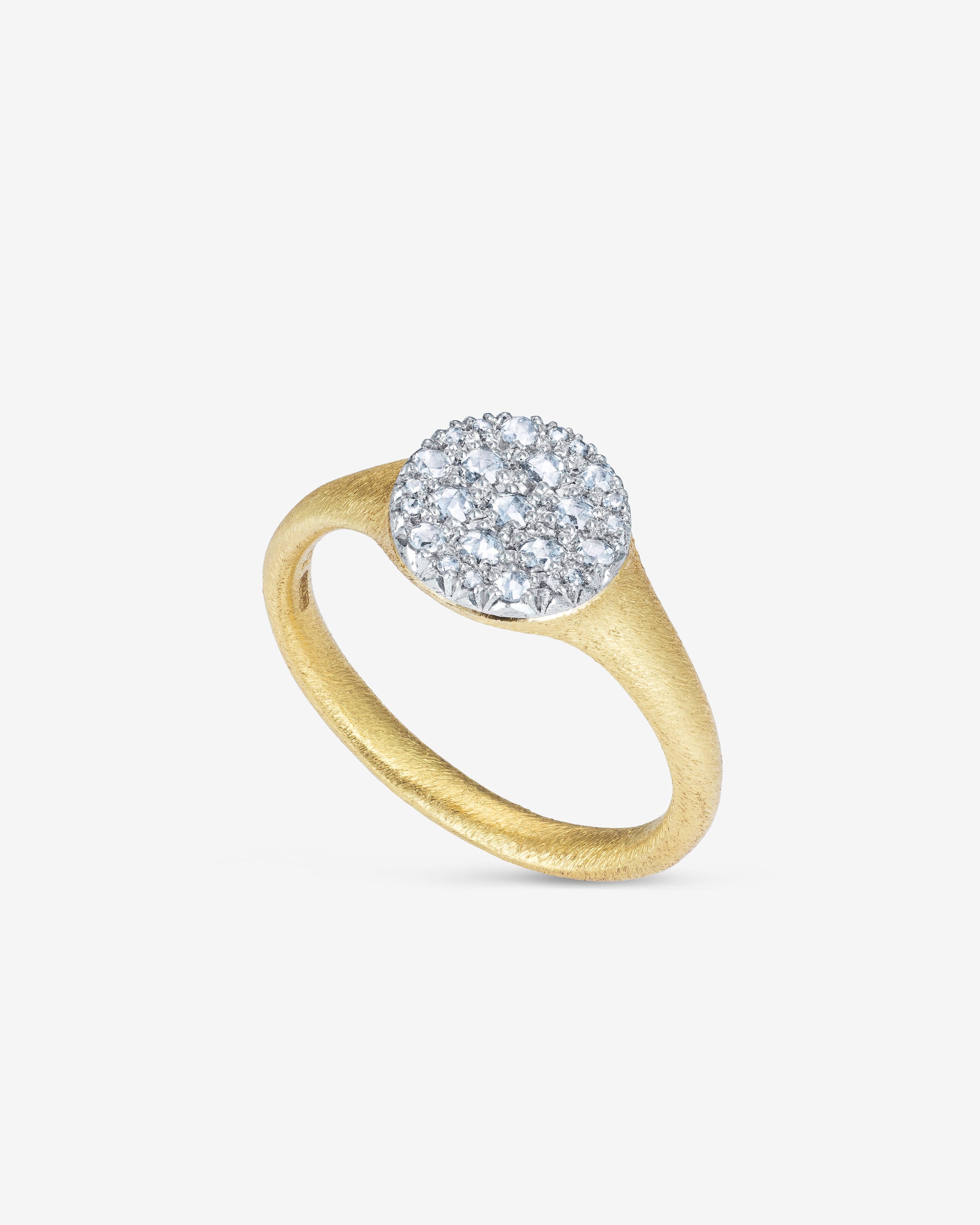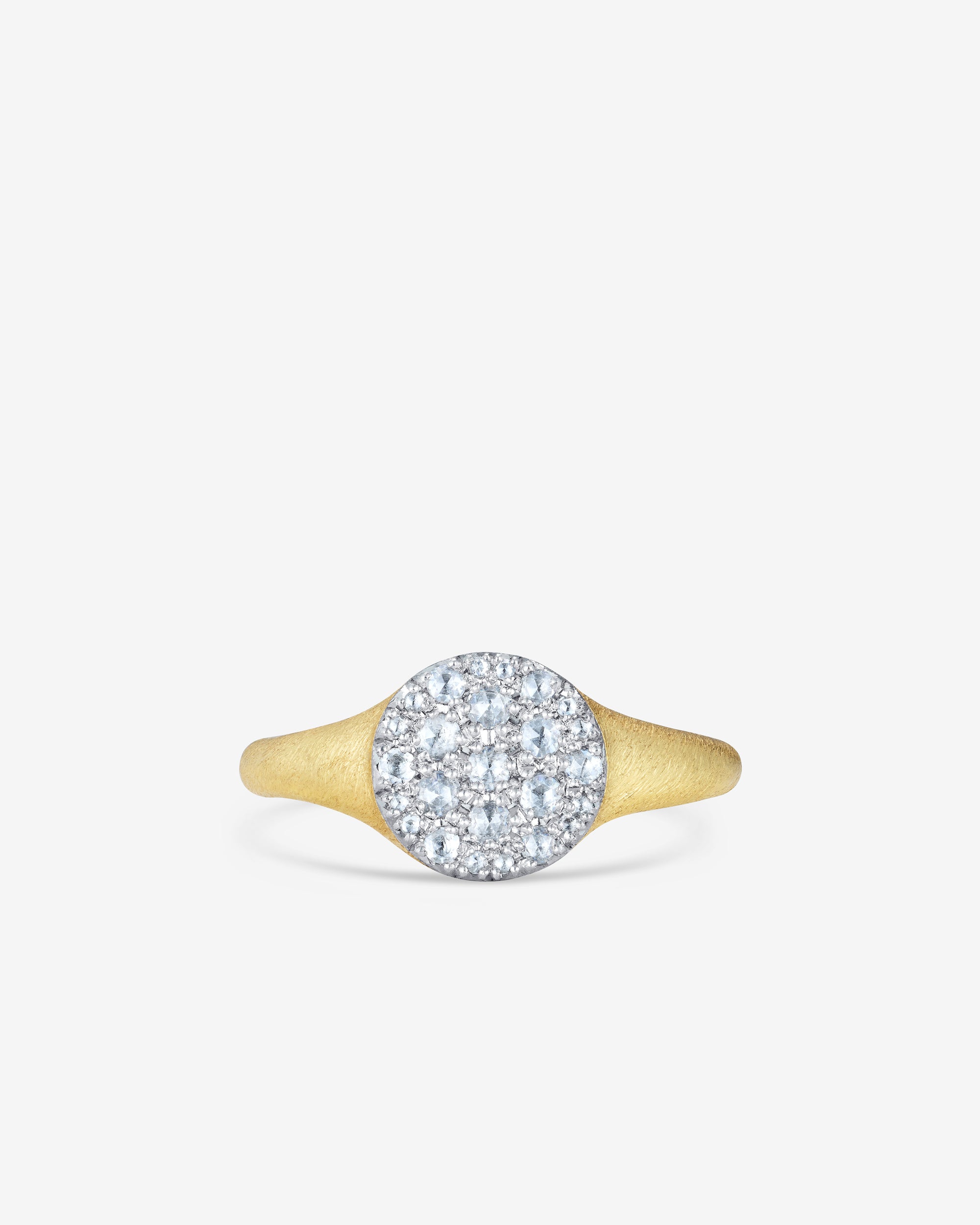 Signet style ring with diamonds in circular setting