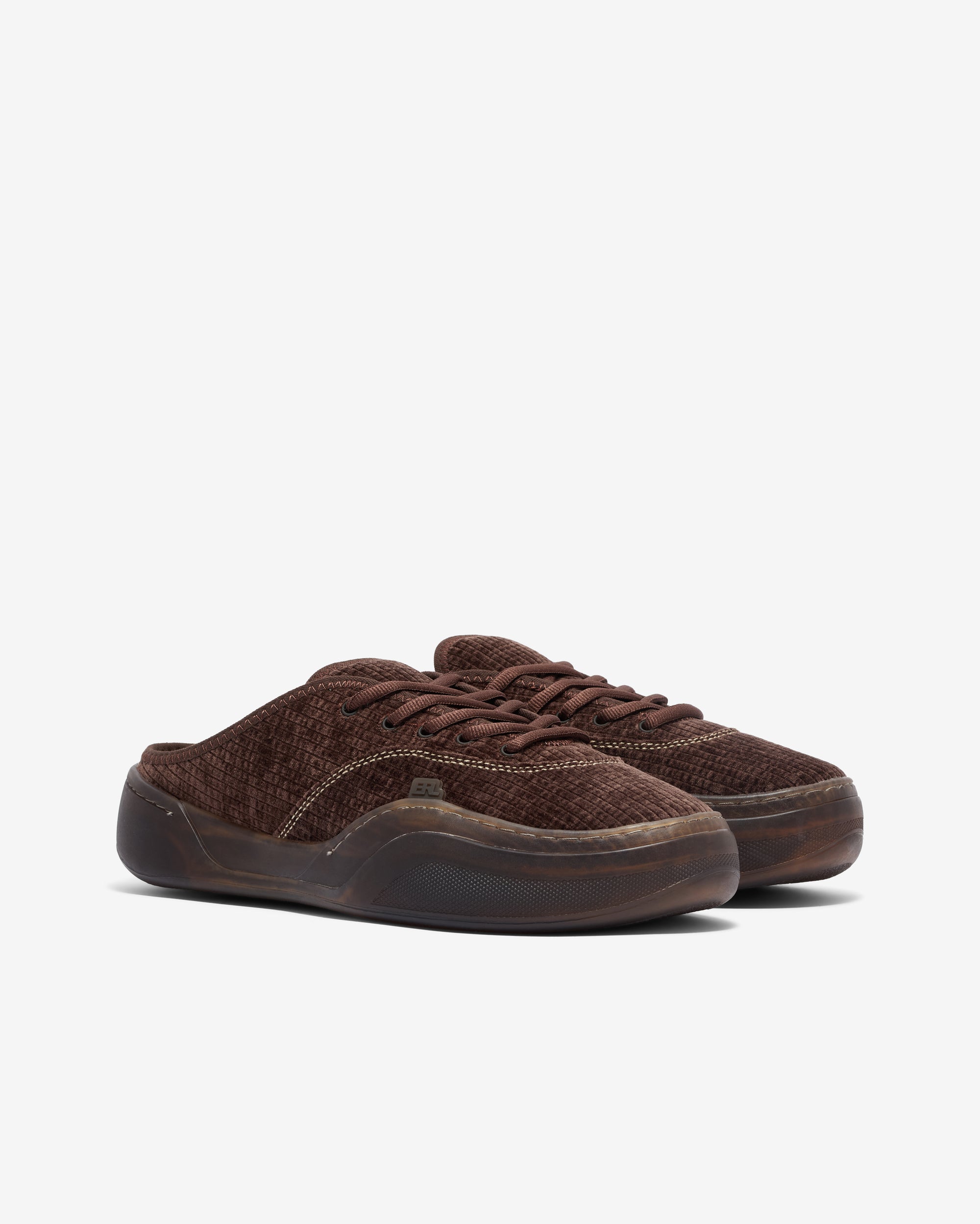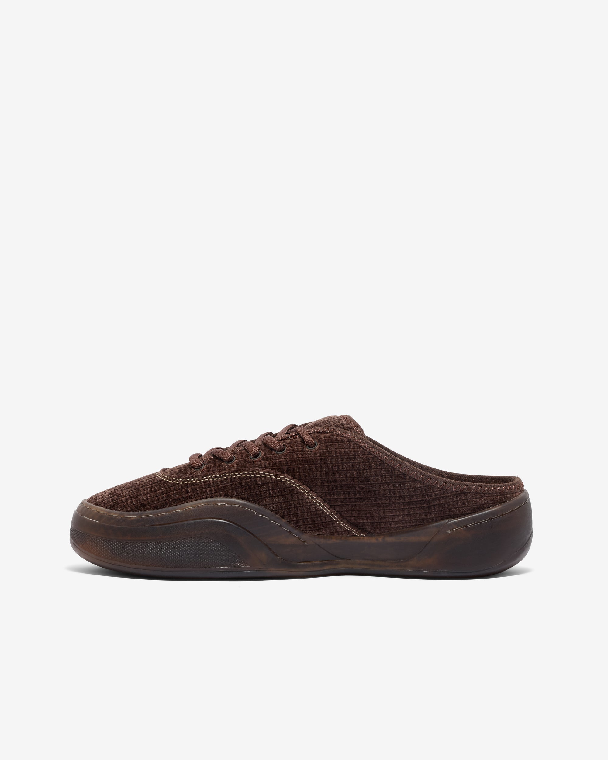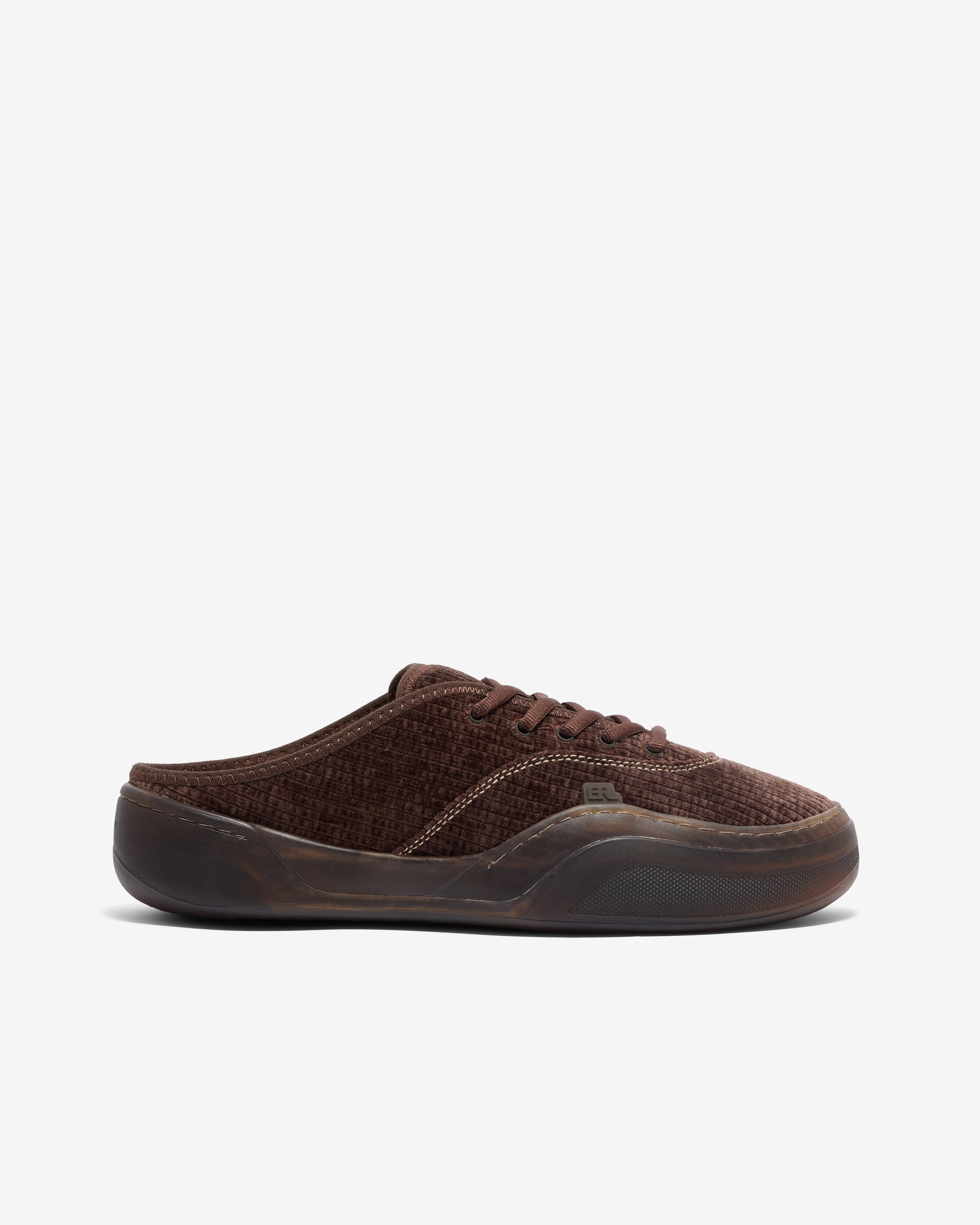 Lace-up closurePadded tongueRubber logo flag at outer sideSemi-transparent rubber midsoleText and logo at textured rubber soleMule back