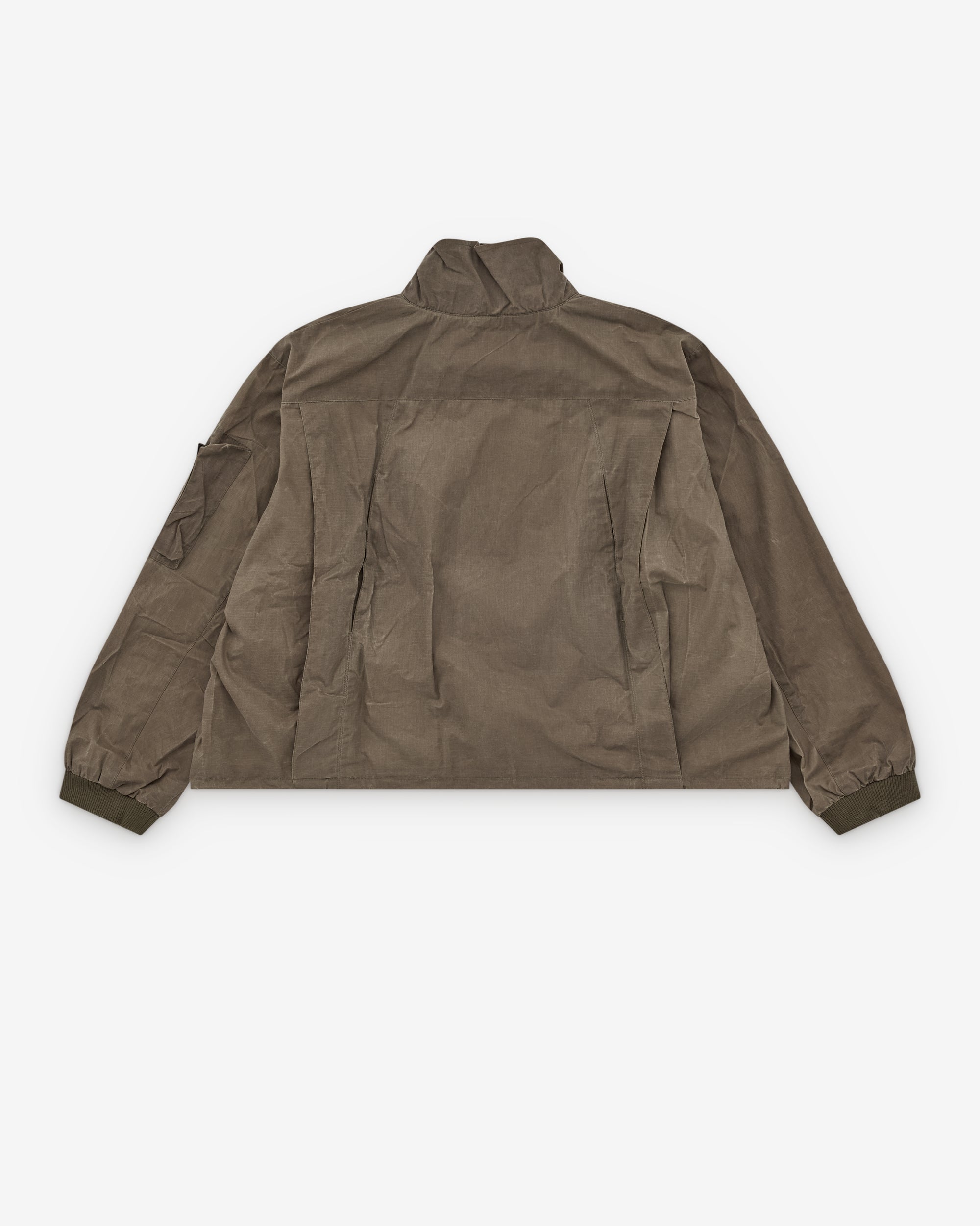 Button and zip closureFunnel necklineZip close arm pocketWashed canvas fabricElasticated cuffsFront slip pocketsBoxy fit