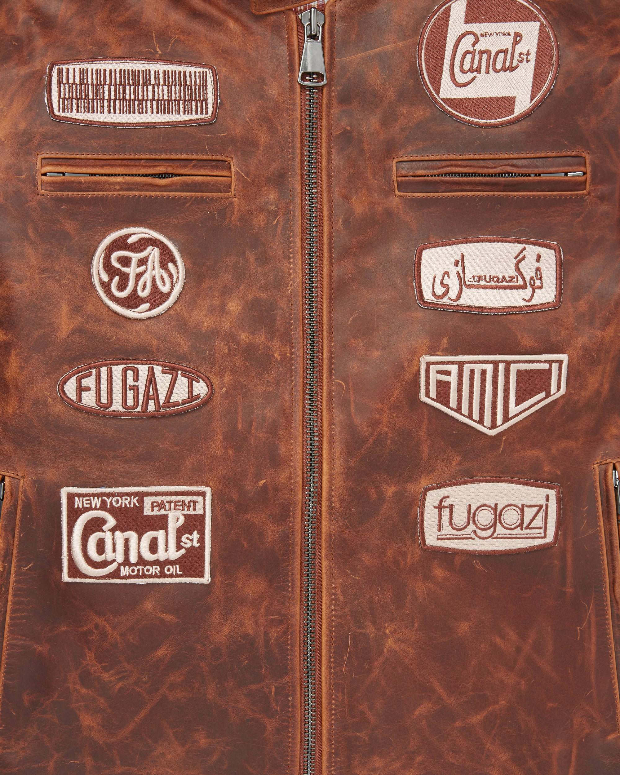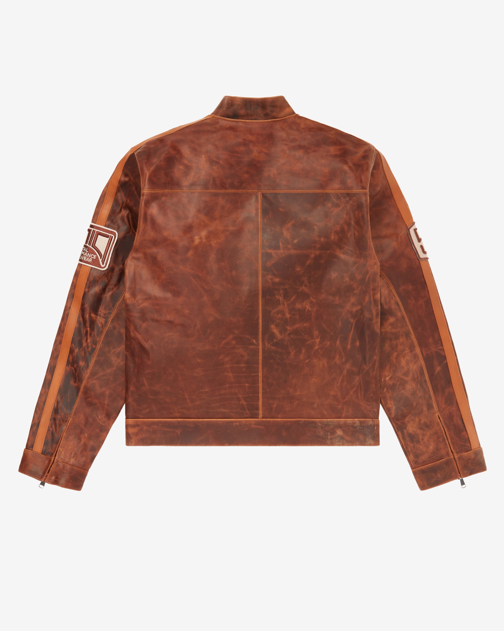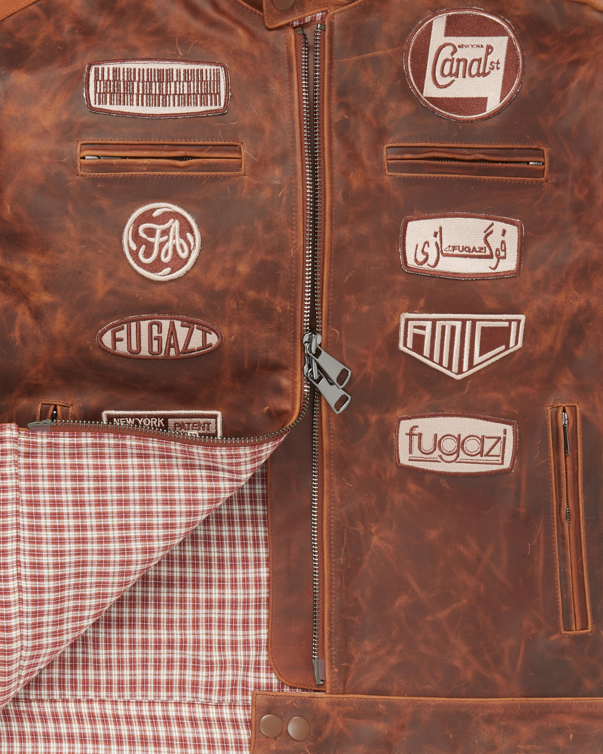 Stand collarZip fastening with press stud buttonsLinedFront patchesZip sleevesFront zip pocketsDistressed appearance