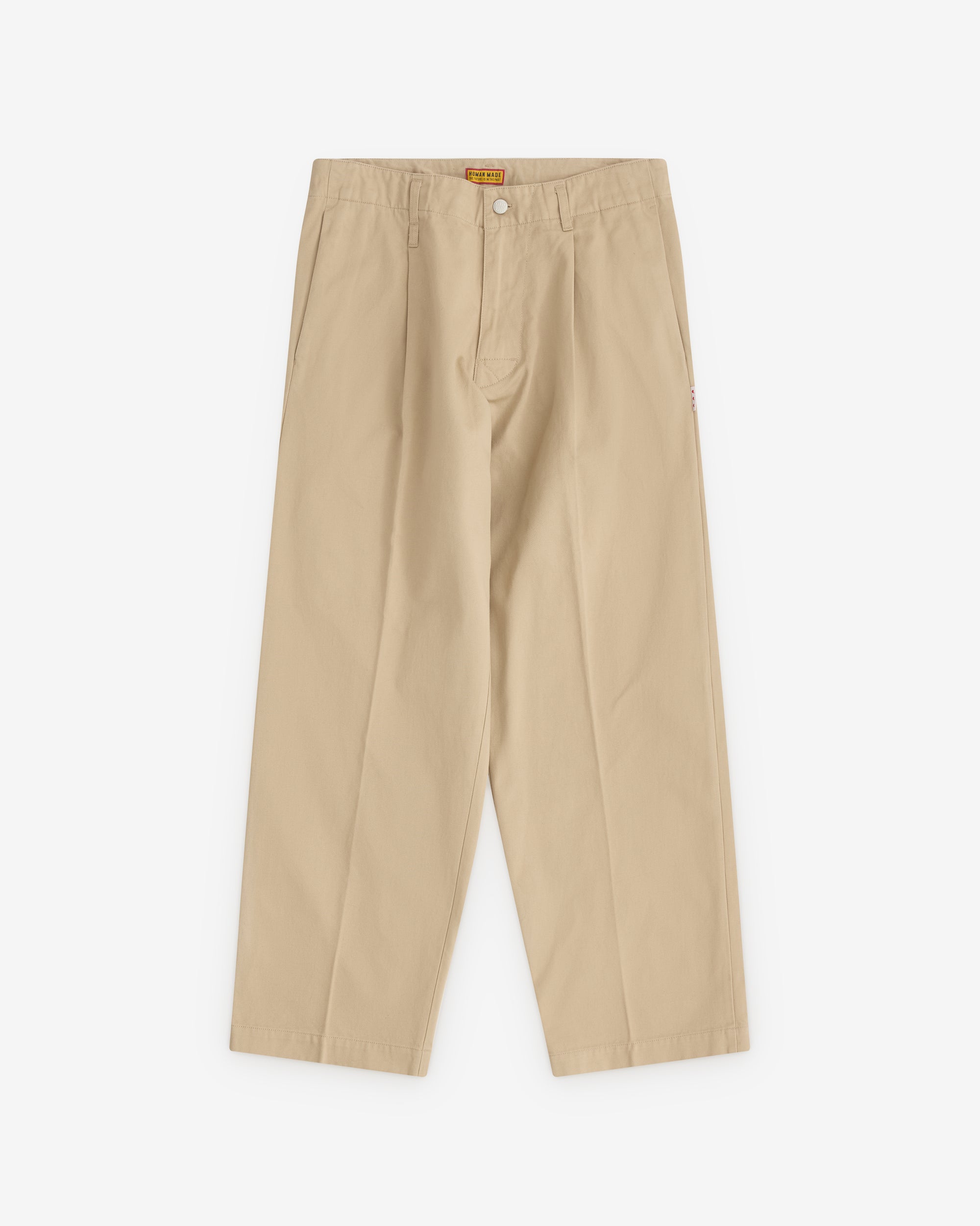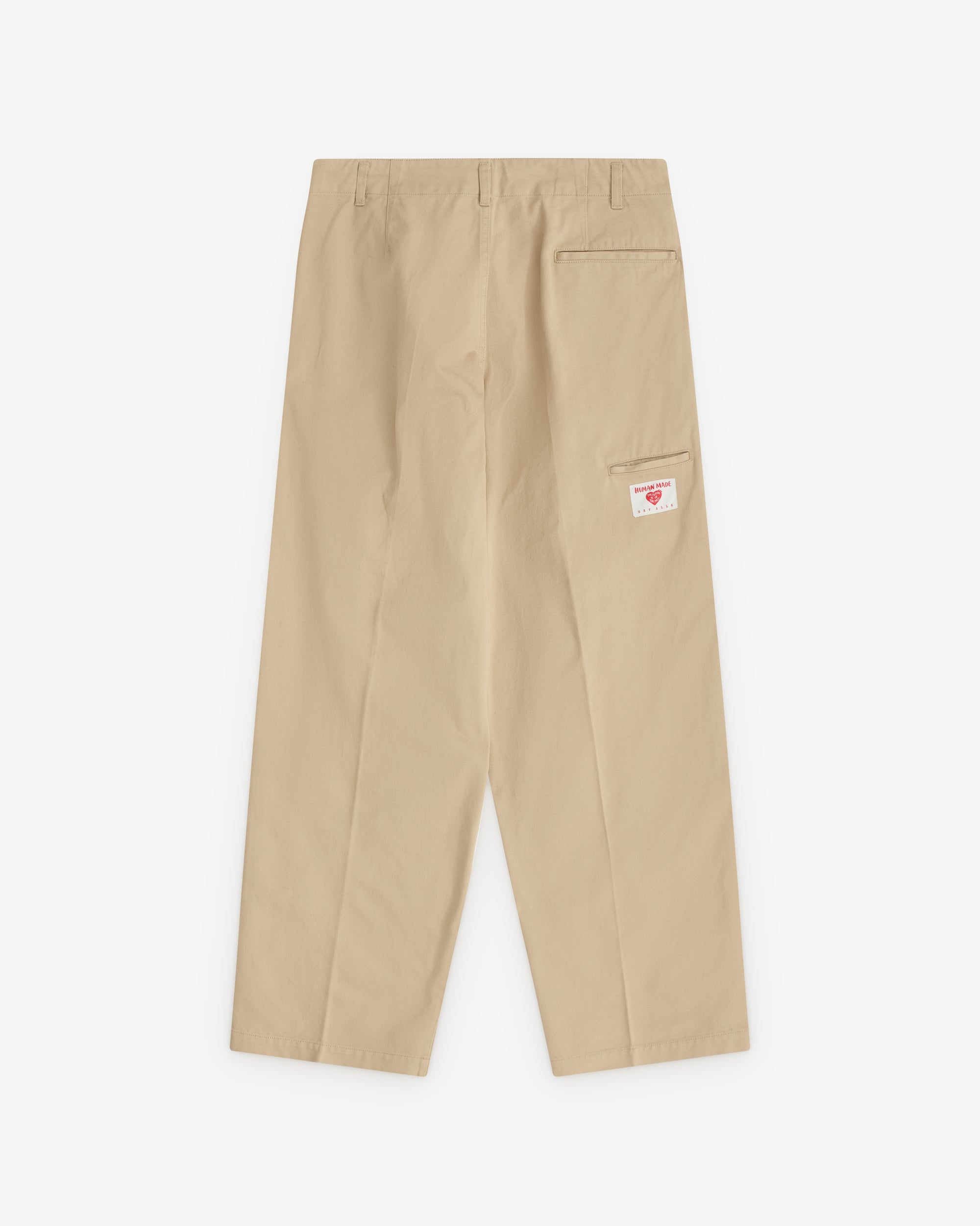 Wide fitButton waist closureZip flySide seam pocketsPleated frontSingle back pocketGraphic patch