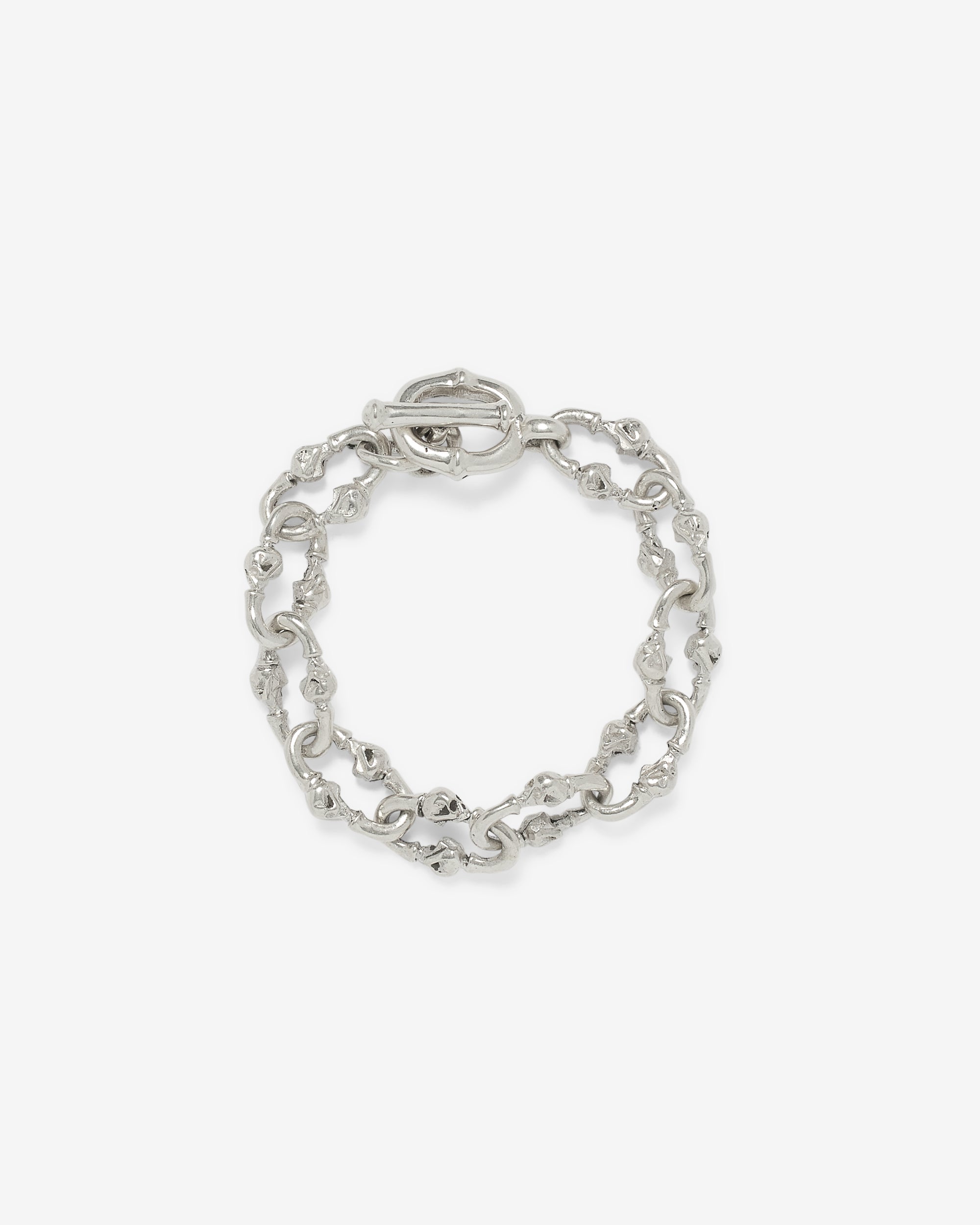 13 Lucky Monkey Double Skull Link Bracelet Silver