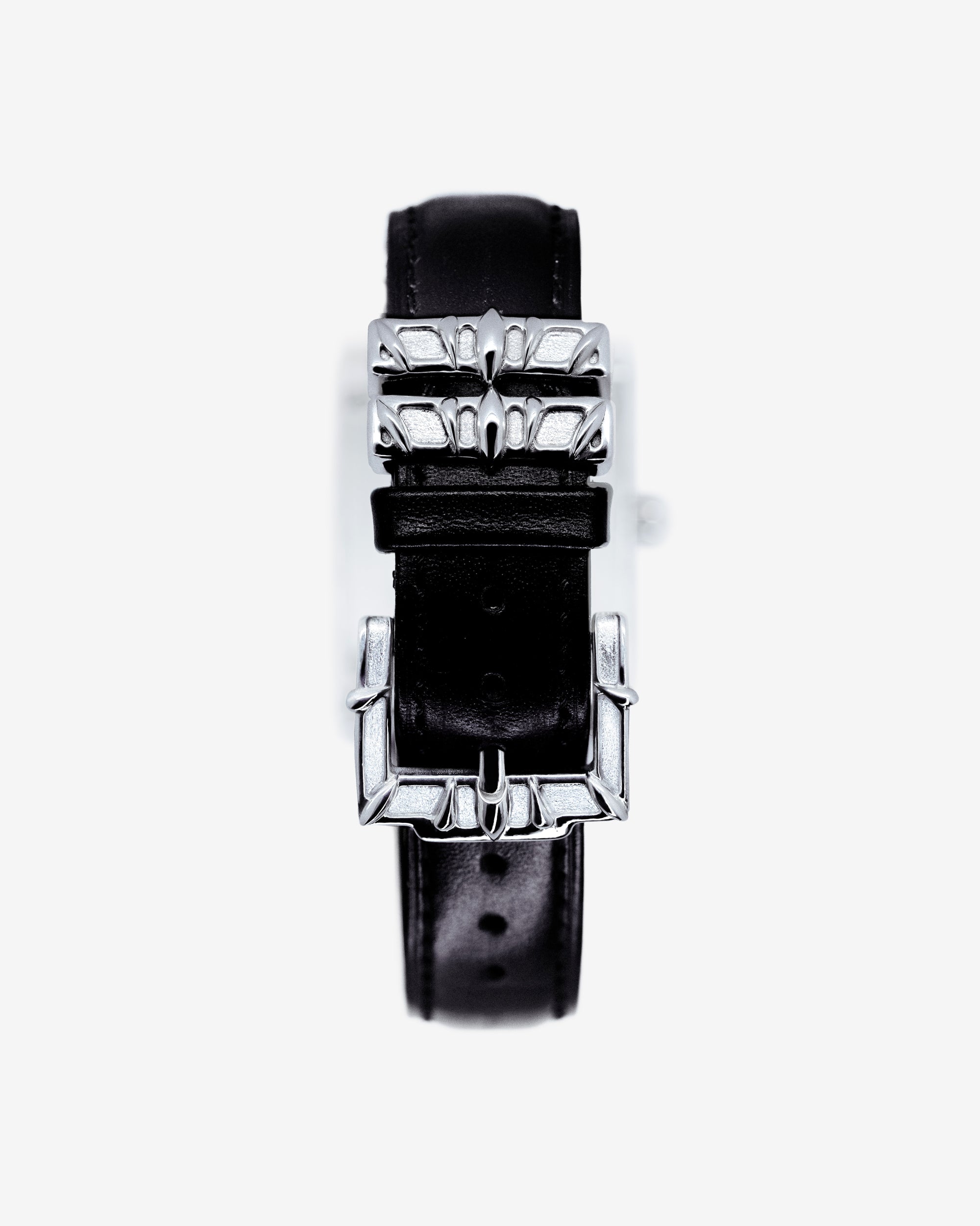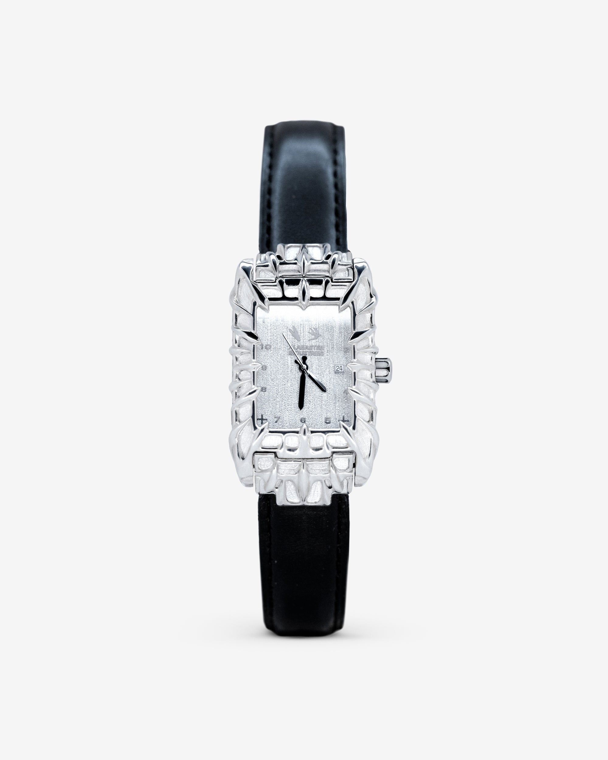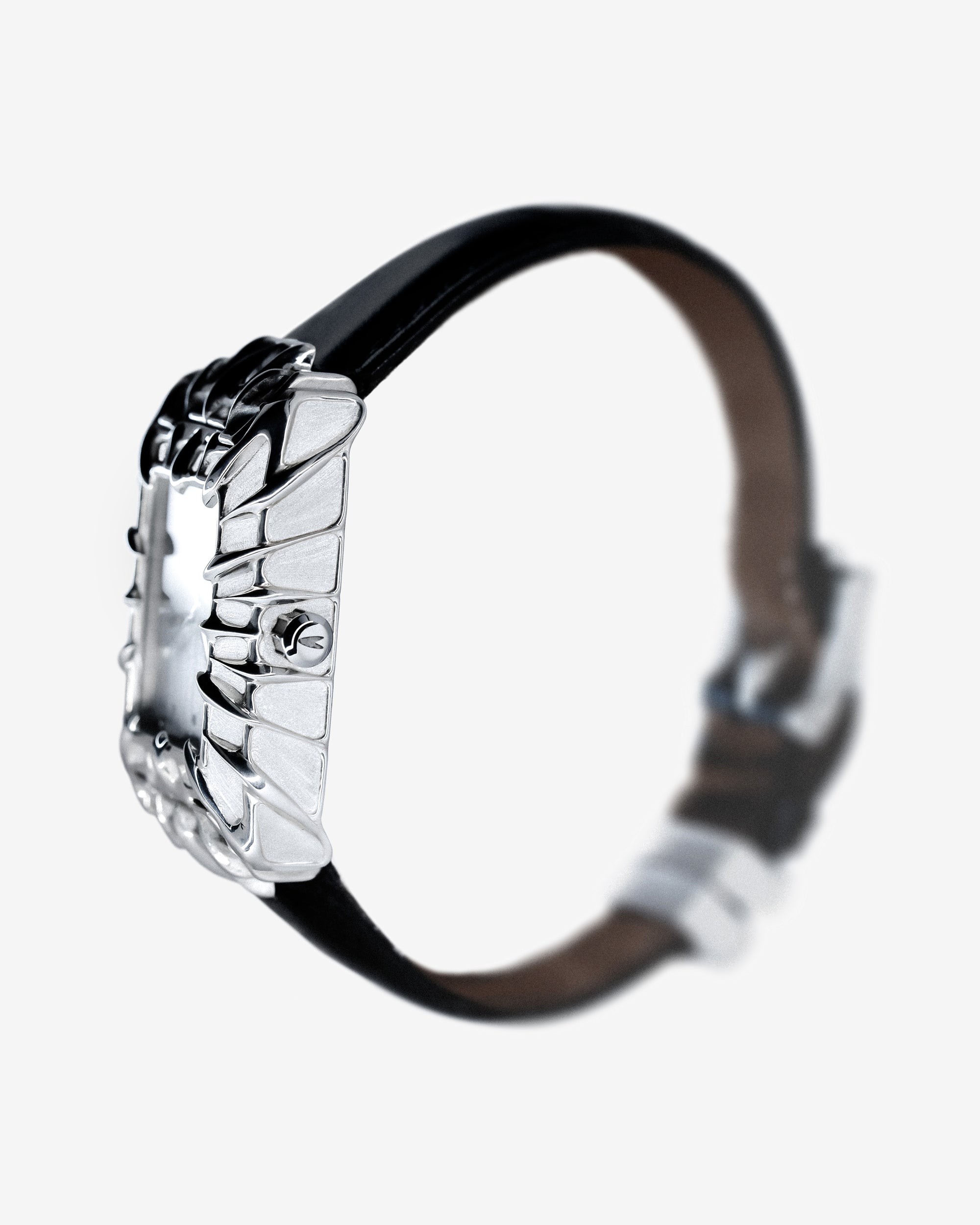 The conceptual inspiration for this watch is Aposematism, a defensive protection foundin nature that warns would-be predators that there is more than meets the eye. The Silver Thistle creates this for the wearer with a spiky, intimidating, and beautiful exterior that protects its purpose and meaning from easy or passive digestion.