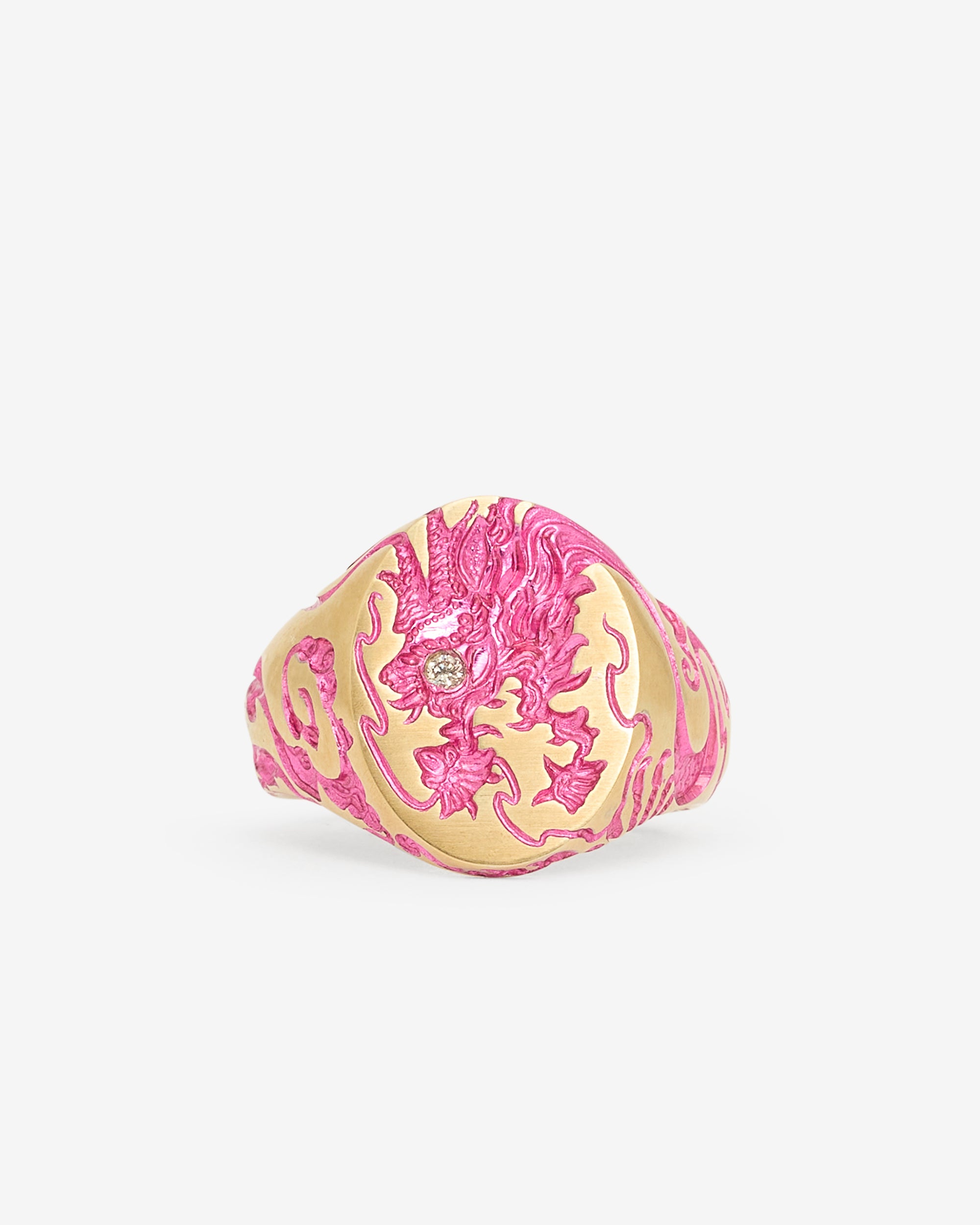 After training as a painter and print maker, Smith started a traditional apprenticeship with the Goldsmiths Company to study engraving. Using the ancient technique of ‘seal engraving’ Castro modernises his designs European and Japanese influences. Inspired by history, myths and biology, he is obsessed with creatures and their creations.