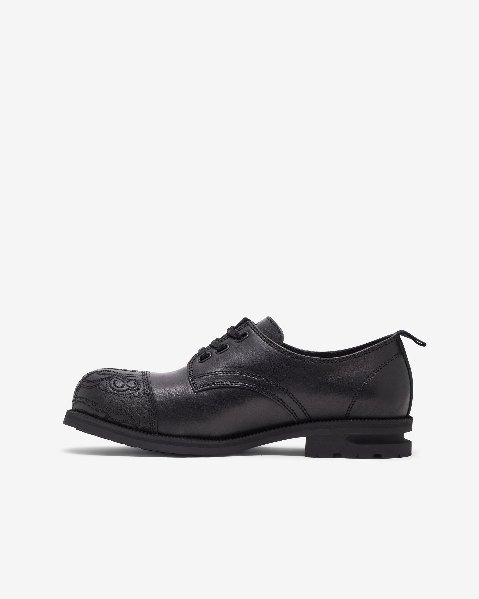 Smooth bovine leather upperRounded toeEmbroidered paisley motif on the toe boxVibram® rubber sole