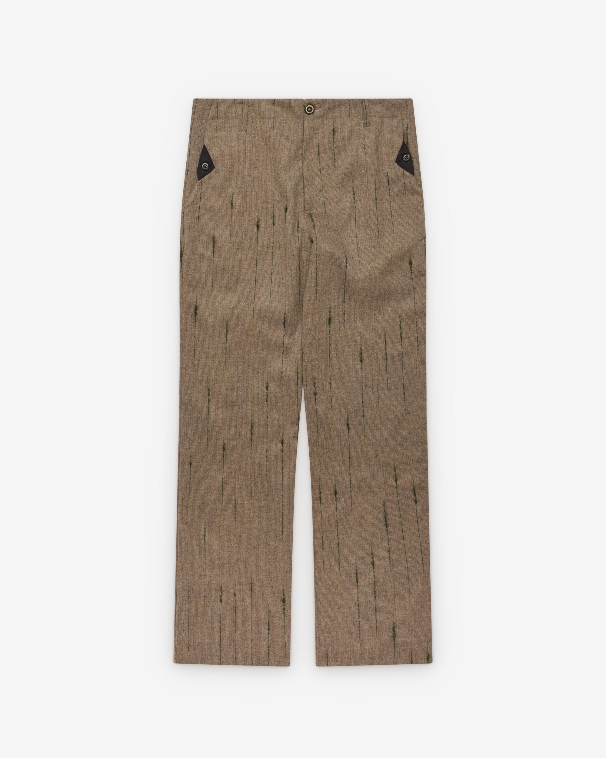 Straight leg, slim fitSide seam pocketsButton waistSingle back pocket