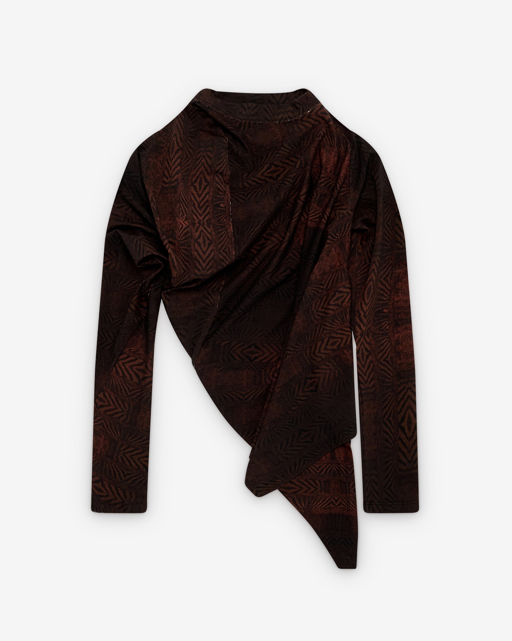 Fitted asymmetric cutLong sleevesTwisted fabric