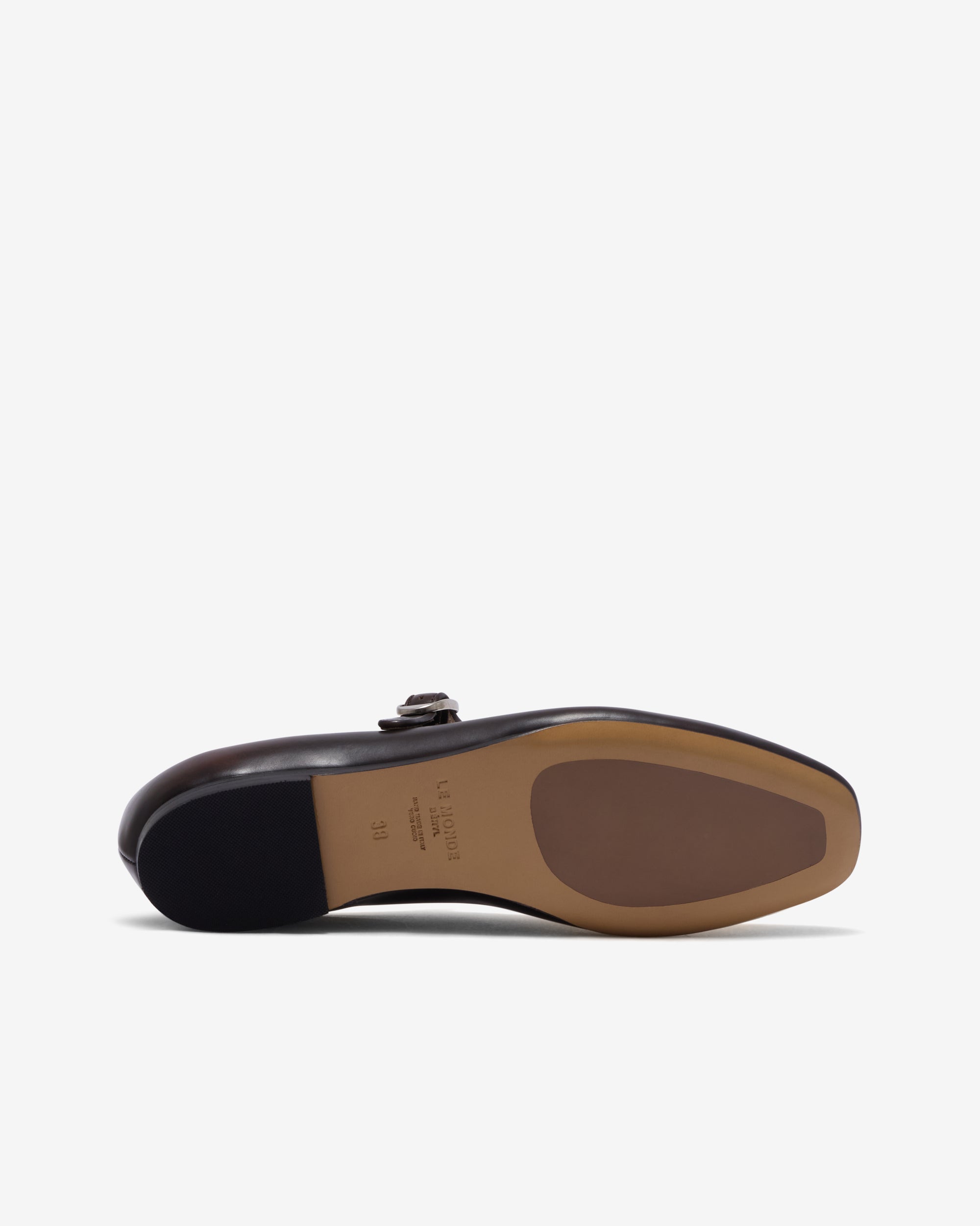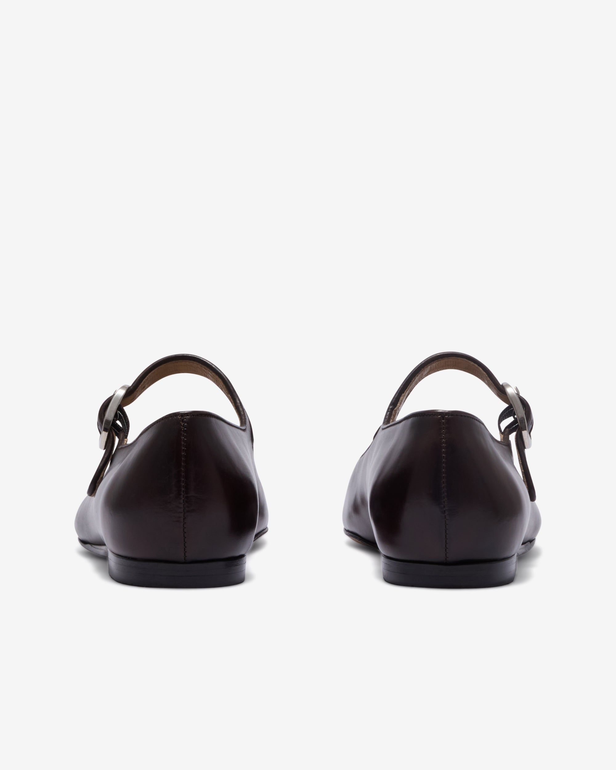 Mary Jane, handcrafted in leatherBuckle-fasteningSacchetto constructionSoft cushioned calf leather insoleLeather piping10mm heel