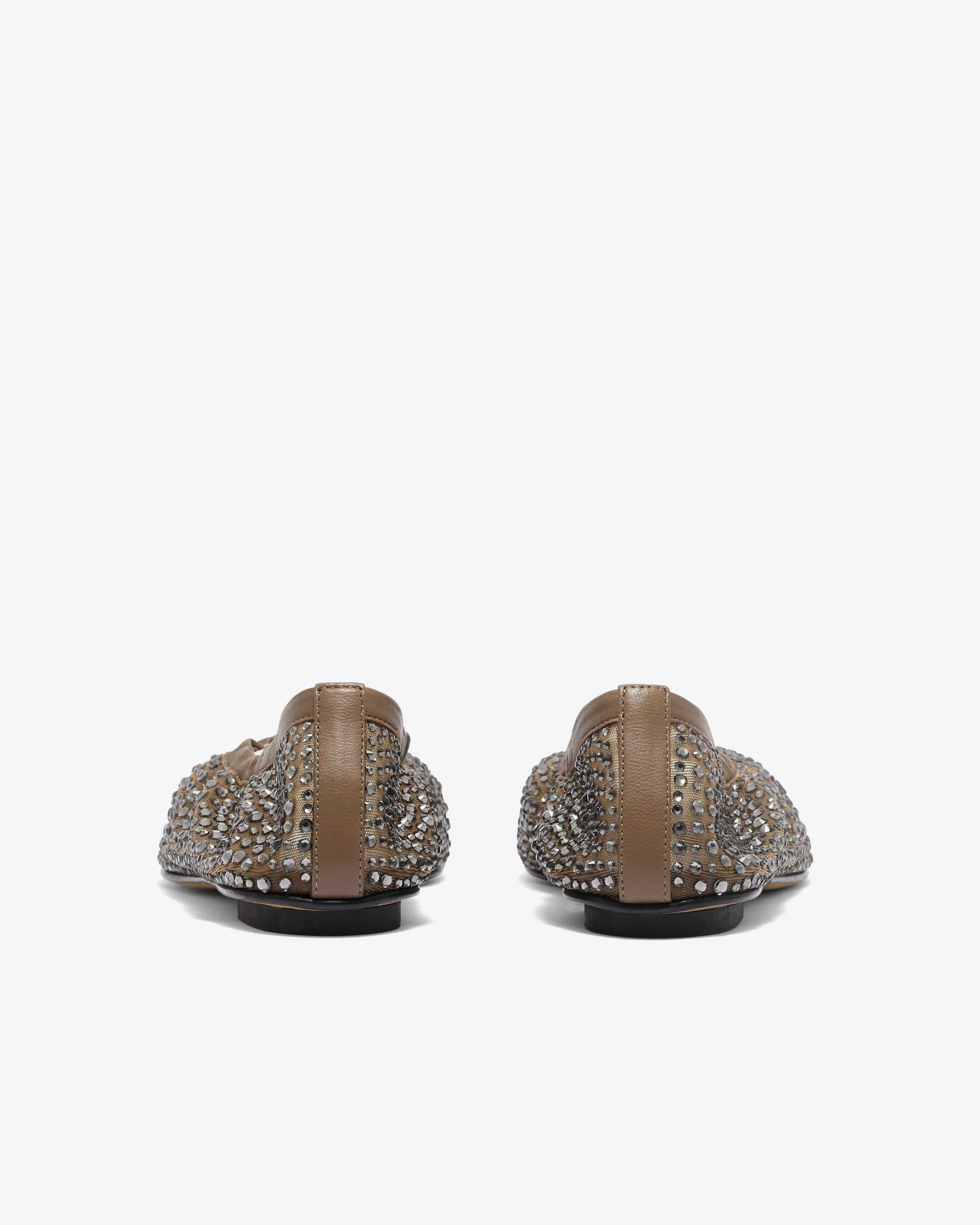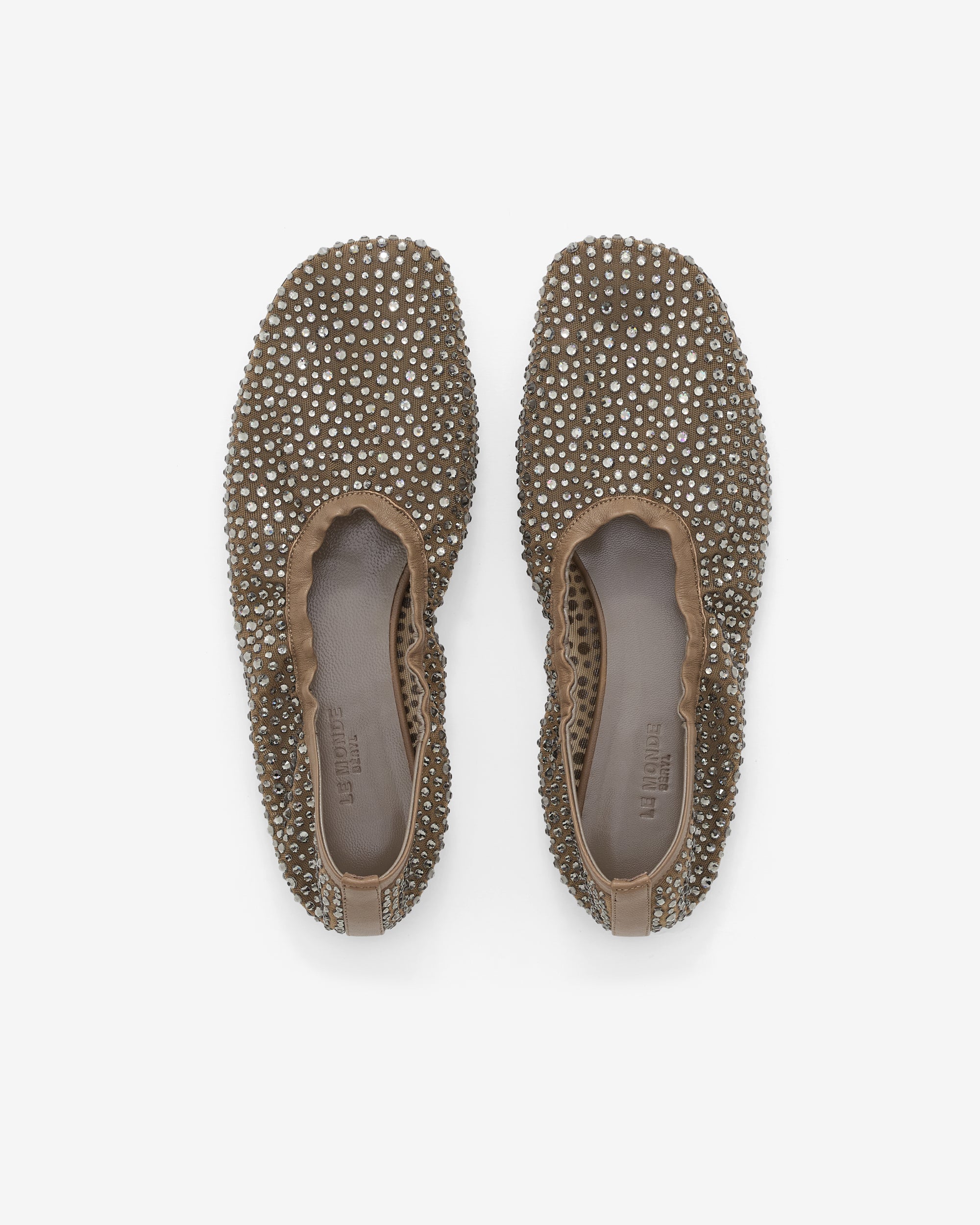 Smoke mesh upperSoft elastic trimCrystal detailingCushioned calf leather insole10mm heel