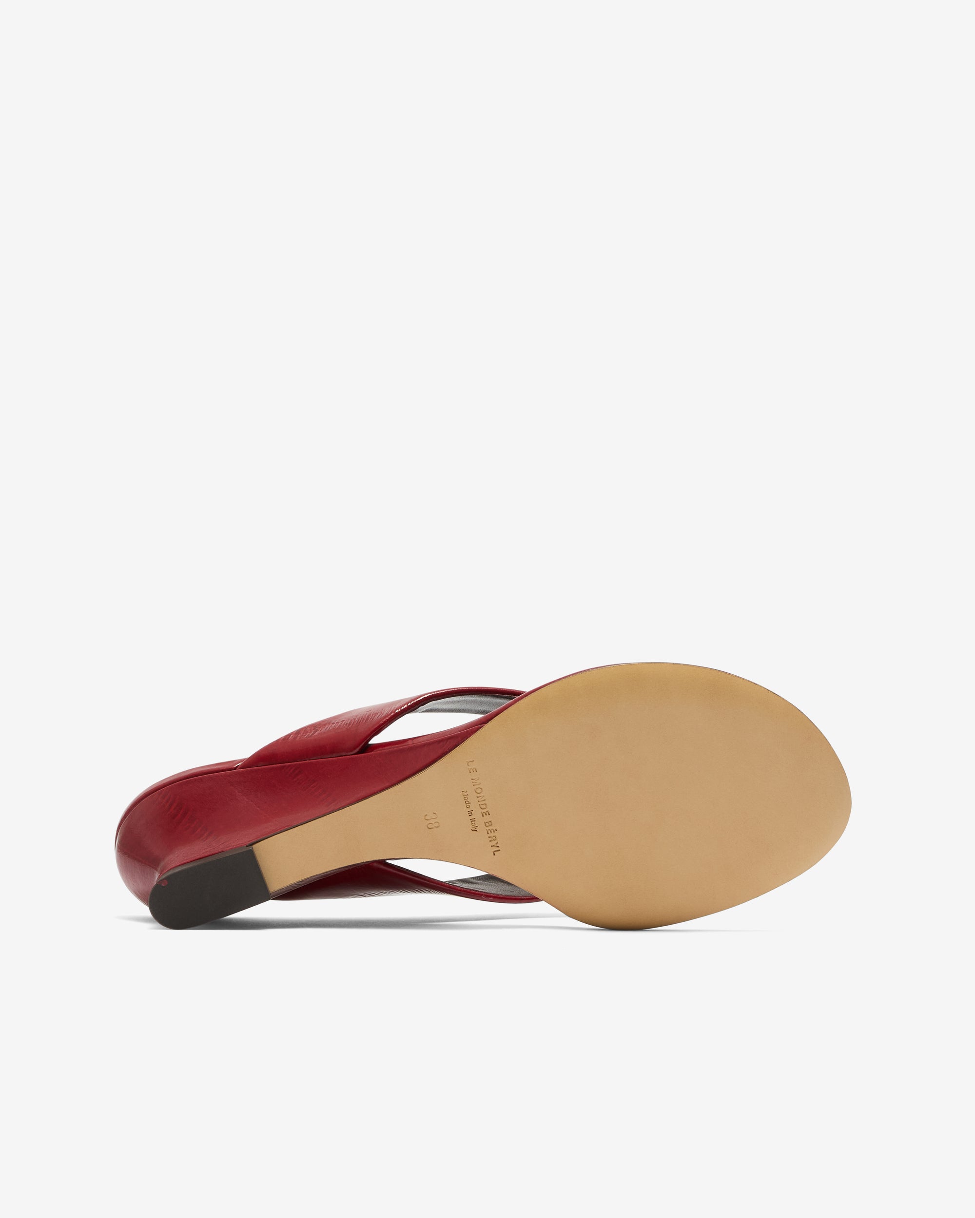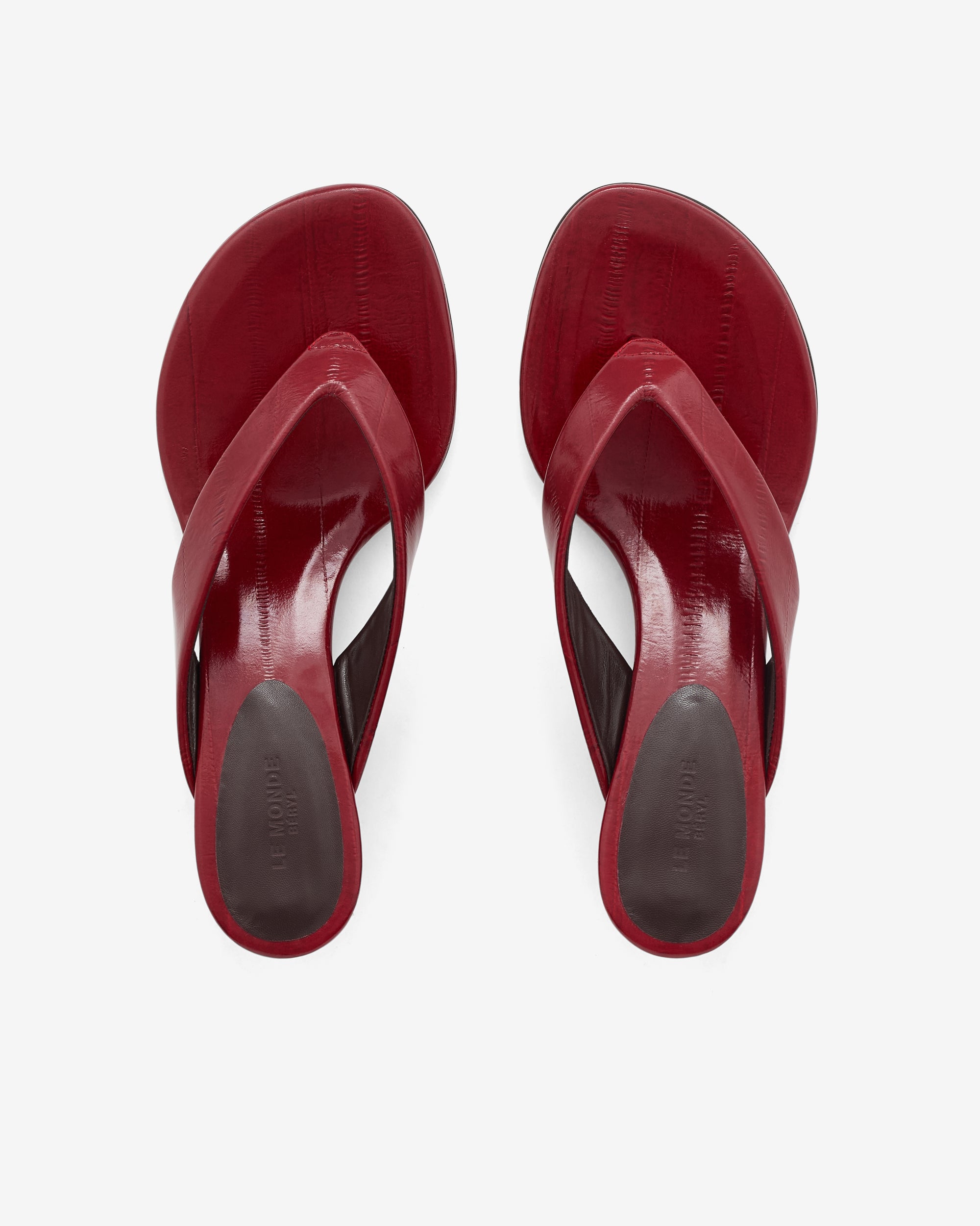 Micro wedge thong sandalCushioned calf leather insole and 40mm heelLeather upper