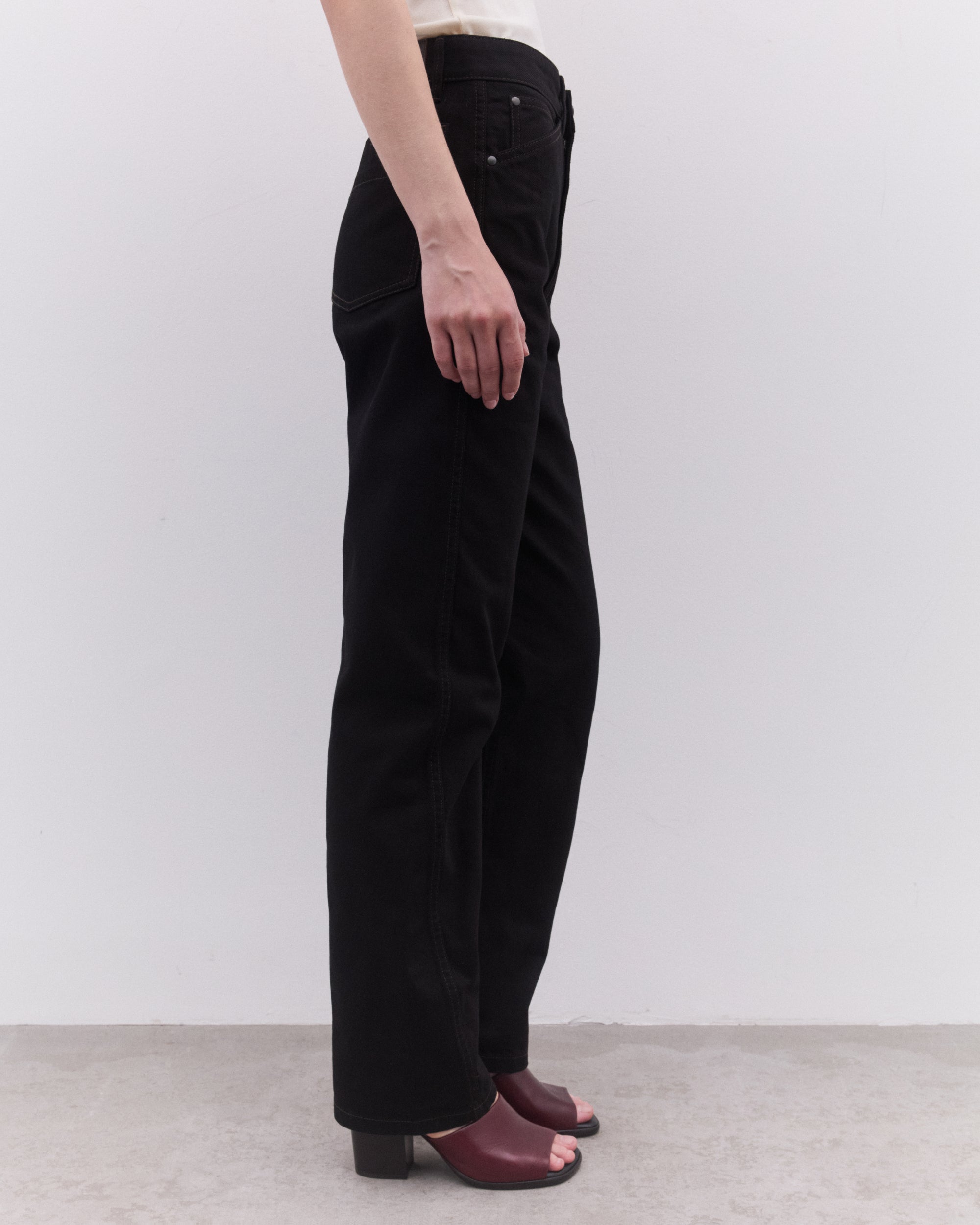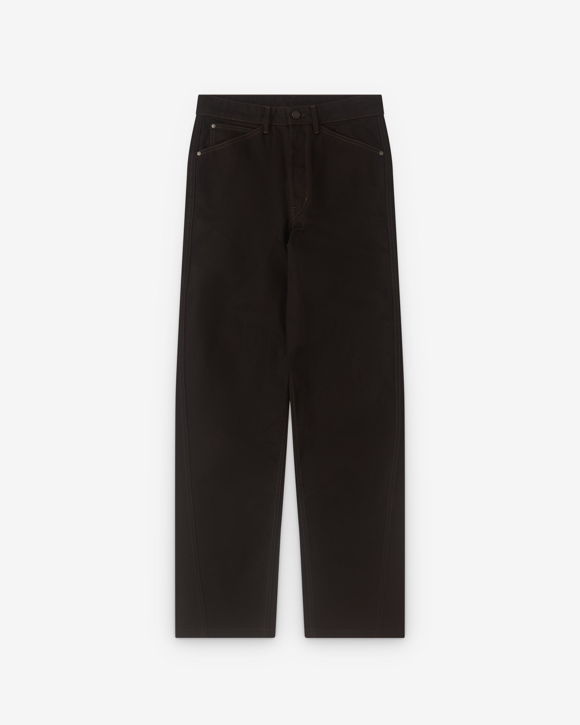 Straight fitTonal stitchingTwisted seamHigh-riseCorozo buttonZip flySide-seam pocketsTwo back patch pockets
