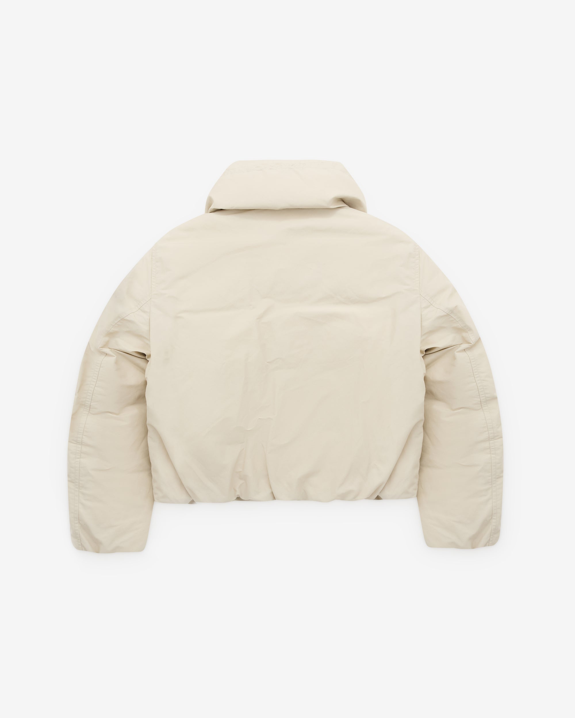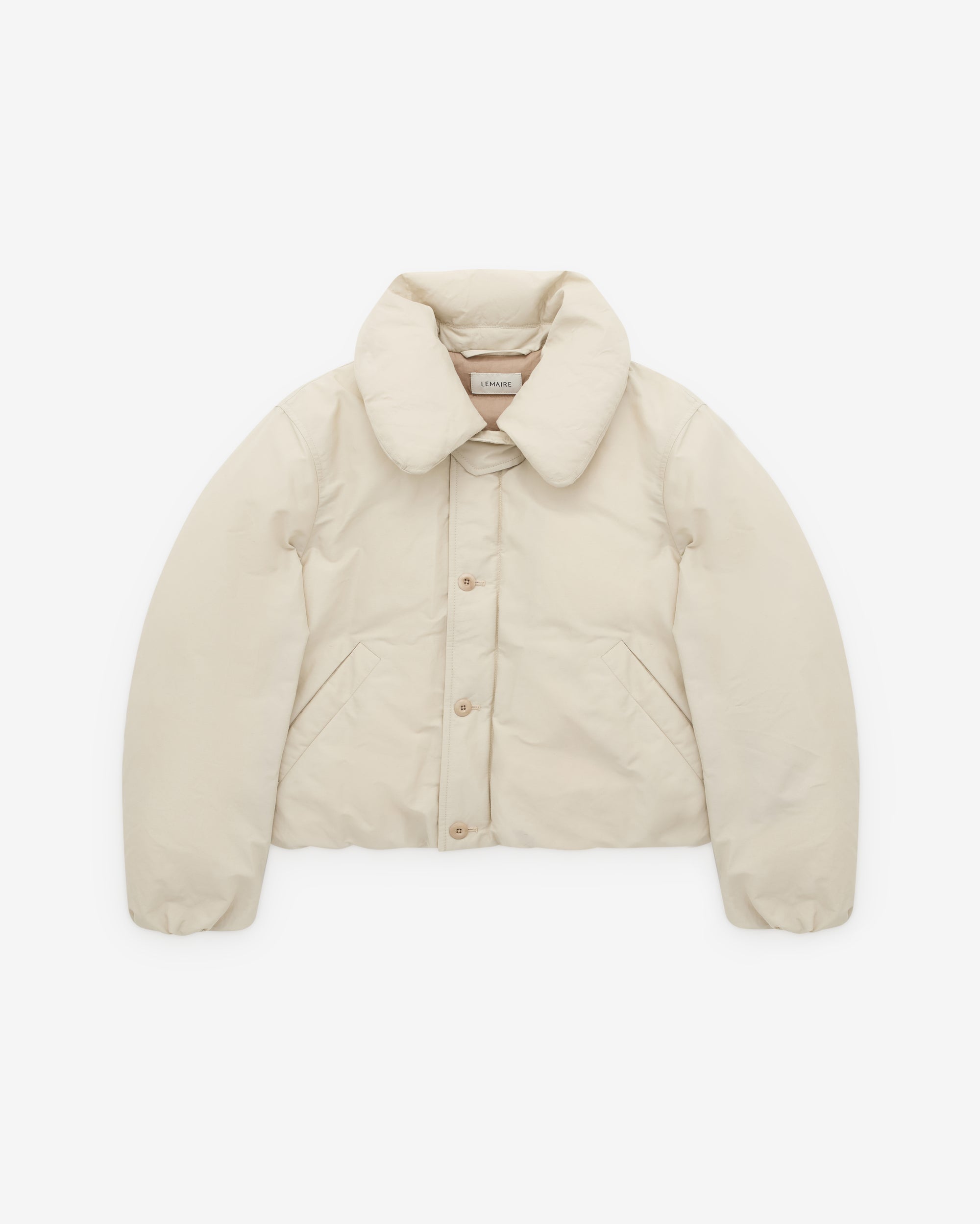 Water repellentStraight cut, cinched at the waistFully linedBubble collar with chin strapZipper and button closureSide pocketsInternal pocket