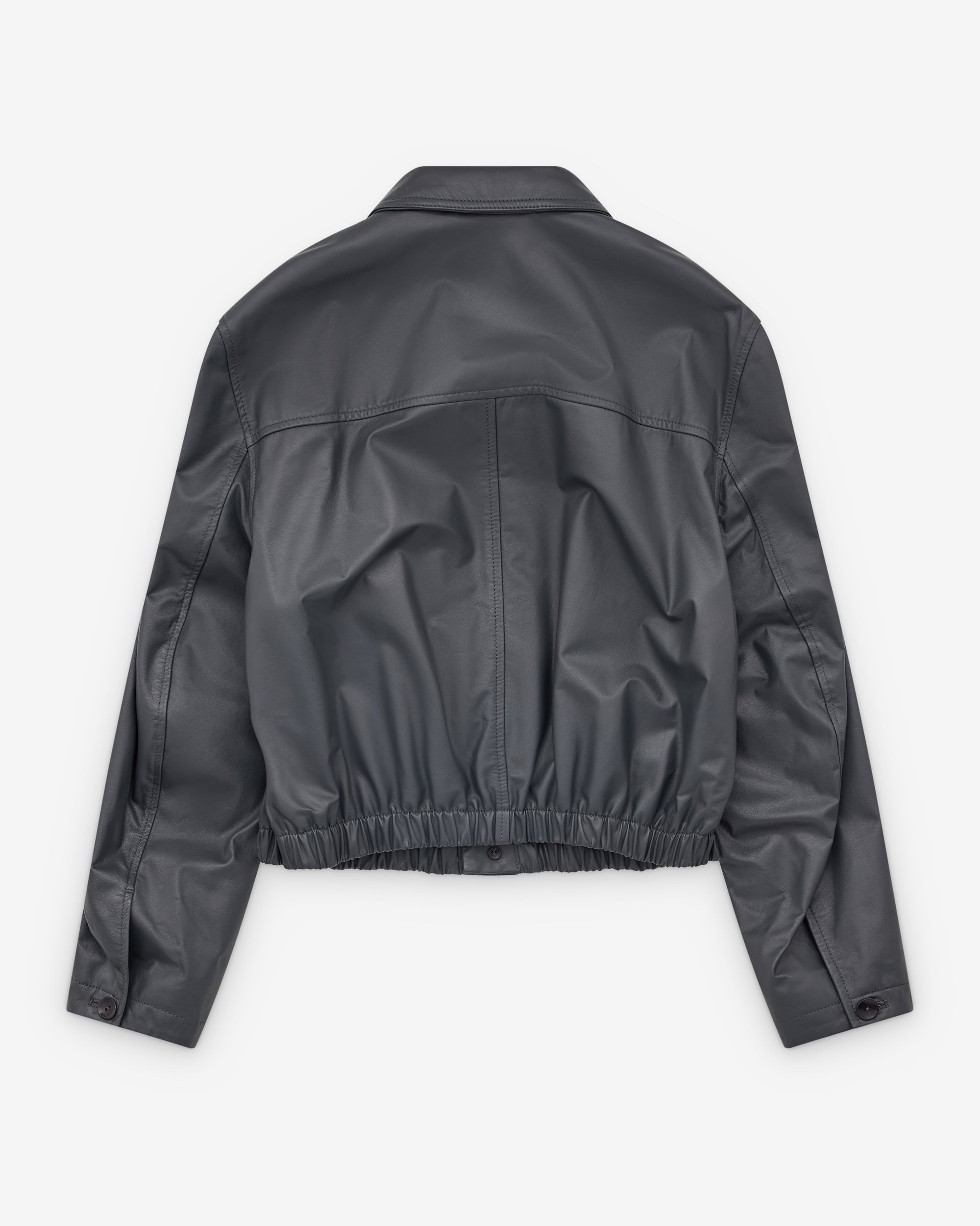 Soft leather blousonStraight cut, cinched at the waistFully lined modelShirt collarButton closureLong sleevesStraight buttoned cuffsWelted chest pocketElasticated waistbandInside patch pocket