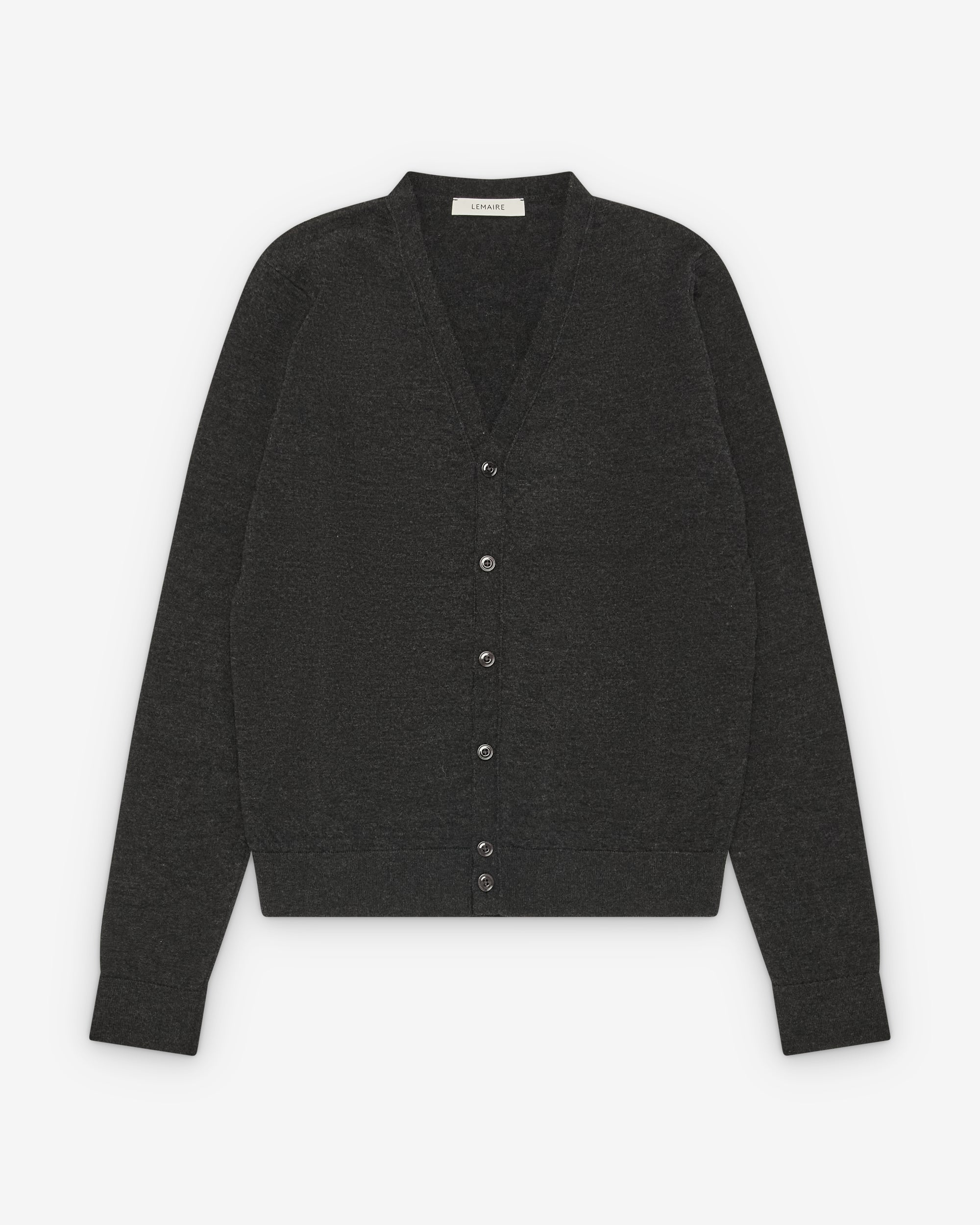 V-neck cardigan in fine woolFitted cutV-necklineButton closureRibbed trim