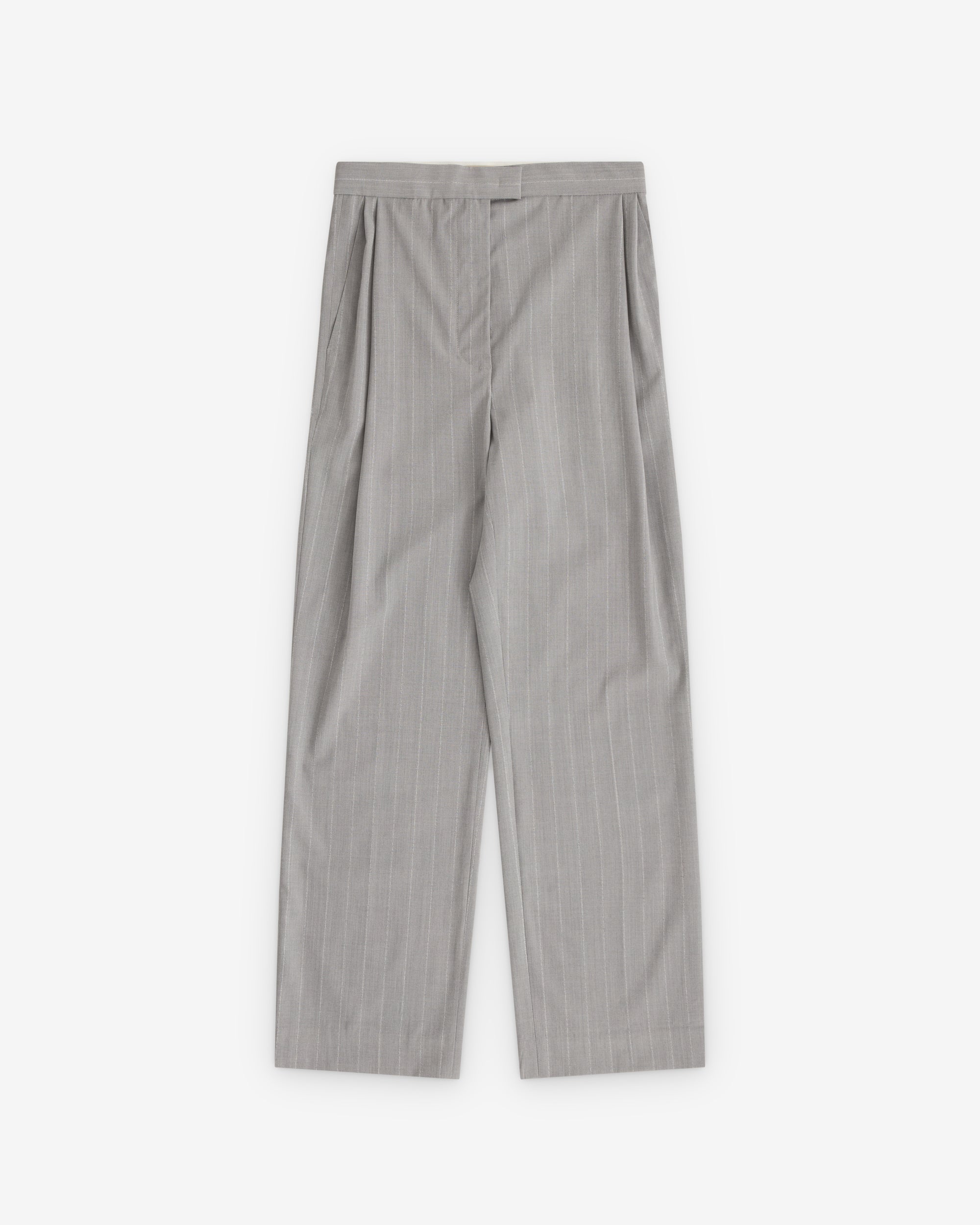 PinstripeWide legDartedHook and eye closureSide seam pockets