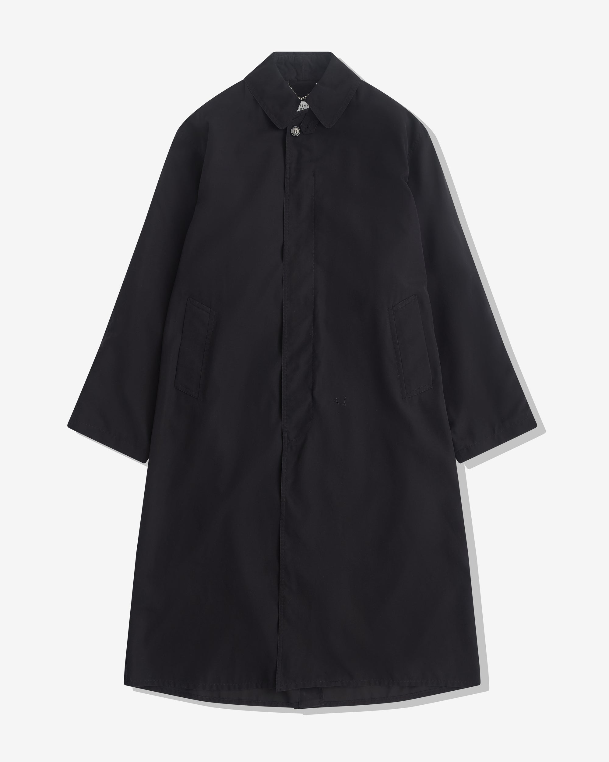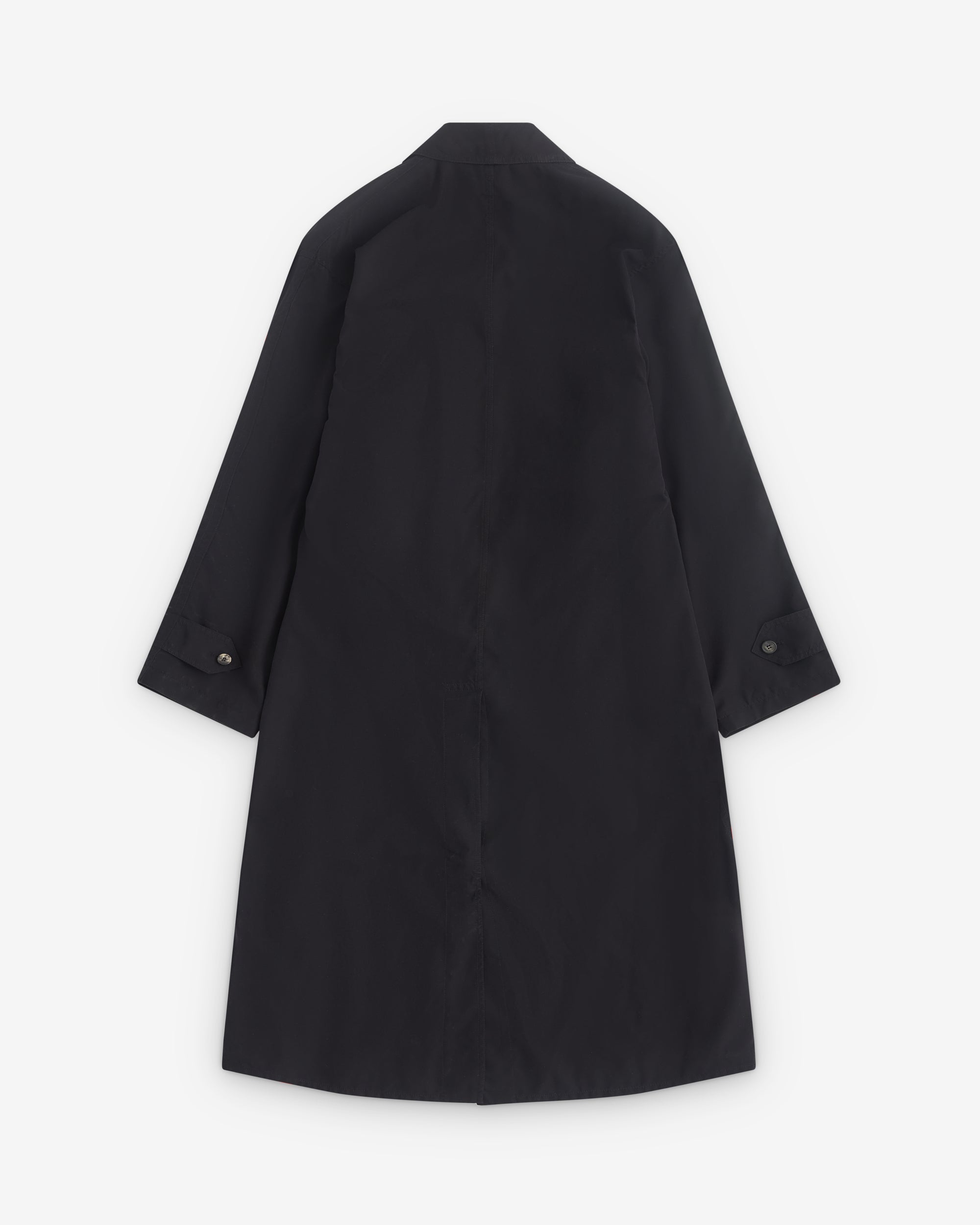 Peached cotton trench coatCalf-lengthButton closureClassic pointed collarLong sleeves with a relaxed fitButtoned cuffsRear venFour stitches at the back 87% Polyester, 13% Polyamide-NylonMade in Italy
