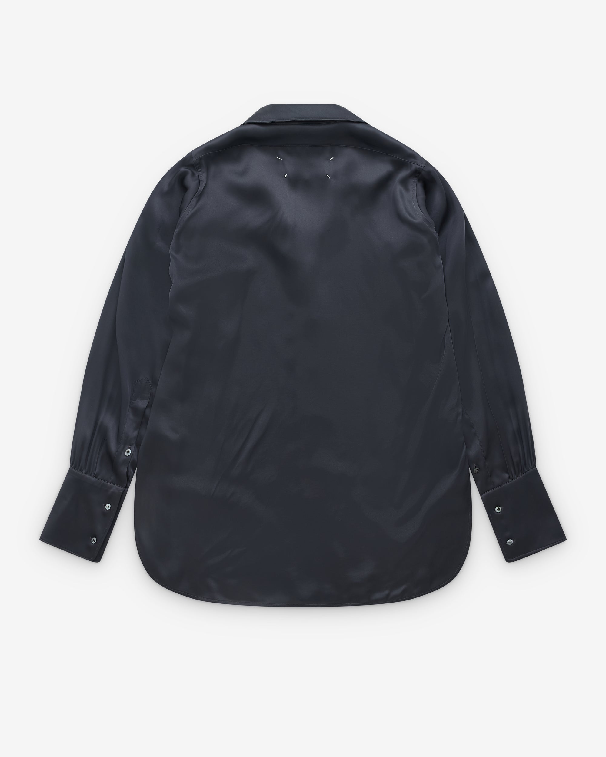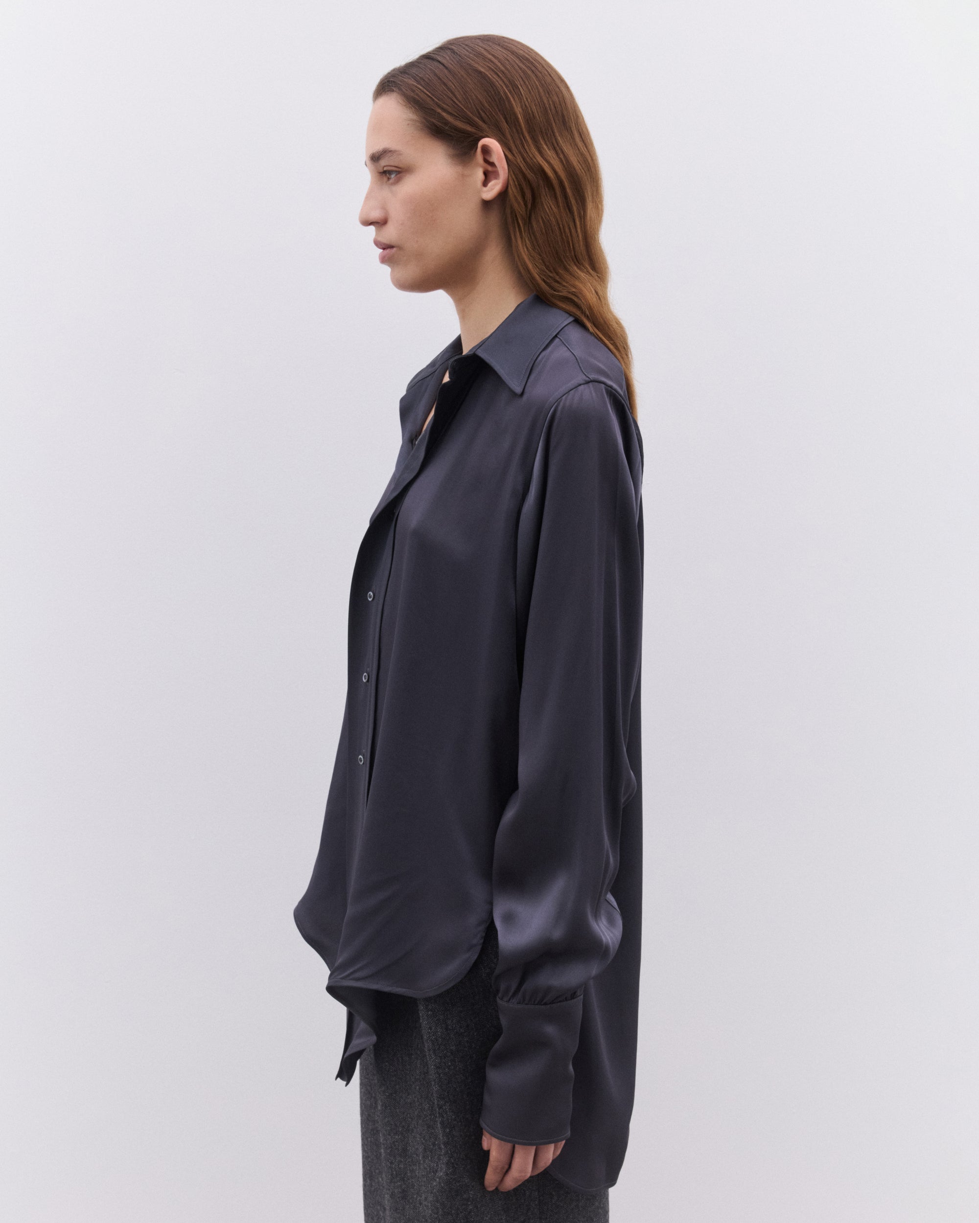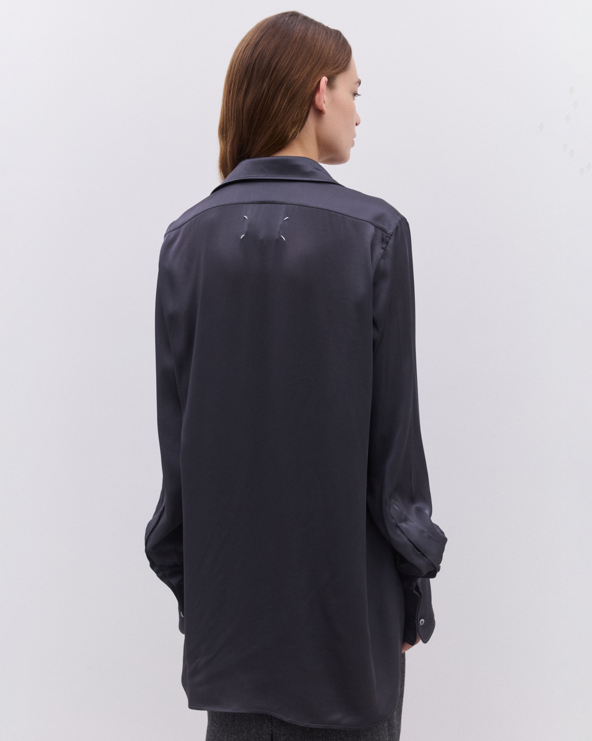 Viscose toile shirtPointed collarMother of pearl button closureButtoned cuffsCurved hemSide slitsDécortiqué detailsFour stitches at the back